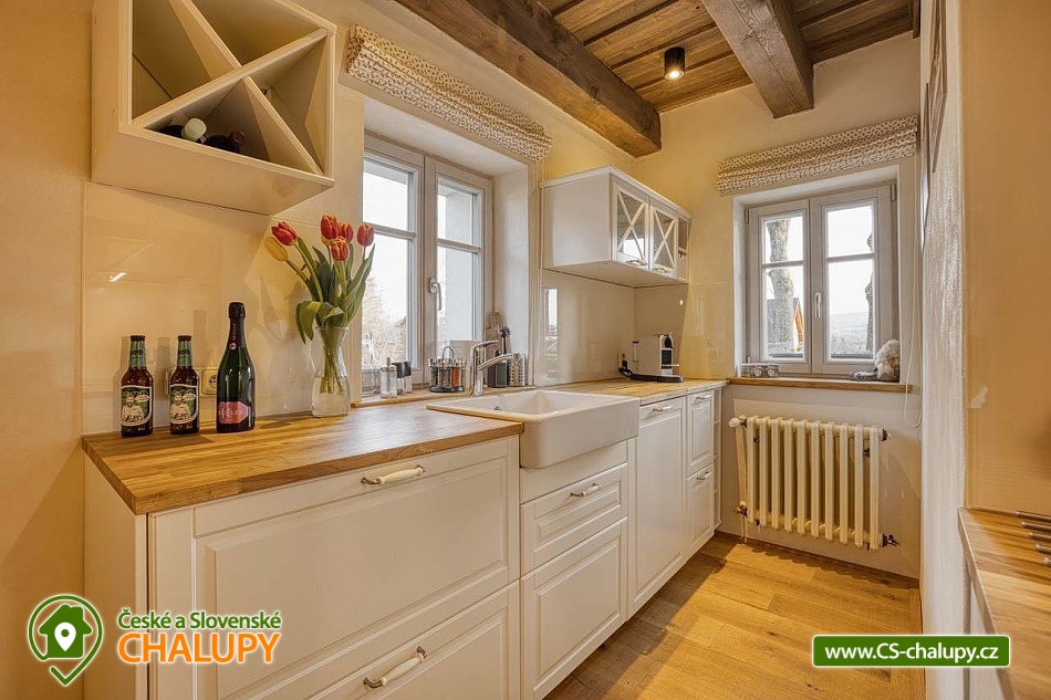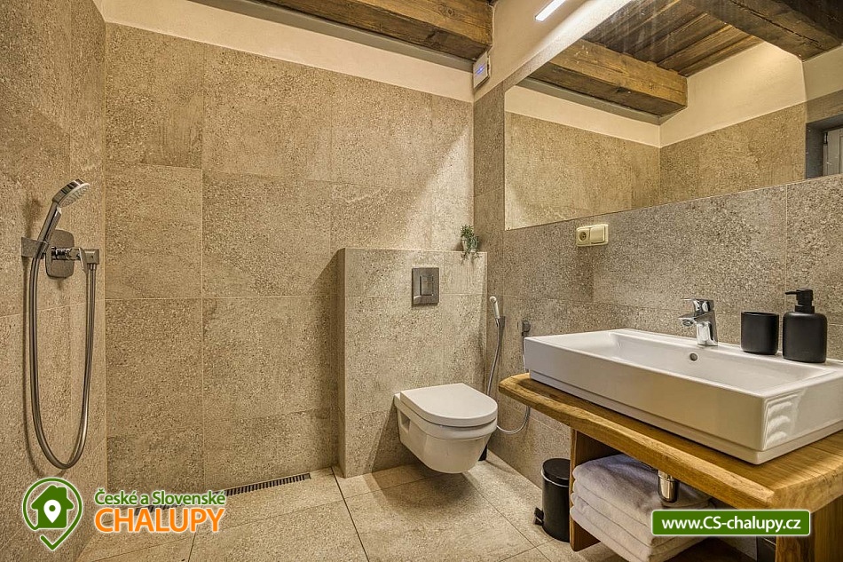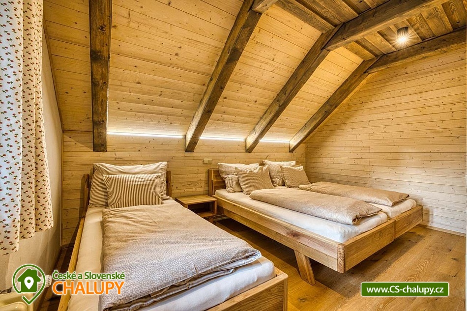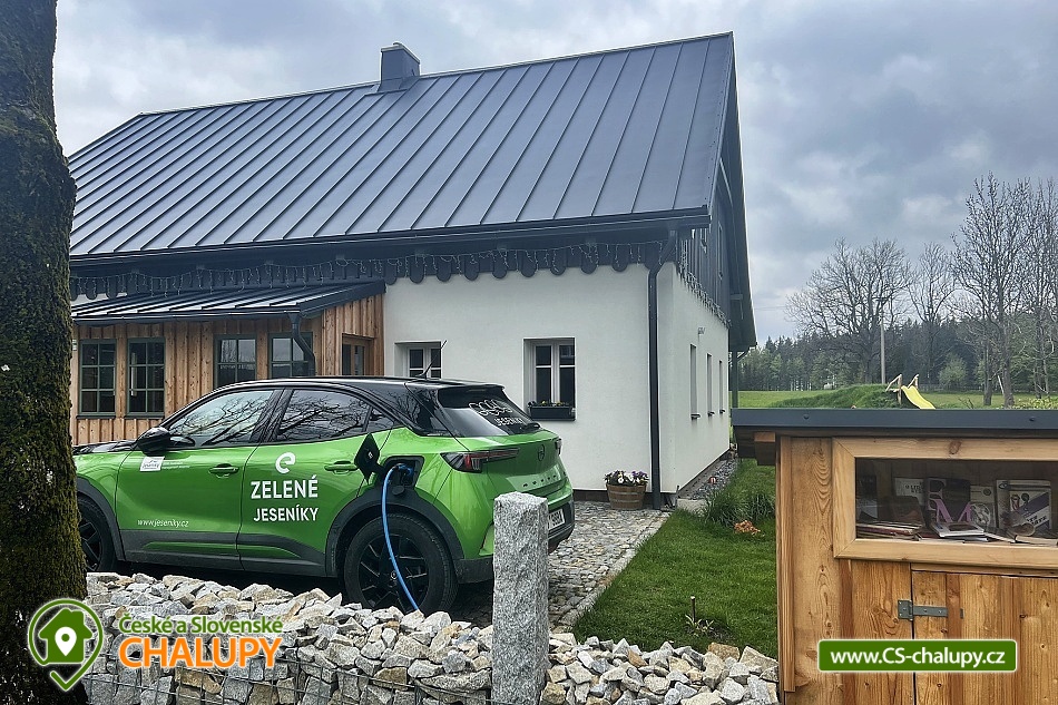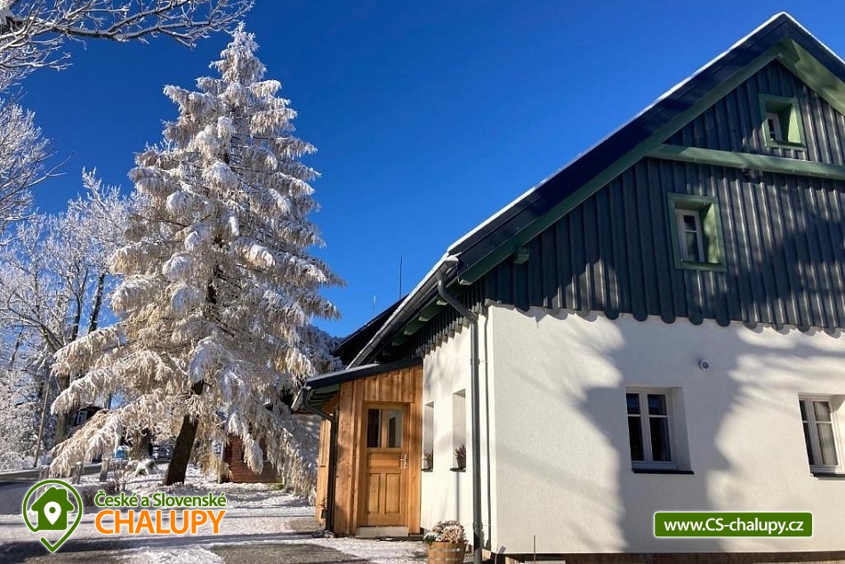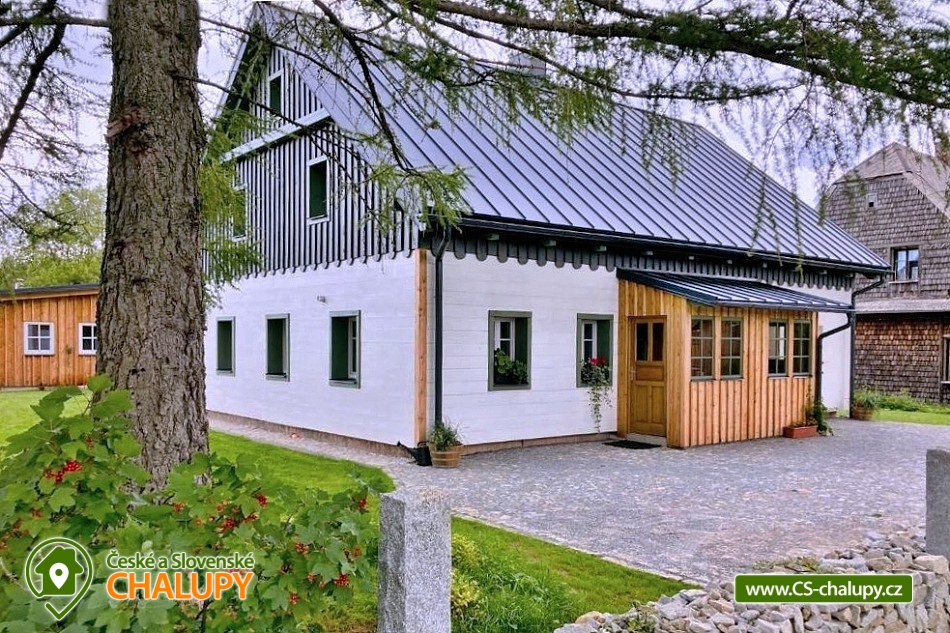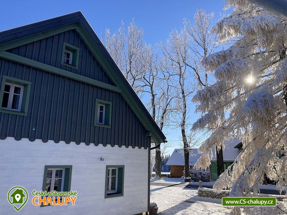 Stylová horská chalupa s wellness (finská sauna a koupací sud) nabízí ubytování ve dvou samostatných apartmánech. Ubytování v centru přírodní rezervace Rejvíz - Jeseníky. Chalupa nabízí ubytování pro až 10 osob (5 + 5 osob). Každý z apartmánů je pro max. 5 osob a má samostatný vchod. POPIS: Každý z apartmánů má v přízemí prostorný obývací pokoj s plně vybavenou kuchyní. V pokoji jsou kachlová kamna a vstup na prostornou krytou terasu. V prvním patře jsou dvě ložnice a WC. Ložnice 1 - velká dvoulůžková postel. Ložnice 2 - tři masivní dubové postele. V apartmánech se přezouvá, vezměte si prosím vhodnou obuv s sebou. V celém objektu platí zákaz kouření a používání otevřeného ohně. Oba apartmány mají plně vybavenou kuchyň (myčka, lednička s mrazákem, varná deska, kávovar Nespresso, multifunkční trouba, veškeré nádobí). V obývacím pokoji je multimediální smart TV s připojením na internet s možností sledování youtube a netflix. K dispozici je HDMI kabel na propojení s notebookem. Sociální zařízení: Každý apartmán má v přízemí vlastní koupelnu s WC a samostatné WC u ložnic v prvním patře. Záchody jsou vybaveny bidetovou sprškou. Vytápění: Vytápění je centrální - litinové radiátory v kombinaci s podlahovým topením. V koupelně a na WC je také topný žebřík. Každý apartmán má vyhrazené parkovací místo. Nabíjení elektromobilů a hybridů přímo u apartmánu. nadstandardně zařízených apartmánech si užijete svou rodinnou dovolenou naplno. V blízkosti se nacházejí cyklotrasy, lyžařská střediska a další atraktivní turistické cíle. Chalupa leží v centru národní přírodní rezervace Rejvíz. V okolí nádherné procházky či náročnější túry překrásnou přírodou, nejrozsáhlejším lesním komplexem Jeseníků např. až na Praděd, Červenohorské sedlo či Švýcárnu. Výlety léto: Výlety - Praděd, přečerpávací elektrárna Dlouhé Stráně, Karlova Studánka, Rychlebské stezky, údolí Bílé Opavy, Lesní Bar Lipová, Fauna park a ruční papírna Velké Losiny. V zimě: Běžkařské okruhy přímo na Rejvízu vedou kolem chalupy, popř. Petříkov - Paprsek, Červenohorské sedlo a Praděd. Skiareály - Červenohorské sedlo, Lázeňský vrch, Ramzová, Filipovice, Dolní Údolí, Ramzová a Kouty. Těšíme se na Vás u nás.