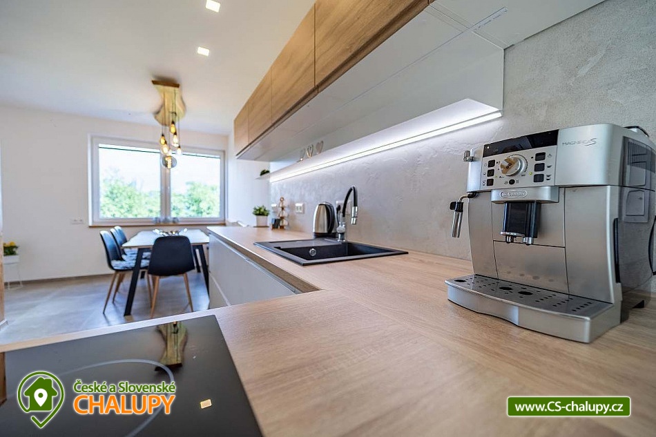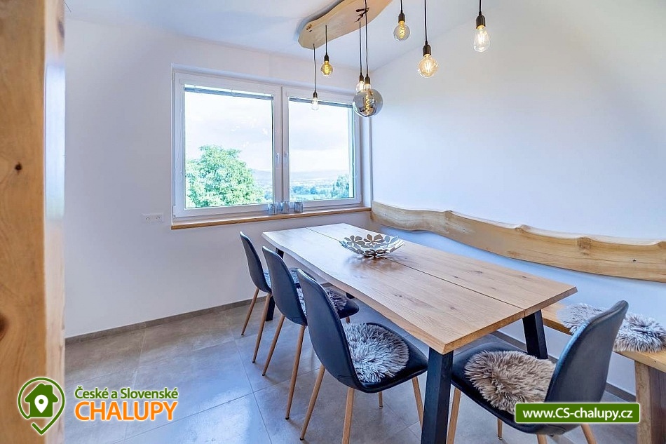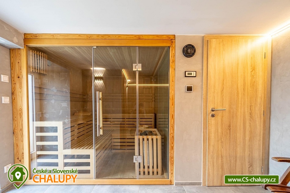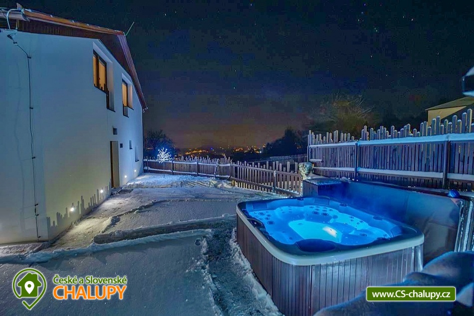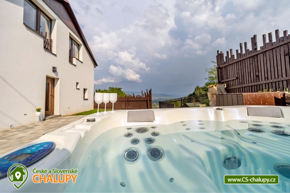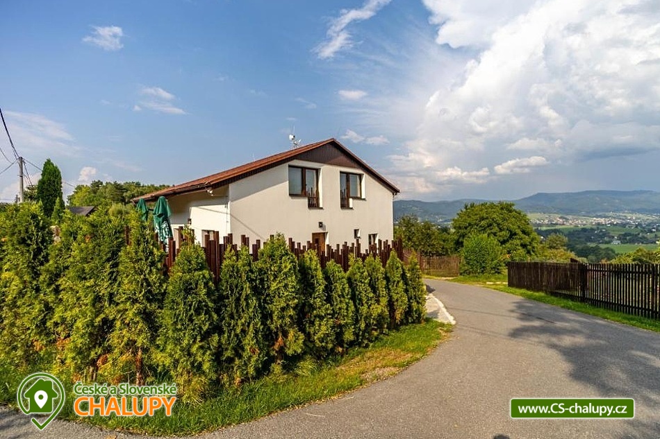Chalupa s wellness (finská sauna + vířivka) a vinným sklepem se nachází na úpatí Beskydských kopců nedaleko města Jablunkov v krásném horském prostředí CHKO Beskydy. Těšit se můžete na komfortní ubytování a odpočinek v sauně nebo ve venkovní vířivce. Chalupa nabízí ubytování pro až 14 osob ve 4 ložnicích. První ložnice je umístěná v přízemí a je bezbariérová, další jsou umístěny v patře, do kterého vedou schody z obývacího pokoje. Celkem je k dispozici 4 - lůžková ložnice (1x dvoulůžko a 2x jednolůžko), třílůžková ložnice s přistýlkou (1x dvoulůžko, 1x jednolůžko a 1x přistýlka řešená rozkládací pohovkou) a dvě 2 - lůžkové ložnice (1x dvoulůžko a 2x samostatná postel) a dále možnost dvou přistýlek řešených rozkládací sedací soupravou v obývacím pokoji. Přistýlka je svou velikostí vhodná pro děti. Příjemné chvíle lze trávit v obývacím pokoji v přízemí. Součástí pokoje je sedací souprava, TV + soundbar připojení k wifi , dva jídelní stoly a plně vybavená kuchyň (americká lednice s ledovačem, myčka na nádobí, horkovzdušná trouba, rychlovarná konvice, indukční sporák, mikrovlnná trouba a kávovar včetně výborné kávy). V suterénu se nachází wellness zóna s finskou saunou s audiosystémem a odpočívárnou s křesílky a tepidáriem. Z wellness zóny můžete vyjít ven a užívat si výhledy na nasvícené protější kopce. Z odpočívárny wellness zóny lze také projít do moderně zařízeného vinného sklípku s prostorným stylovým posezením, velkou TV, výčepním zařízením a především širokou nabídkou vín z Moravy. V celém objektu je k dispozici WIFI připojení na internet. Sociální zařízení zahrnuje tří koupelny a tři WC. V přízemí je umístěná koupelna se sprchovým koutem a dvěma umyvadly a jedno samostatné WC. V patře je k dispozici jedna koupelna se sprchovým koutem, umyvadlem a WC. Součástí wellness zóny je otevřený sprchový kout a jedno samostatné WC. K dispozici je pračka a sušička. Vytápění je řešeno v celém objektu podlahovým vytápěním v kombinaci s heatflow panely 7 řízenými přes wifi termostaty, díky kterým je možné individuálně kontrolovat teplotu v každé místnosti. V letních měsících je v celém domě k dispozici klimatizace. Pro posezení venku je připravena prostorná terasa s velkým dubovým stolem a zahradním krbem pro grilování. V rohu terasy je umístěná vířivka pro 6 osob situovaná tak, aby poskytovala maximální soukromí a zároveň dechberoucí výhled do údolí. V dostatečné vzdálenosti nad terasou, aby nerušilo a zároveň nebylo pro hosty daleko, naleznete parkoviště s ohništěm a lavičkami. Nad parkovištěm je prostorný zahradní domek sloužící pro úschovu sportovního náčiní. Děti se mohou těšit na venkovní prolézačky se skluzavkou, pískovištěm a houpačkou. Parkovat lze přímo u objektu. K dispozici je soukromé parkoviště pro 5 vozů a jedno místo v oplocené části objektu. V okolí možnost turistiky, cykloturistiky, koupání, houbaření, lyžování a běžkování. Chalupa se nachází přímo na turistické trase na výšlap Kozubová - Kamenitý - Ostrý a dál. Mezi možnosti koupání patří např.: koupaliště Jablunkov, bazén Bystřice, koupaliště Třinec, bazén Třinec atd. K dispozici jsou blízká lyžařská střediska: Mosty u Jablunkova, Kozubová, Armáda, Hrádek, Severka, Javorový vrch a další. K výletům v okolí láká obec Mosty u Jablunkova - bobová dráha, lanové centrum, dětské lanové centrum, lezecké stěny, dětské trampolíny a dětský zábavní park, dále Muzeum Trojmezí - Jablunkov, Muzeum Třineckých železáren a města Třince nebo Zámek Frýdek. Těšíme se na Vás u nás.