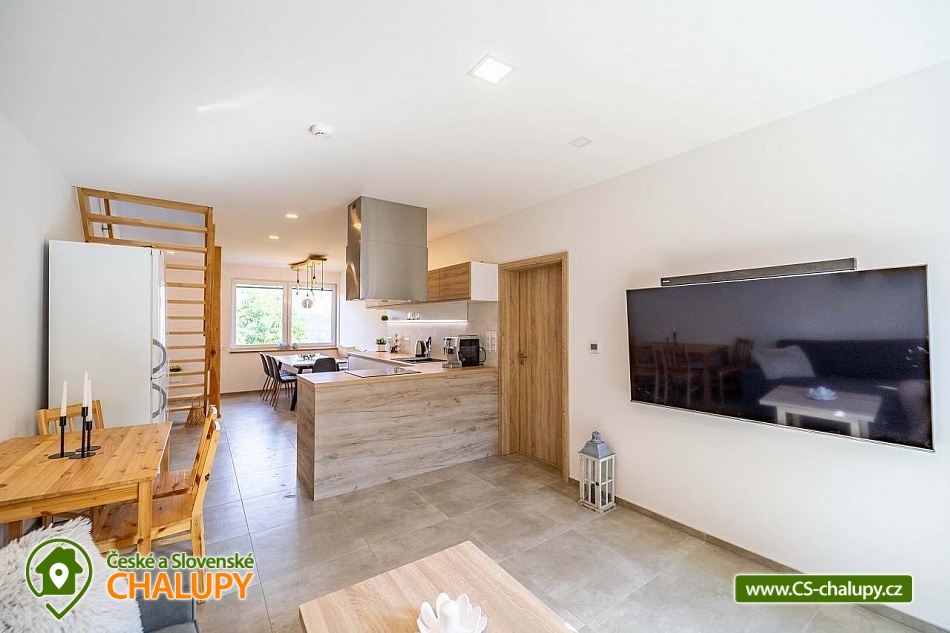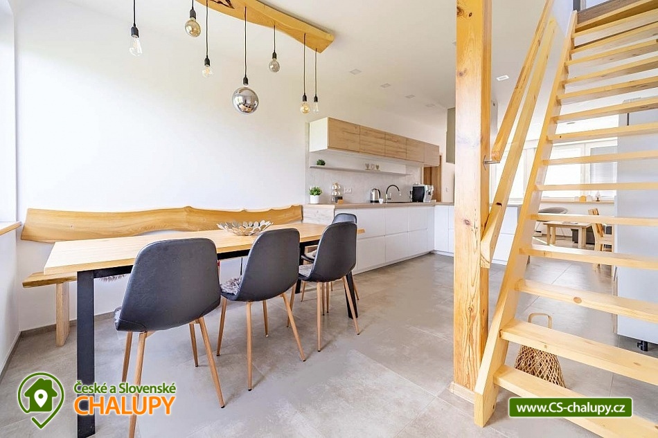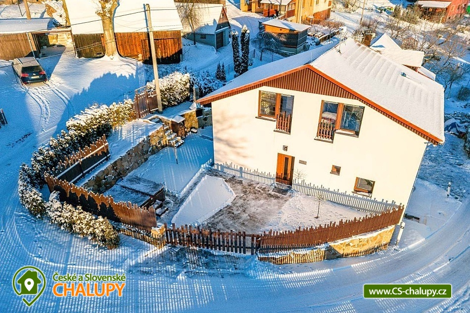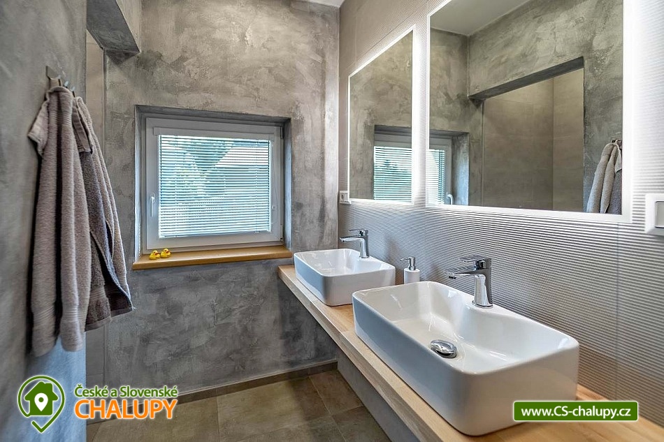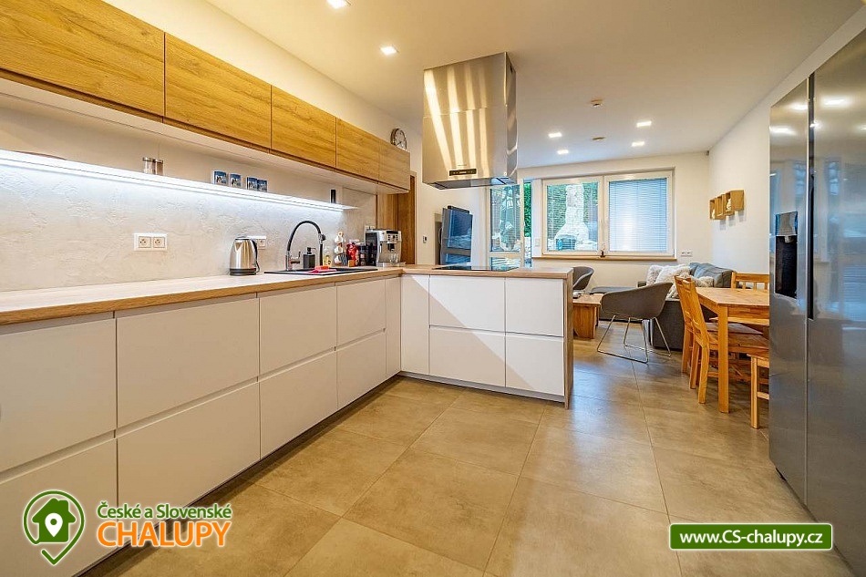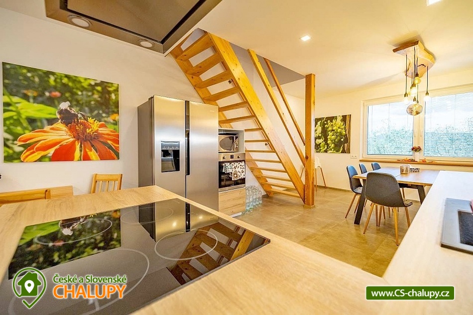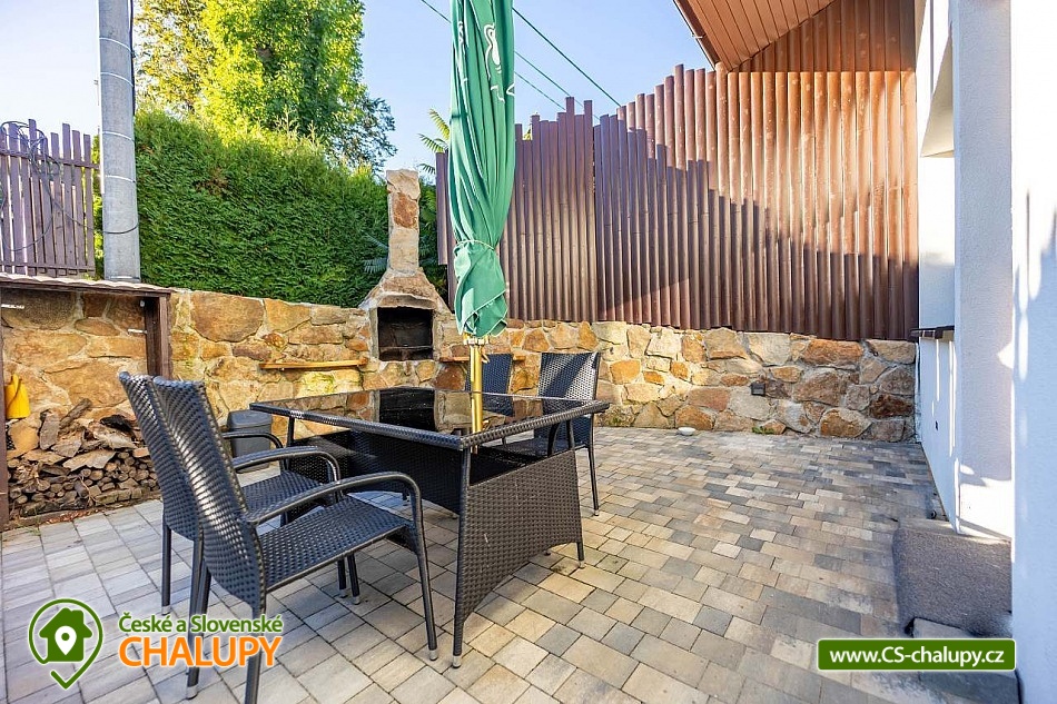 Chalupa s wellness (finská sauna + vířivka) a vinným sklepem se nachází na úpatí Beskydských kopců nedaleko města Jablunkov v krásném horském prostředí CHKO Beskydy. Těšit se můžete na komfortní ubytování a odpočinek v sauně nebo ve venkovní vířivce. Chalupa nabízí ubytování pro až 14 osob ve 4 ložnicích. První ložnice je umístěná v přízemí a je bezbariérová, další jsou umístěny v patře, do kterého vedou schody z obývacího pokoje. Celkem je k dispozici 4 - lůžková ložnice (1x dvoulůžko a 2x jednolůžko), třílůžková ložnice s přistýlkou (1x dvoulůžko, 1x jednolůžko a 1x přistýlka řešená rozkládací pohovkou) a dvě 2 - lůžkové ložnice (1x dvoulůžko a 2x samostatná postel) a dále možnost dvou přistýlek řešených rozkládací sedací soupravou v obývacím pokoji. Přistýlka je svou velikostí vhodná pro děti. Příjemné chvíle lze trávit v obývacím pokoji v přízemí. Součástí pokoje je sedací souprava, TV + soundbar připojení k wifi , dva jídelní stoly a plně vybavená kuchyň (americká lednice s ledovačem, myčka na nádobí, horkovzdušná trouba, rychlovarná konvice, indukční sporák, mikrovlnná trouba a kávovar včetně výborné kávy). V suterénu se nachází wellness zóna s finskou saunou s audiosystémem a odpočívárnou s křesílky a tepidáriem. Z wellness zóny můžete vyjít ven a užívat si výhledy na nasvícené protější kopce. Z odpočívárny wellness zóny lze také projít do moderně zařízeného vinného sklípku s prostorným stylovým posezením, velkou TV, výčepním zařízením a především širokou nabídkou vín z Moravy. V celém objektu je k dispozici WIFI připojení na internet. Sociální zařízení zahrnuje tří koupelny a tři WC. V přízemí je umístěná koupelna se sprchovým koutem a dvěma umyvadly a jedno samostatné WC. V patře je k dispozici jedna koupelna se sprchovým koutem, umyvadlem a WC. Součástí wellness zóny je otevřený sprchový kout a jedno samostatné WC. K dispozici je pračka a sušička. Vytápění je řešeno v celém objektu podlahovým vytápěním v kombinaci s heatflow panely 7 řízenými přes wifi termostaty, díky kterým je možné individuálně kontrolovat teplotu v každé místnosti. V letních měsících je v celém domě k dispozici klimatizace. Pro posezení venku je připravena prostorná terasa s velkým dubovým stolem a zahradním krbem pro grilování. V rohu terasy je umístěná vířivka pro 6 osob situovaná tak, aby poskytovala maximální soukromí a zároveň dechberoucí výhled do údolí. V dostatečné vzdálenosti nad terasou, aby nerušilo a zároveň nebylo pro hosty daleko, naleznete parkoviště s ohništěm a lavičkami. Nad parkovištěm je prostorný zahradní domek sloužící pro úschovu sportovního náčiní. Děti se mohou těšit na venkovní prolézačky se skluzavkou, pískovištěm a houpačkou. Parkovat lze přímo u objektu. K dispozici je soukromé parkoviště pro 5 vozů a jedno místo v oplocené části objektu. V okolí možnost turistiky, cykloturistiky, koupání, houbaření, lyžování a běžkování. Chalupa se nachází přímo na turistické trase na výšlap Kozubová - Kamenitý - Ostrý a dál. Mezi možnosti koupání patří např.: koupaliště Jablunkov, bazén Bystřice, koupaliště Třinec, bazén Třinec atd. K dispozici jsou blízká lyžařská střediska: Mosty u Jablunkova, Kozubová, Armáda, Hrádek, Severka, Javorový vrch a další. K výletům v okolí láká obec Mosty u Jablunkova - bobová dráha, lanové centrum, dětské lanové centrum, lezecké stěny, dětské trampolíny a dětský zábavní park, dále Muzeum Trojmezí - Jablunkov, Muzeum Třineckých železáren a města Třince nebo Zámek Frýdek. Těšíme se na Vás u nás.