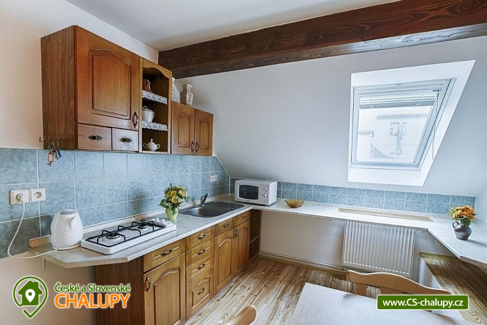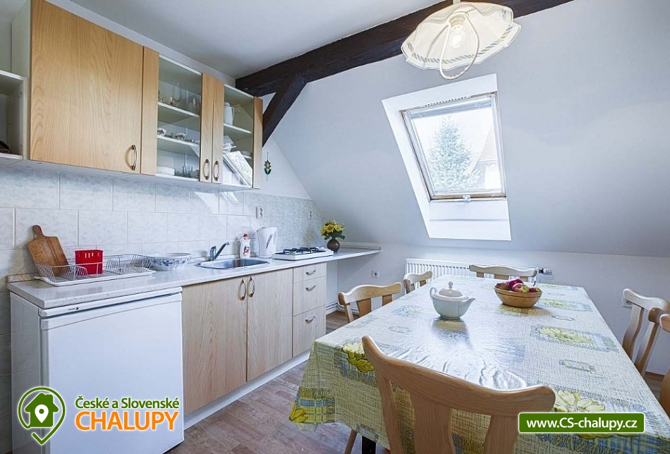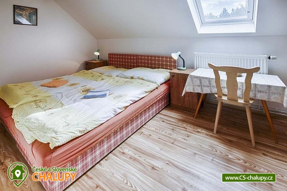 Chalupa U Potoka ve Věcově je přímo stvořená pro strávení klidné a příjemné dovolené. Žďárské vrchy, které ji obklopují, jsou vyhledávanou oblastí v létě i v zimě. Přijeďte si k nám odpočinout a naplno si užít své volné dny. Chalupa poskytuje ubytování pro až 23 osob ve 4 apartmánech. Každý apartmán má vlastní vybavenou kuchyni s lednicí, mikrovlnnou troubou, sporákem, varnou konvicí, hrnci i nádobím. Samozřejmostí je také sociální zařízení a vlastní vchod pro každý apartmán. Apartmán Zvonek: Bezbariérový apartmán v přízemí s vlastním vstupem pro 4 až 6 hostů. Tvoří ho samostatný pokoj se 4 lůžky, společenská místnost, kde se vyspí další 2 hosté, velká kuchyně a sociální zařízení. Kuchyni od společenské místnosti odděluje posuvná stěna. Apartmán Fialka: Apartmán v přízemí pro 4 až 6 osob tvoří prostorný pokoj se 4 lůžky a samostatná kuchyně s dalšími 2 lůžky. Příjemné zázemí doplňuje koupelna s vanou a toaleta. Apartmán Kopretina: Apartmán v podkroví pro 3 hosty. Kromě pokoje s lůžky v něm najdete také velkou kuchyni, sociální zařízení a předsíňku. Apartmán Slunečnice: Největší z našich apartmánů pro 8 hostů najdete v podkroví. Má tři samostatné pokoje, dva menší s 2 lůžky, jeden větší se 4 lůžky. Krajina Žďárských vrchů s krásnými lesy, skálami a rybníky je půvabná v každém ročním období. V létě jsou Žďárské vrchy ideální pro pěší turistiku a cykloturistiku. Nejčastějšími cíli pěších výletů našich hostů jsou zřícenina hradu Štarkov, Bohdalecká skála, Devět skal, Žákova hora, skála Prosička a další. V blízkém okolí chalupy je také vyhlášený houbařský ráj. Rájem cyklistů jsou zase singltreky v nedaleké Cyklo aréně Vysočina v Novém Městě na Moravě, kde se jezdí i závody Světového poháru na horských kolech. Milovníci jízdy v terénu tu najdou téměř 30 kilometrů stezek rozdělených do 5 stupňů obtížnosti. Těšíme se na Vás u nás.