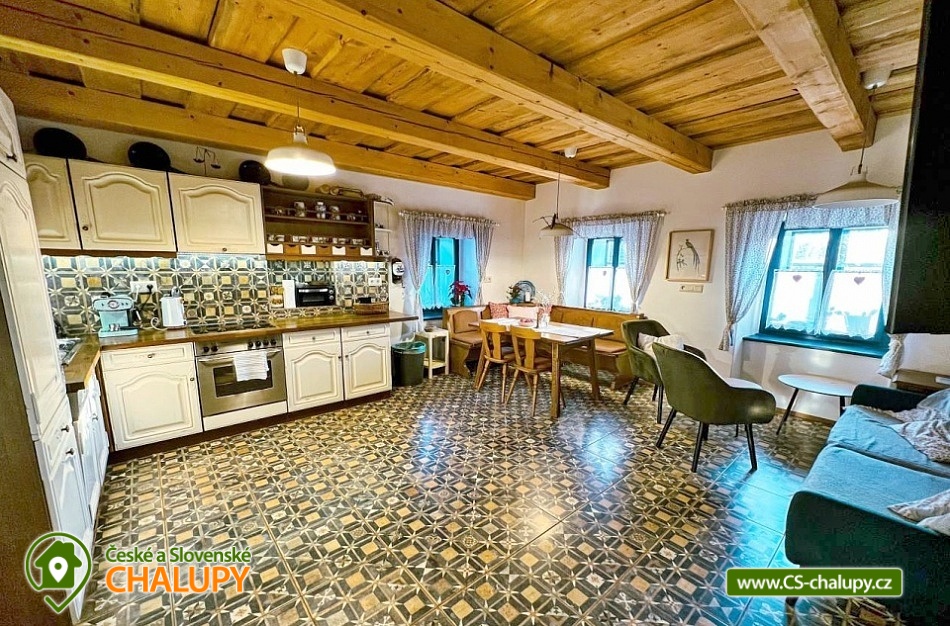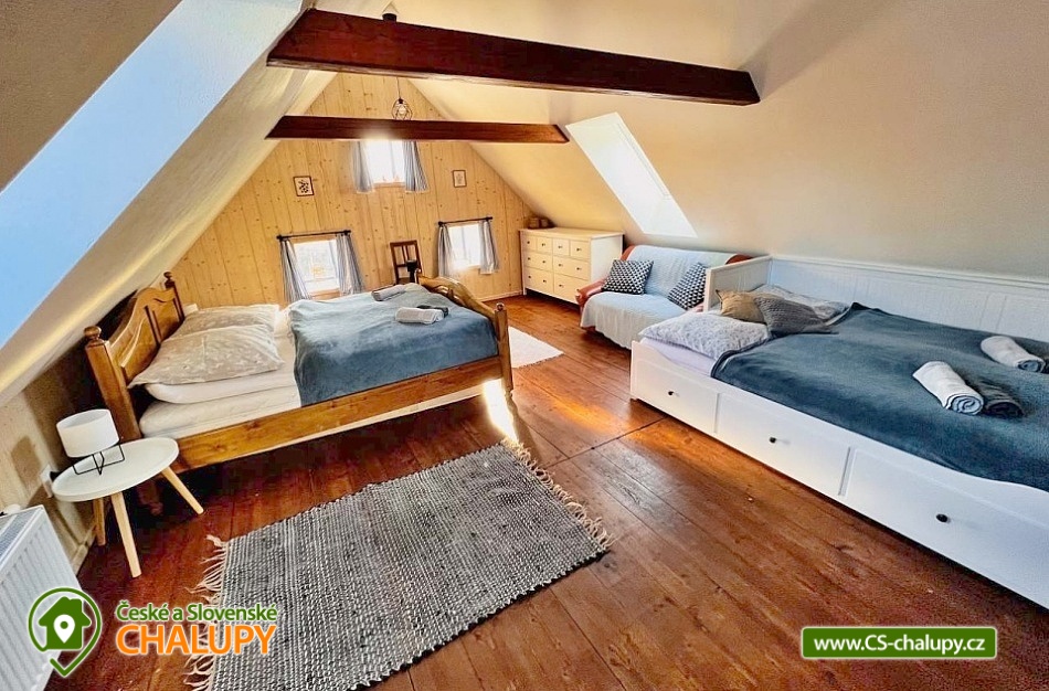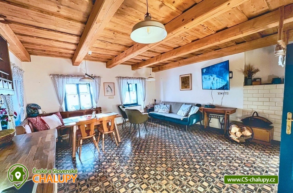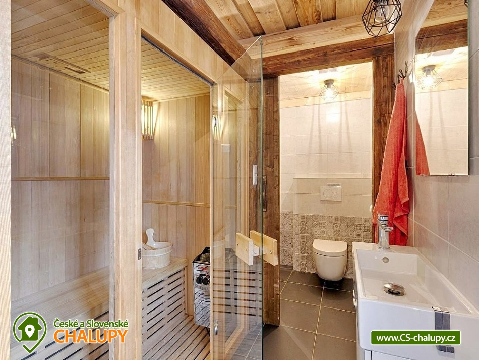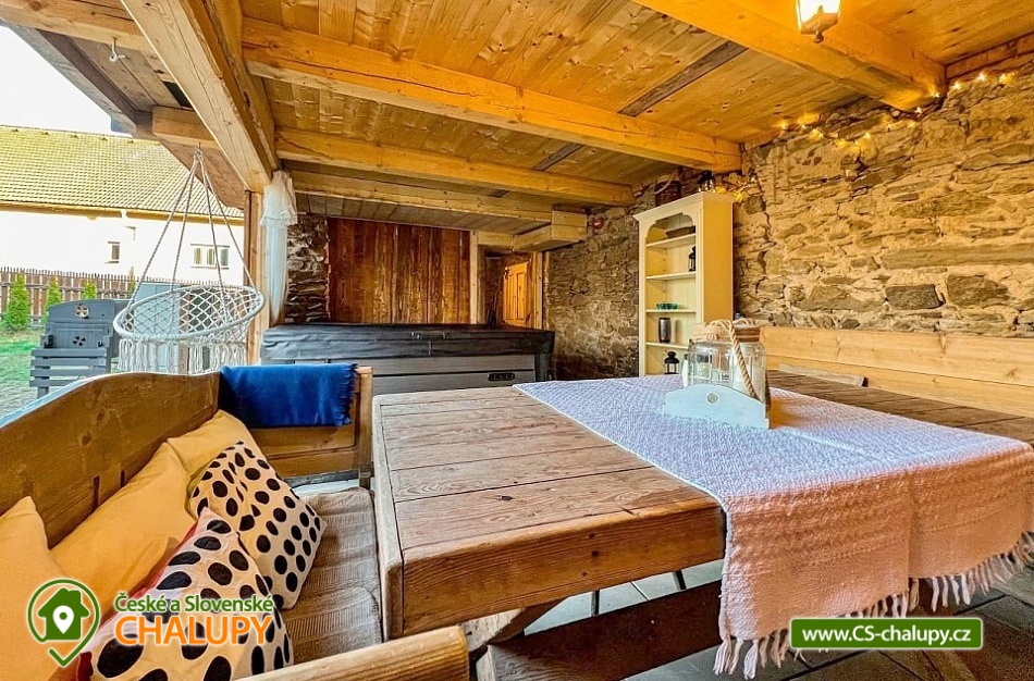Chalupa Žďárské vrchy s venkovskou atmosférou se nachází na konci obce Ubušín, v blízkosti města Jimramov, nedaleko hradu Perštejn a panenské přírody CHKO Ždárské vrchy na Vysočině. Těšit se můžete na odpočinek ve finské sauně a vířivce. Okolí této malebné chaloupky nabízí spoustu možností pro aktivně strávený čas ve všech ročních období. Chaloupka poskytuje ubytování pro až 11 osob ve dvou ložnicích (6 - ti lůžková a 4 - lůžková + přistýlka) umístěných v patře. Každá ložnice je vybavená povlečením, ručníky a osuškami a má vstup do vlastní koupelny s WC a sprchovým koutem. V přízemí se nachází světnice vytápěná podlahou a kamny a vybavená sedací soupravou, TV, vinotékou s chlazením a kompletně vybavenou kuchyňskou linkou s jídelním koutem (kávovar - na kapsle a na mletou kávu, varná konvice, varná deska, el. trouba, lednice, zapékací trouba, toustovač a toaster a sporák na dřevo s troubou). K zapůjčení je židlička na krmení pro dítě. V přízemí lze také relaxovat v koupelně s finskou saunou až pro 3 osoby, sprchovým koutem a WC. V celém objektu WIFI připojení na internet. K dispozici jsou stolní hry pro volný čas a lékárnička. Vytápění je řešeno tepelným čerpadlem, kamny ve světnici a podlahovým vytápěním. Chalupa je částečně podsklepená, přístup do sklepa je z chodby. Ve sklepě je studánka, ze které pivo chutná opravdu excelentně. Sklep je možno využít i pro skladování nápojů či jiných surovin. U chaloupky je zahrada s útulným venkovní krytým posezení a s vířivkou pro 5 osob. K dispozici je gril na dřevěné uhlí a posedět lze i u ohniště. Malí návštěvníci se mohou těšit na trampolínu, pískoviště, houpačku a domeček pro malé děti. K dispozici je uzamykatelná kůlna na kola, lyže apod. Parkovat lze přímo u objektu. V okolí možnost turistiky, cykloturistiky, koupání, houbaření, rybaření, lyžování a běžkování. V nedalekém Jimramově (3 km) se nachází sportovní hala, kde lze hrát tenis, florbal, fotbal, a další. V okolí jsou také dětská hřiště. Mezi možnosti koupání patří např.: koupaliště Bystřice nad Perštejnem, rybník Dalečín, Skalský rybník, Domanínský rybník, koupaliště Polička, Zuberský rybník, bazén Bystřice nad Perštejnem, bazén Polička, koupaliště Olešnice, Milovský rybník, Městské lázně Nové Město na Moravě, přírodní koupaliště Nové Město na Moravě, atd. Rybařit lze na okolních rybnících Skalský dvůr a Milovy. V zimním období blízká lyžařská střediska: Dalečín, Sedliště, Jimramov, Karasín, a další. K výletům láká město Polička, rodiště Bohuslava Martinů s rodnou světničkou ve věži kostela a město pyšnící se zachovalou a udržovanou středověkou hradbou. Dále skalní útvary Vysočiny - Devět skal, Čtyři palice, Dráteníčky, Perníčky, Černá a Bílá skála a Toulovcovy maštale nebo Pohádková vesnička Podlesí, hrad Pernštejn, zřícenina Zubštejn, rozhledna Rovečné a Karasín či Vodní nádrž Vír. Navštívit lze také Hrad Svojanov, město Litomyšl, Poutní kostel Jana Nepomuckého na Zelené hoře ve Žďáru nad Sázavou nebo Zámek Nové Hrady. Těšíme se na Vás u nás.