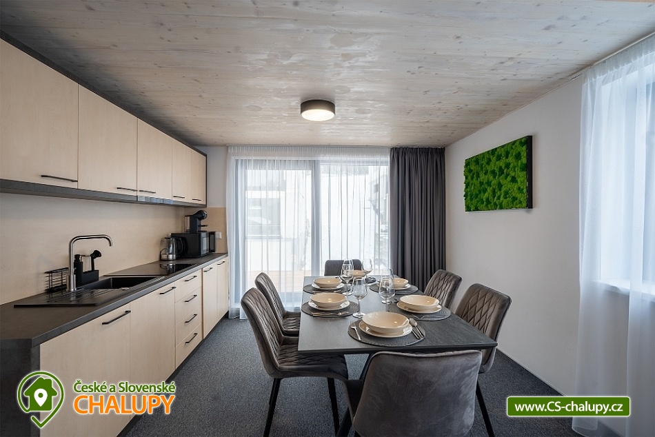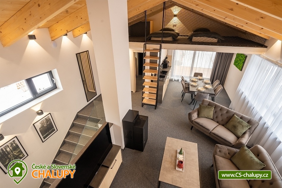 Chata a Chalet Liptov v srdci Liptova nedaleko Hrabovské přehrady a Hrabovské doliny. V okolí chaty si můžete vyzkoušet lanový park Tarzania, bike park, paragliding, lukostřelbu, aquazorbing nebo rybaření a koupání ve vodách Hrabovské přehrady. Navštívit doporučujeme také aquapark Gino Paradise Bešeňová, Vlkolínec či další populární atrakce, kterými oblast Ružomberka a Liptova vyniká. V Chatě se ubytuje až 17 hostů, které nepochybně potěší sauna, terasa, altán s posezením a možnost příjemného večerního grilování. Zároveň v ní máte k dispozici šest ložnic, dvě koupelny, čtyři toalety a kompletně zařízenou kuchyni, pokud byste dostali chuť si něco ukuchtit. Pokud cestujete s dětmi, oceníte přítomnost dětského pokoje se spoustou hraček a společenských her, zatímco partiím přátel a známých padnou vhod společenská a obývací místnost. V jejich vybavení nechybí prostorné posezení, krb a televizor. Zaparkovat se dá přímo u chaty na jednom z pěti parkovacích míst a v bezprostřední blízkosti objevíte i restauraci. Chalet představuje celoroční, moderní a stylové ubytování až pro 16 hostů, které lze pronajmout jako jeden celek nebo po jednotlivých apartmánech. Chalet se dělí na tři apartmány. Každý z nich má obývací místnost s posezením, televizí, terasou a přistýlkami, plně vybavenou kuchyň a koupelnu s toaletou a sprchovým koutem. K dispozici budete mít čtyři dvoulůžkové ložnice a zejména děti potěší vyvýšená místa ke spaní nad obývací místností. Chalet má ve svém vybavení také saunu pro Váš odpočinek a připojení na síť WiFi v celém objektu. Ať už toužíte po odpočinku, turistice nebo sportovním vyžití, Chata a Chalet vám mají co nabídnout!
