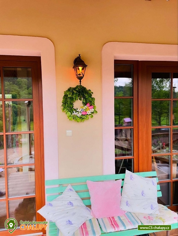 Chata a 2 apartmány s wellness na Křivoklátsku jsou součástí malebného rodinného statku se zvířaty, nacházejícím se na samotě u lesa, zhruba 3 km pod vesnicí Ostrovec (Ostrovec-Lhotka) v blízkosti Zbirožského potoka a Skryjských jezírek. Těšit se můžete na dechberoucí výhledy do okolní krajiny, klidné prostředí, relax v koupacím sudu a v sauně nebo na mazlení s oslíky a jinými zvířátky. Statek nabízí ubytování pro až 18 osob ve třech samostatně pronajímaných objektech - Apartmán Meduňka, Apartmán Pomněnka nebo Chata Bedřiška. Oba apartmány jsou umístěné v přízemí rodinného domu majitelů a mají samostatný vchod pro maximální soukromí. Menší Apartmán Meduňka má kapacitu pro 2 osoby, k dispozici je jedna dvoulůžková ložnice (1x manželská postel). Po domluvě možnost zajištění přistýlky pro dítě do 6 let. Součástí apartmánu je také obývací pokoj s krbovými kamny, dvěma křesílky, stolem a kuchyňským koutem (lednice, indukční deska, varná konvice a veškeré vybavení pro vaření včetně nádobí). Větší Apartmán Pomněnka má kapacitu pro 6 osob, k dispozici je jedna třílůžková ložnice (1x manželská postel a 1x jednolůžko), 1x jednolůžko a 2x přistýlka (rozkládací pohovka) v obývacím pokoji. Dále jsou v pokoji také krbová kamna, jídelní stůl a kuchyňský kout (lednice, varná deska, trouba, varná konvice a veškeré vybavení pro vaření včetně nádobí). V obou apartmánech je k dispozici koupelna s WC. Venku má každý apartmán připravené posezení na terase s grilem. Plně vybavená samostatná Chata Bedřiška má kapacitu pro 10 osob, k dispozici jsou dvě čtyřlůžkové ložnice (1x čtyřlůžková patrová postel) a jedna dvoulůžková ložnice (1x manželská postel). Po domluvě možnost dalších 4 přistýlek v podkrovní herně pro děti. V chatě k příjemným chvílím slouží prostorná společenská místnost s krbovými kamny, sedací soupravou a plně vybavenou kuchyní (lednice, varná deska, trouba, mikrovlnná trouba, varná konvice a veškeré vybavení pro vaření včetně nádobí). K dispozici jsou dvě koupelny a WC. Přímo z obývacího pokoje lze vstoupit na prostornou zastřešenou terasu s venkovním sezením, grilem a závěsnou houpačkou. Vytápění je ve všech objektech řešeno krbovými kamny a podlahovým topením. Z apartmánů i chaty si lze z oken a teras užívat úžasné výhledy do okolní přírodní krajiny a na pastviny se zvířátky. Venku je pro všechny hosty k dispozici ohniště. Za příplatek lze zajistit odpočinek v sauně a v koupacím sudu. Děti ocení dětské hřiště s prolézačkami, pískovištěm a houpačkami. Parkovat lze přímo u objektu. V okolí statku možnost turistiky, cykloturistiky, koupání, houbaření a rybaření. Přímo na statku je hostům nabízen program Zvířátka na statku, kde si můžete vyzkoušet starání se o slepice, kachny, sbírat vajíčka, nakrmit a pohladit si kůzlátka, oslíky, kočky nebo ochutnat palačinky z domácích vajíček atd. Mezi možnosti koupání patří např.: vodní nádrž Hlinovka, Cekovský rybník, bazén Hořovice, aquapark Hořovice, lom Hliňák, koupaliště Zdice, vodní nádrž Záskalská, Rakovník - Tyršovo koupaliště, krytý bazén Beroun atd. K výletům láká Vesnická památková zóna Ostrovec, zřícenina hradu Týřov, Zámek Zbiroh, hrady Točník, Křivoklát a Karlštejn, Zámek Nižbor, Muzeum Českého krasu v Berouně nebo Muzeum T.G.M. Rakovník. Těšíme se na Vás u nás.