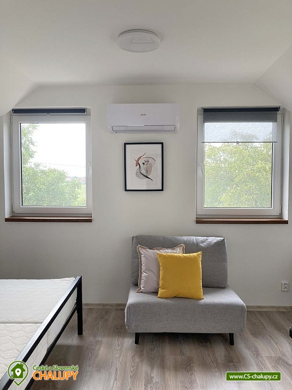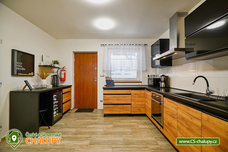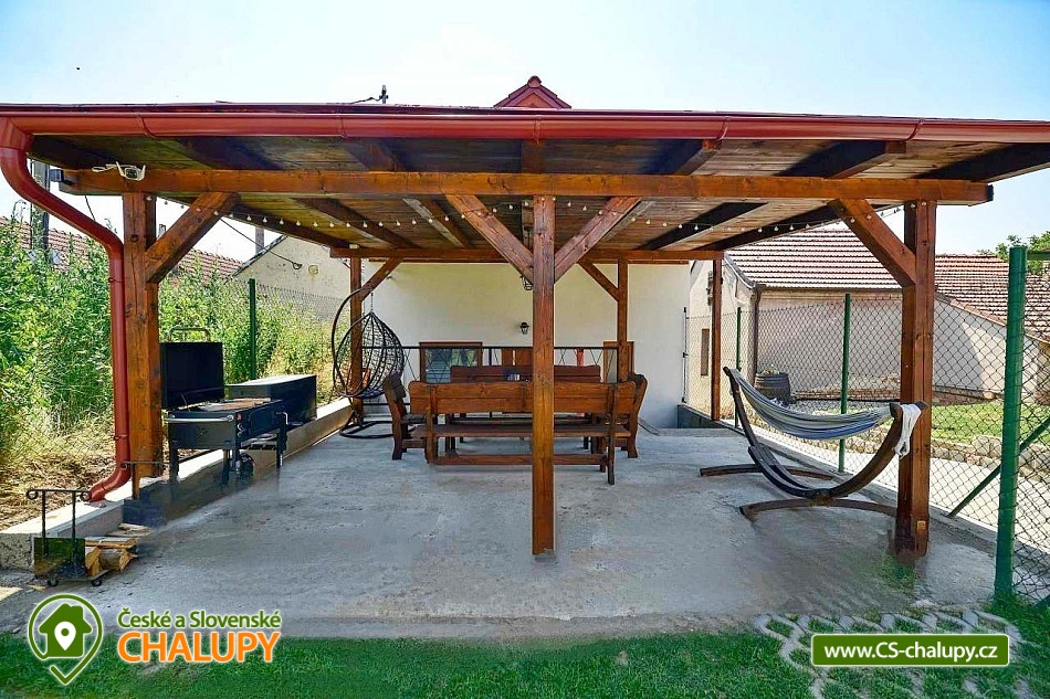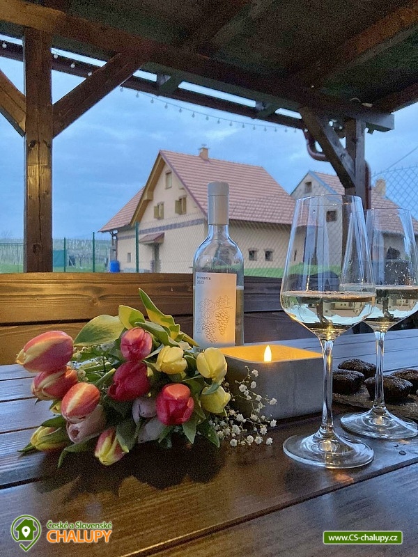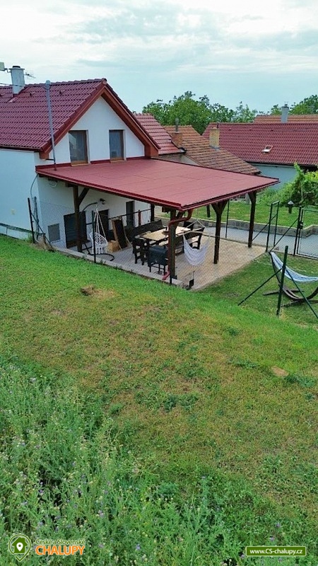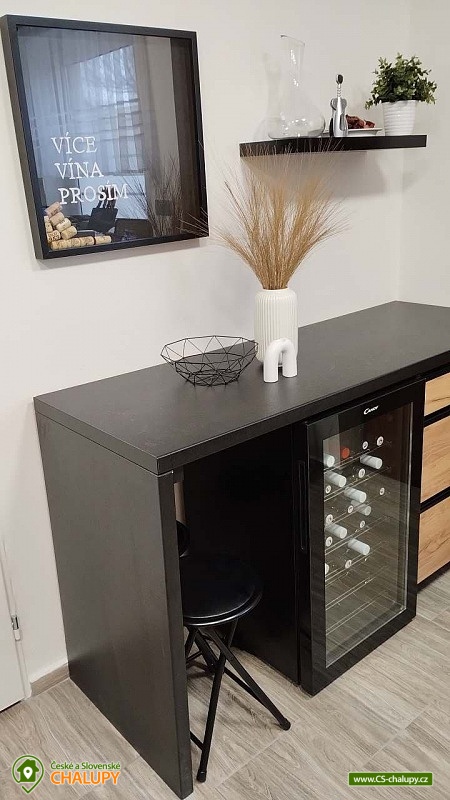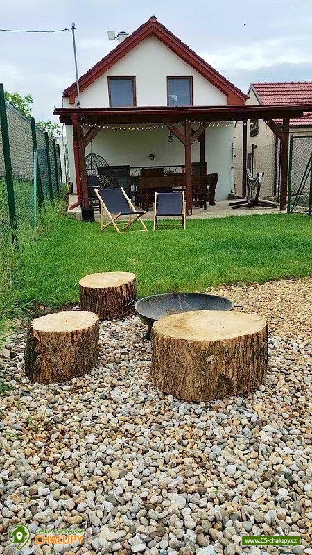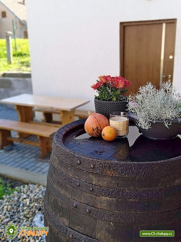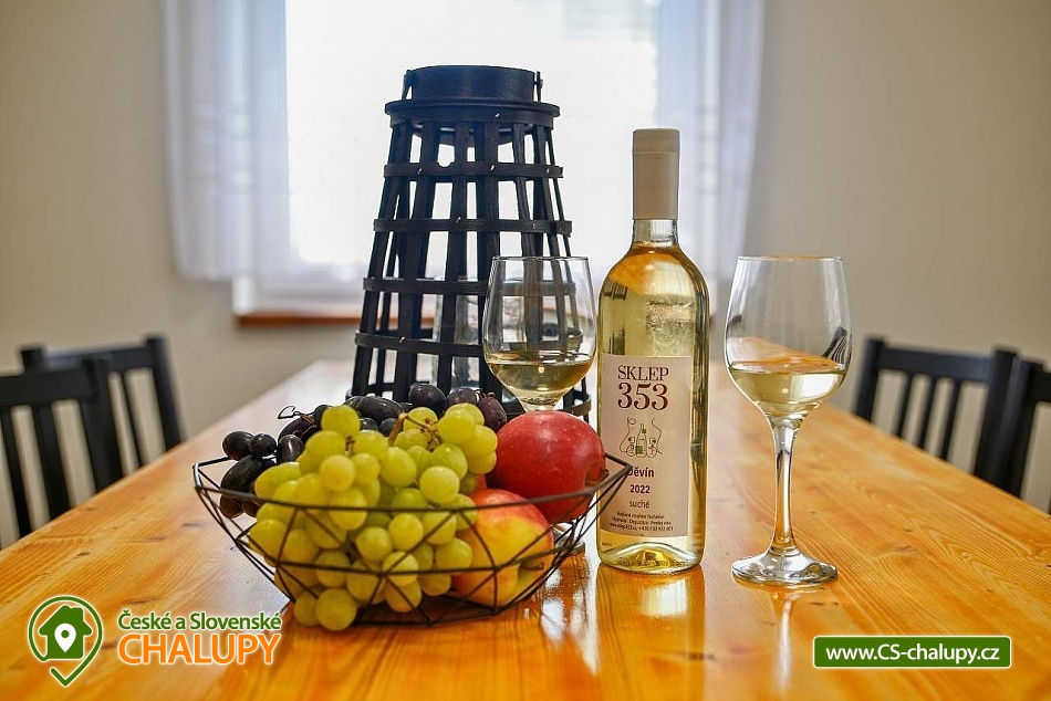 Chata s vinným sklepem u Habánské stezky se nachází v malebné vinařské obci Velké Bílovice v krásné krajině jižní Moravy. Komfortní ubytování nad vinným sklepem - v blízkém okolí je řada dalších vinných sklípků a hektary vinic. Chata nabízí ubytování pro až 8 osob ve dvou ložnicích (1x dvoulůžková postel, 1x jednolůžko a 1x přistýlka). K dispozici jsou lůžkoviny a ručníky. Obě ložnice mají vlastní koupelnu se sprchovým koutem, umyvadlem a WC. Další samostatné WC je v přízemí. Pro děti lze po domluvě zajistit dětskou židličku, nádobí, dětské wc prkénko, nočník, video chůvičky a cestovní postýlky s matrací (bez povlečení). Společné chvíle lze trávit v obývacím pokoji se sedací soupravou, krbovými kamny, jídelním stolem, TV, internetovým rádiem a plně vybavenou kuchyní (lednička s mrazákem, trouba, varná deska, mikrovlnná trouba, rychlovarná konvice, toustovač, topinkovač, myčka nádobí, veškeré nádobí až pro 8 osob a kávovar včetně neomezené nabídky kávy a čajů). Nechybí ani vinotéka s možností zakoupení vína z aktuální nabídky. Po domluvě lze zajistit degustaci ve vinném sklípku, který je součástí objektu. Děti během ocení herní koutek s dětskými hrami, hračkami (dřevěné, puzzle, omalovánky, atd.) a dětskými knihami. V celém objektu je k dispozici WIFI připojení na internet. Vytápění je řešeno krbovými kamny a elektrickým topením. V teplých dnech vás ochladí klimatizace. Venku lze trávit čas ve velké zastřešené pergole s posezením, dekami, grilem, hamakou a závěsnou houpačkou. Na zahradě je možné odpočívat na lehátku nebo posedět u ohniště. K zapůjčení jsou venkovní aktivity - badminton, šipky, venkovní stolní hry a pétanque nebo také 5 koloběžek včetně vybavení (helma, zámek a světlo). Pro děti je připravené dětské hřiště s houpačkami. V blízkosti ubytování (cca 10 m) je k dispozici úschovna pro kola, rybářské vybavení či jiné sportovní vybavení. Celý pozemek je oplocený. Parkovat lze přímo u objektu. V okolí chaty možnost turistiky, cykloturistiky, koupání, houbaření, rybaření a lyžování. Přímo v obci Velké Bílovice je multifunkční hřiště, plážový volejbal, inline dráha, skatepark, adventure golf a pumtrack dráha. V blízkosti je také jízdárna a tenisové kurty. Mezi možnosti koupání patří např.: rybník Velký Bílovec, rybník Šutrák, koupaliště Němčičky, Mlýnský rybník, bazén Břeclav, koupaliště Břeclav, koupaliště Horní Bojanovice, rybník Lužice, koupaliště Dubňany, bazén Hustopeče, atd. K dispozici je blízké lyžařské středisko Němčičky. K výletům v okolí láká město Břeclav s Muzeem železnice a lanovým centrem Hájenka, rozhledny Slunečná a Na Podluží, větrný mlýn Starý Poddvorov, Pálavské vrchy a Lednicko - Valtický areál. Těšíme se na Vás u nás.