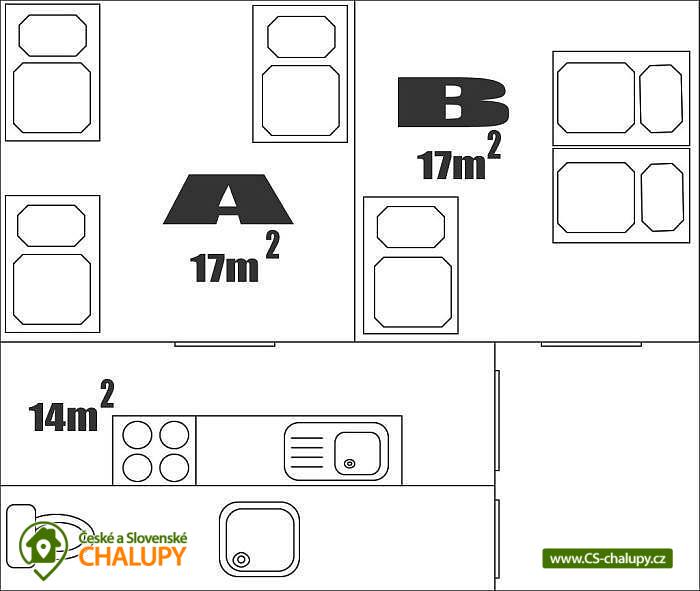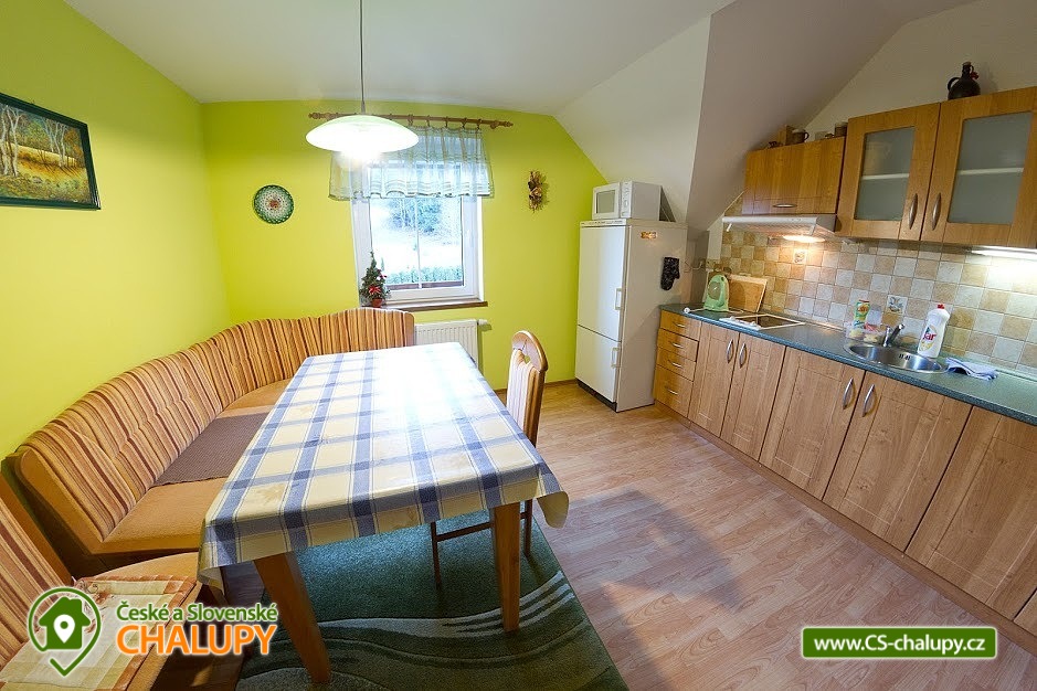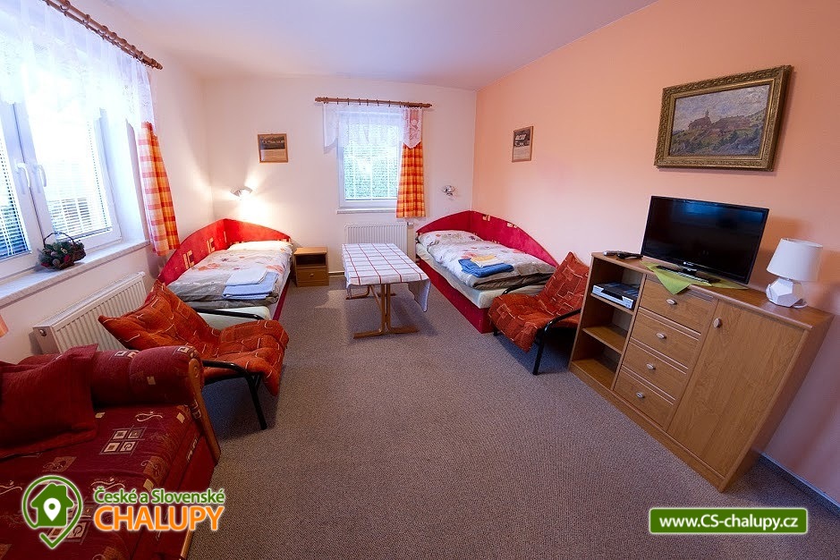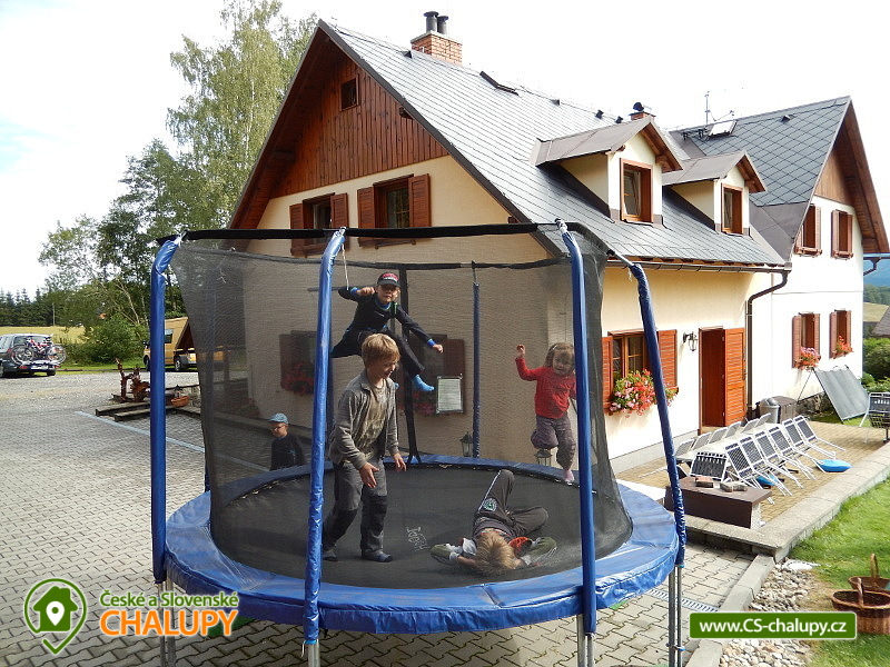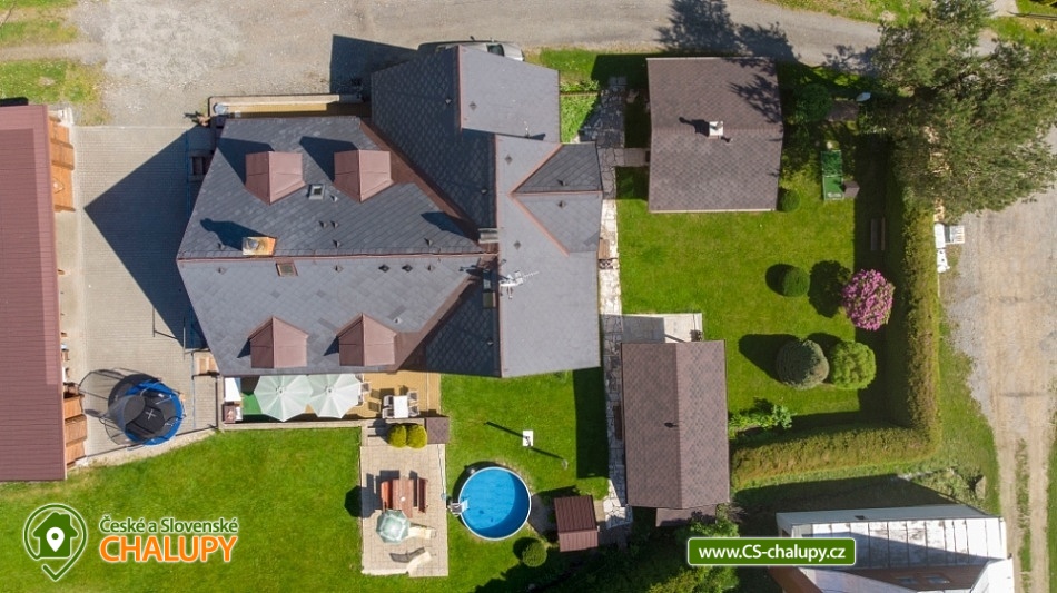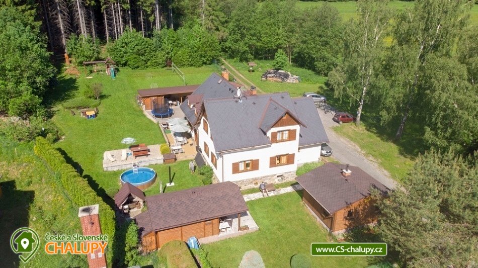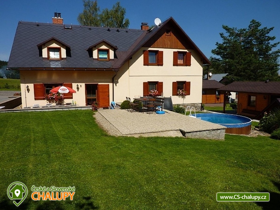 Horská chata s bazénem a saunou - Bělá pod Pradědem - Jeseníky. Chata se nachází v malebné osadě Filipovice, na kraji lesa, bez silničního provozu, s dobrou dostupností do lyžařských a turistických center Červenohorské sedlo (10 min) a Kouty (20 min). Chata - dva apartmány a dva samostatné pokoje čítají celkem 16 pevných lůžek + přistýlky pro 4-5 rodin. Rezervovat si můžete jak celou chatu, tak dílčí apartmány a pokoje. K dispozici je finská sauna, venkovní bazén a další vybavení. V chatě je bezplatně přístupná Wi-Fi síť. Pro nejmenší hosty máme připravenou dětskou postýlku i židličku. Lyže a lyžáky můžete sušit v lyžárně vybavené vysoušečem bot. Apartmán 1 - nachází se v přízemí. Ložnice A se třemi samostatnými lůžky TV/SAT. Ložnice B s manželským dvoulůžkem a jednou přistýlkou. Je vybaven kuchyní s jídelním koutem (mikrovlnka, lednice, el. sporák, varná konvice), koupelnou a WC. Celkem 4 lůžka a 2 přistýlky. Apartmán 2 - dva dvoulůžkové pokoje, vždy s jednou přistýlkou. Je vybaven kuchyní s TV/SAT, jídelním koutem, koupelnou a dvěma WC. Celkem 4 lůžka a dvě přistýlky. Nachází se v prvním patře. Pokoj 3 - prostorný dvoulůžkový pokoj s přistýlkou, TV/SAT, koupelnou s WC. Možnost vlastního vaření a konzumace jídel ve společenské místnosti. Celkem 3 lůžka. Nachází se v prvním patře. Pokoj 4 - dvoulůžkový pokoj a jeden menší pokoj pro 1-2 děti, koupelna a WC. Možnost vlastního vaření a konzumace jídel ve společenské místnosti. celkem pro 3-4 osoby. Společenská místnost je s kompletně zařízenou kuchyní včetně myčky. Na objednávku zajistíme výčepní zařízení pro 30l soudky. Po dni stráveném lyžováním si příjemně odpočinete ve finské sauně, k ochlazování kromě sprchy může posloužit i venkovní káď s potoční vodou. Děti se zabaví na zahradě s houpačkami, pískovištěm, dětskou věží a trampolínou. Travnaté hřiště, vyhřívaný bazén a stolní tenis ocení i dospělí. Letní večery se příjemně tráví posezením u ohniště nebo grilování na terase. Dvě vozidla si můžete bezpečně zaparkovat v garážovém stání, ostatní na soukromém parkovišti u objektu. Jeseníky se stávají mezi návštěvníky tuzemských hor stále populárnější. Jistou „přelidněnost“ však pocítíte pouze během prázdnin v nejnavštěvovanějších lokalitách. Na většině míst během celého roku můžete zažít jedinečný pocit svobody a vychutnat si krásu Jesenických hor. Doporučujeme neutíkat z hřebenů tak brzy, aby jste mohli zažít hory v těch nejkrásnějších okamžicích při západu slunce. Návrat setmělým lesem do tepla chaty bude nevšedním zážitkem nejen pro vaše děti! Elektrárna Dlouhé stráně – kontroverzní technické dílo, které bylo zařazeno mezi sedm divů Česka. Doporučujeme absolvovat exkurzi do podzemí elektrárny, kterou je nutno rezervovat. K horní nádrži vede kvalitní asfaltová cesta s regulovaným provozem, která nabízí fanouškům silniční cyklistiky takřka alpské převýšení. Skipark Filipovice má nástupní stanici lanovky 500 metrů od chaty a při dostatku přírodního sněhu lze dojet na lyžích až ke dveřím. Skipark je vybaven půjčovnou a lyžařskou školou. Výborný areál Červenohorské sedlo je dostupný autem za 10 minut, Ski Kouty za 20 minut, Ramzová za 25 minut. Milovníci bílé stopy nejčastěji vyrážejí z Červenohorského sedla směrem na Švýcárnu a dál na Praděd. Krásný a pravidelně upravovaný je okruh Mravenečník. Velmi oblíbené jsou vzdálenější tratě okolo chaty Paprsek. V zimách bohatých na sníh jsou udržovány tratě v údolí Bělé, po kterých lze dojet z Filipovic až do Jeseníku.
