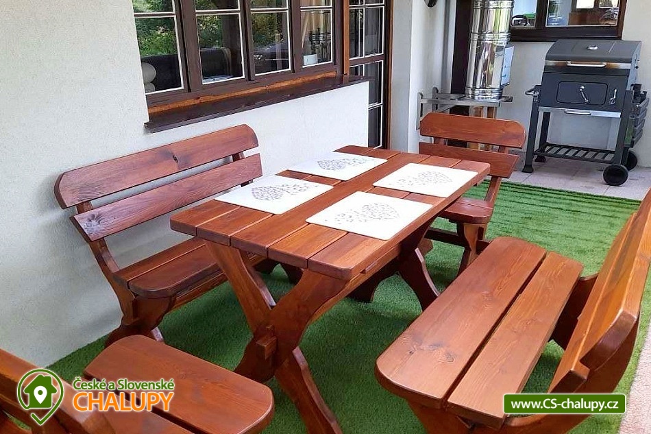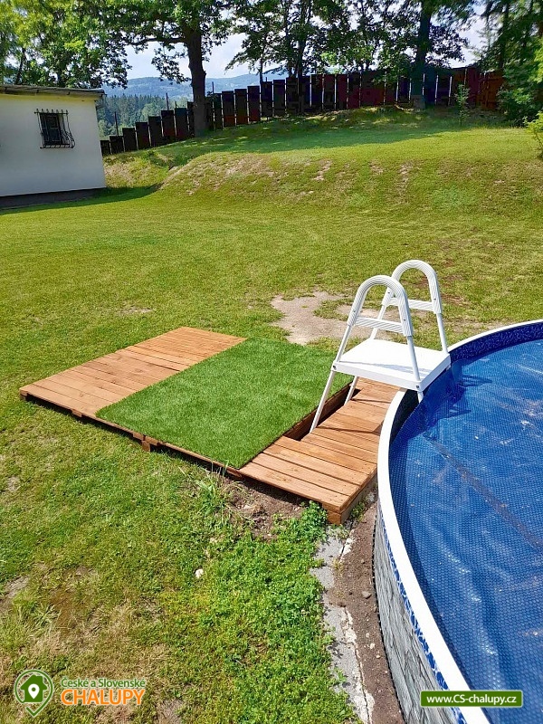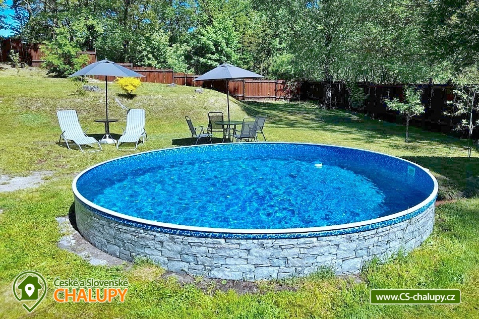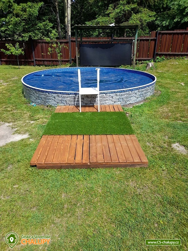 Chata s bazénem a saunou se nachází nedaleko Klínovce na rozhraní Doupovských a Krušných hor a pro svou polohu poskytuje krásné výhledy na malebné údolí řeky Ohře. Nedaleko můžete navštívit lázeňská města Karlovy Vary, Jáchymov a Klášterce nad Ohří. V zimním období je výhodou blízkost lyžařských areálů Klínovec a Jáchymov. Chata nabízí ubytování pro až 6 osob ve třech dvoulůžkových ložnicích (2x manželská postel, 2x jednolůžka - možné přisunout k sobě). Společné chvíle lze trávit v obývací místnosti s krbovými kamny, sedací soupravou, TV a rádiem s cd přehrávačem na dálkové ovládání. Posedět lze také ve vnitřní prosvětlené terase s jídelním koutem a s šesti pohodlnými polstrovanými židlemi. Dále je k dispozici plně vybavená kuchyň (kuchyňská linka nádobí, rychlovarná konvice, mikrovlnná trouba, velká lednice s mrazákem a myčka nádobí). V předsíni je možné využít pračku. Z obývacího pokoje se vychází na zastřešenou terasu s posezením a možností grilování. Sociální zařízení zahrnuje jednu koupelnu se sprchovým koutem, vanou a toaletou. Vytápění je řešeno krbovými kamny, které jsou zapojené do systému topení v celém objektu. V suterénu je k dispozici poloautomatický kotel na uhlí pro ohřev teplé vody a zajištění tepla v zimní sezóně. V části pergoly je složené dřevo na topení v krbových kamnech. V celém objektu je k dispozici WIFI připojení na internet. Kolem chaty se rozléhá veliký oplocený travnatý pozemek (3.000m²). Součástí pozemku je zapuštěný bazén (4,75 průměr kruhu a 1,2 m hloubka) do země se solárním ohřevem a pískovou filtrací. Na pozemku je možné najít v době houbařské sezóny hříbky a další druhy hub. K dispozici je ohniště. Parkovat lze přímo u objektu. V okolí chaty možnost turistiky, cykloturistiky, koupání, rybaření, houbaření, běžkování a lyžování. Mezi možnosti koupání patří např.: aquapark Klášterec nad Ohří, Koupaliště Perštejn, aquapark Jáchymov, Velký rybník Hroznětín, atd. V zimním období jsou k dispozici blízká lyžařská střediska: Klínovec, Horní Halže, Alšovka - Měděnec a další. K výletům v okolí láká Pivovar Chalupník, Hrad Šumná, Nový Hrad, Karlovy Vary - rozhleda Diana, lázeňské centrum, Ostrov nad Ohří - památková zóna, Zoopark a Kamencové Jezero Chomutov a Královské město Kadaň - Katova ulička, nábřeží Maxipsa Fíka, Františkánský klášter, Městská věž nebo Hrad s prohlídkou sklepení. Těšíme se na Vás u nás.