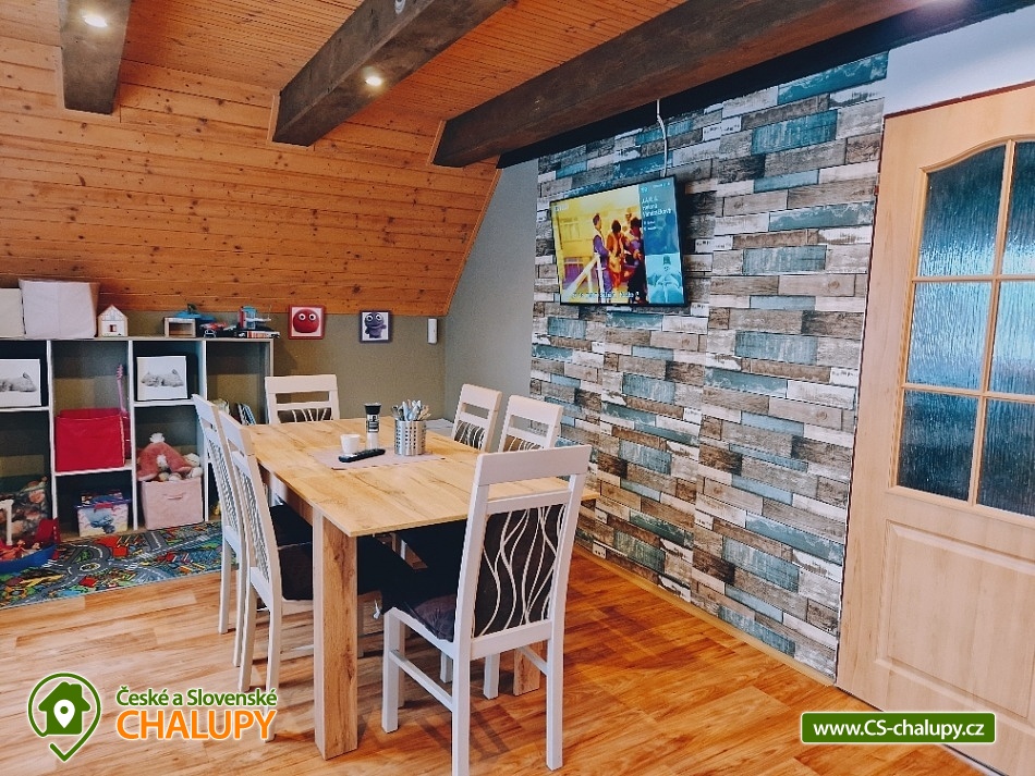 Chata s finskou saunou a venkovním bazénem Krušné hory. Chata pro až 8 osob (4+2 lůžek ve 2 pokojích, 2 přistýlky) v Krušných horách v nadmořské výšce 800 m nedaleko osady Lesná (Lesenská pláň) u obce Boleboř v obci Svahová. Přímo odtud se dají podniknout cyklo, pěší i běžkařské výlety. Zima nabízí spoustu běžeckých stop Lesná - Svahová, Brandov, okruh Pyšná, nebo Lesenská pláň. Lyžovat můžete v areálech ski Pyšná (14km), lyžařský areál Mezihoří (8km), lyžařský areál Klíny (24km). V teplejších měsících jsou tu především krásné procházky k Helenčiným vodopádům nebo na Kočičí skálu, koupání v bazénu přímou u objektu, nebo v okolních rybnících, houbaření. V chatě jsou připraveny další materiály s tipy na výlety či aktivity. U chaty je menší neoplocené prostranství s pergolou, posezením a grilem. Pokud dorazíte s domácím mazlíčkem, či nás navštívíte s dětmi, není pro ně velké vyžití na pozemku u chaty. Ale v bezprostřední blízkosti se nachází les na dlouhé procházky. Uvnitř děti naleznou spousty her, hraček a zábavy. Ze strany od bazénu je pozemek oddělen od dalších chat plotem. Před objektem je příjezdová cesta. Vyhřívaný bazén u chaty je v provozu pouze v letní sezóně. Parkování 1 kryté a 2 volné v bezprostřední blízkosti objektu. Chata nabízí slunnou terasu pro ranní snídaně nebo relaxaci. Chata má cekem 3 patra. Pro bezpečí vašich dětí jsou na schodech umístěny zábrany. V suterénu se nachází společenská místnost s TV, rozkládací gauč, společenské hry, šipky, ping-pong, stolní fotbal, posilovací stroje, wc a sprcha, finská sauna, menší vinotéka, kuchyňská linka. V prostředním patře se nachází obývací pokoj s rohovým rozkládacím gaučem, televizorem, krbem a skříňkami pro uložení věcí. Předsíň je menší a nabízí botník a háčky na pověšení kabátů. Dají se zde odložit lyže či běžky. Dále kuchyně s jídelním koutem a koutkem pro děti, který je vybaven hračkami. V kuchyni najdete např. myčku, pračku, troubu se sklokeramickým sporákem, mikrovlnnou troubu, lednici s mrazákem, varnou konvici, topinkovač, vaflovač, kávovar, rýžovar, ponorný mixér, dětskou jídelní židličku, dětské nádobí, misky pro vaše mazlíčky, talíře, hrnce, příbory a další základní vybavení je samozřejmostí. V podkroví chaty se nacházejí 2 menší ložnice vybavené menší skříní pro uložení věcí. V jedné ložnici se nachází 1 dvoulůžková a 1 dětská postel. V druhé ložnici se nachází 1 dvoulůžková postel a 1 válenda. Mezi ložnicemi je menší prostor se 2 přistýlkami, nebo můžete prostor využít k odpočinku či relaxaci (4+2 lůžek + 2x přistýlka) V chatě je 1x koupelna s vanou a WC, dále sprchový kout a druhé WC. Vytápění zajišťuje elektrický kotel, který si zákazník reguluje sám a krb na dřevo. Pokud jezdíte na kole, Krušné hory nabídnou i cyklistické stezky. Možnosti koupání v okolí: přehrada Jirkov, přehrada Kyjice, vodní nádrž Matylda, přehrada Fláje, Rudolický rybník, Novomlýnský rybník, rybník Brandov, Kamencové jezero a aquapark Chomutov.