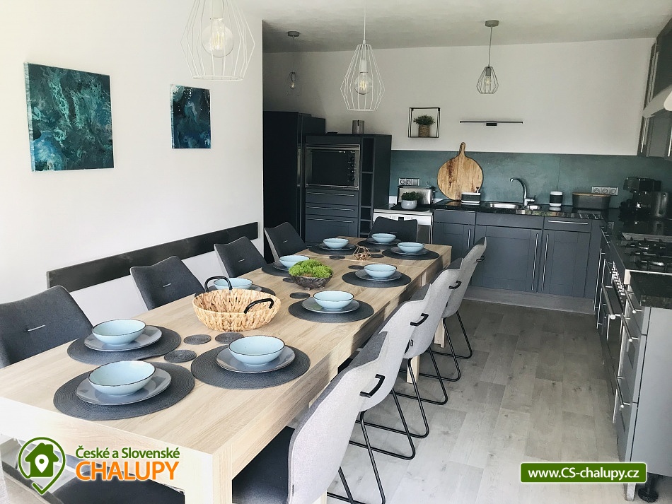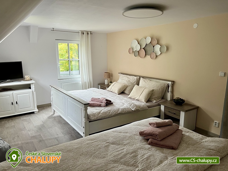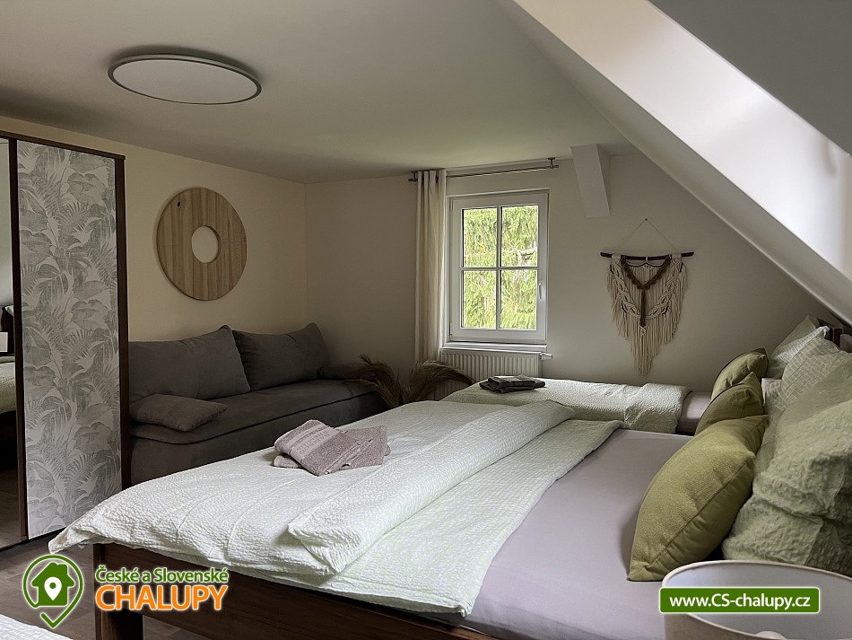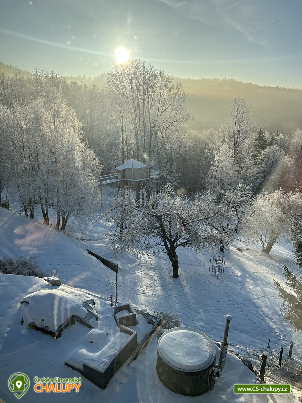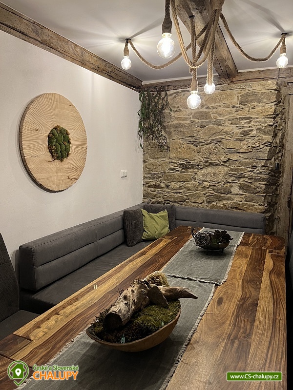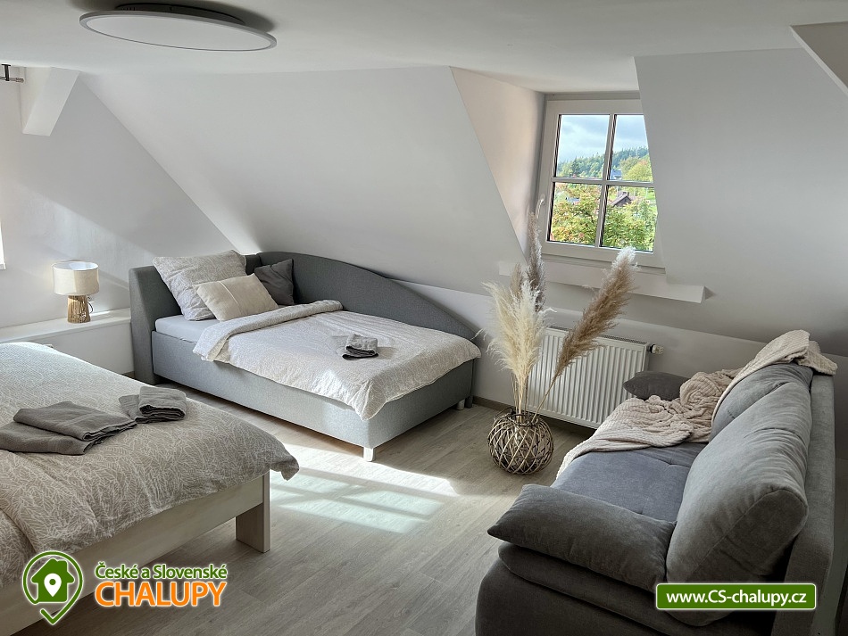 Wellness horská chata s bazénem se nachází na okraji malé obce Český Šumburk na pomezí Krkonoš a Jizerských hor - lokalita obcí Příchovice a Kořenov. Na terase u chaty je pro Vás připravený vyhřívaný bazén se slanou vodou a posezením, odkud je kouzelný výhled do horského údolí a nedalekých lesů. Možnost využití venkovního vířivého sudu a vnitřní infrasauny a vířivky. Chata nabízí ubytování pro až 24 osob v celkem 6 pokojích. Pokoje jsou v prvním patře, každé dva pokoje mají vždy společnou koupelnu a toaletu plus jeden samostatný záchod je na chodbě. Kuchyně je plně vybavená s plynovým sporákem, velkou troubou, mikrovlnkou, americkou lednicí, a druhá lednice s mrazákem na chodbě, varná konvice, espresso, toustovač. Posezení u stolu v kuchyni je pro 12 osob a dalších 8 je ve společenské místnosti s televizí a krbem.Větší společenská místnost je na vyžádání a vejde se do ní 20 osob a další židle se dají přidat z menší společenské místnosti ,třeba na teambuilding a větší oslavy. Chata je v zimě vytápěna tepelným čerpadlem. Ve spodní části zahrady vás okouzlí velké prostorné posezení s grilem a ohništěm. Pro děti jsou připraveny houpačky, globus kolotoč a velká obdélníková trampolína zapuštěná v zemi s rozlehlou zahradou a loukou. K dispozici je také velké hřiště na volejbal nebo fotbal, dále stolní tenis, badminton,kuželky,petanque.OKOLÍ: V Příchovicích je krásná naučná stezka Járy Cimrmana U čápa s restaurací a hřištěm, opodál minigolf 5 min autem. Poblíž ve vsi Zlatá Olešnice se nachází koupaliště s beachvolejbalovým hřištěm a hřištěm pro děti. V obci Kořenov je možné využít bowling 10 min autem. Lanové centrum Harrachov 13 min autem, Bobová dráha Harrachov, Vodopády Jedlové, Rozhledna Bramberk, Mumlavský vodopád a Rozhledna Štěpánka. V Tanvaldu je úžasná pekárna, cukrárna, pizzerie, kebab. V zimě je v dosahu 3km sjezdovka v Příchovicích U čápa, 3km Rejdice s vyžitím pro snowboardy, ski areál Rokytnice nad Jizerou, Harrachov a Tanvaldský Špičák vzdálený 20 km. Trasa pro běžkaře je u rozhledny Štěpánka (4 km). Těšíme se na Vás u nás.