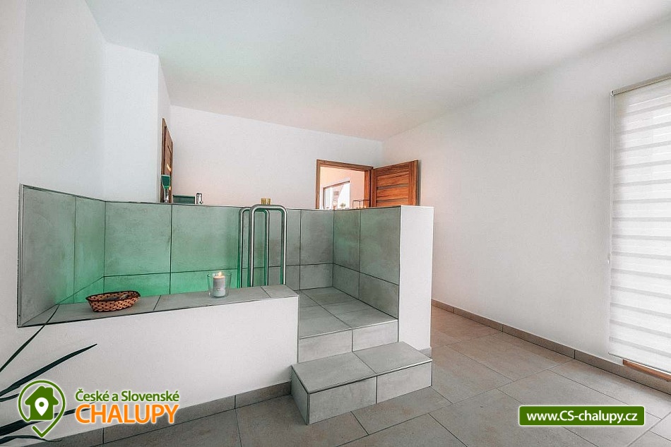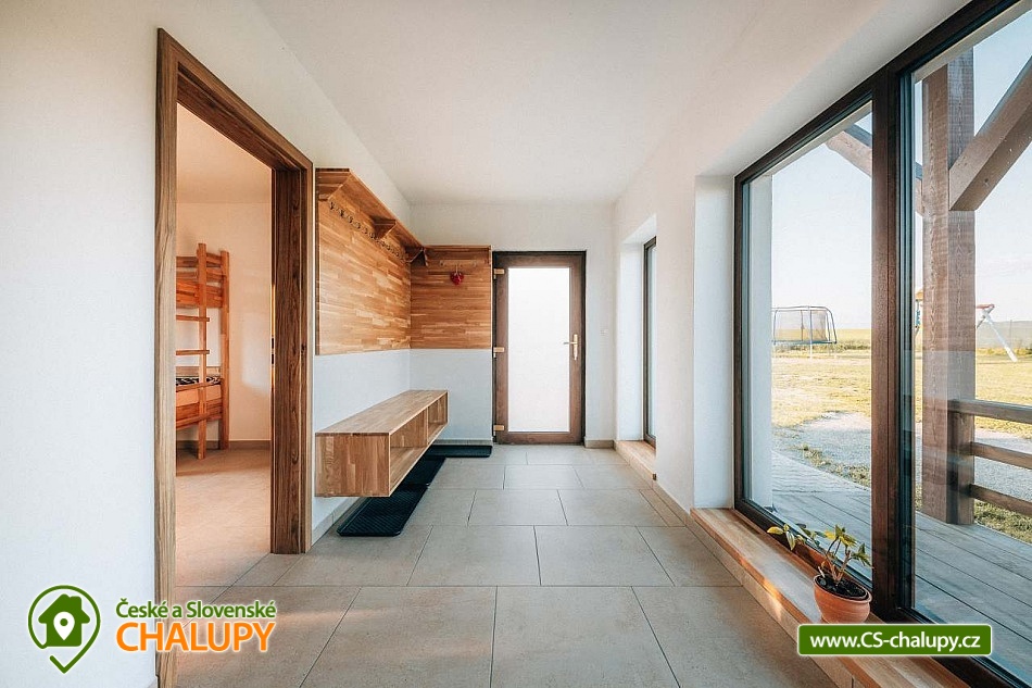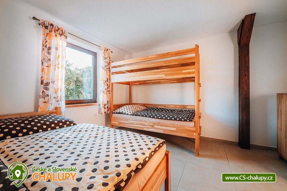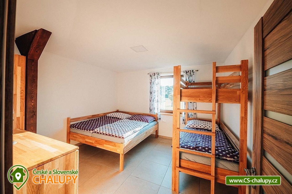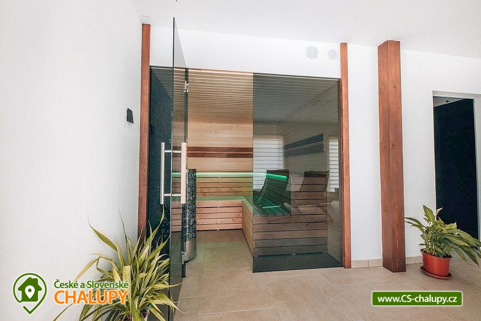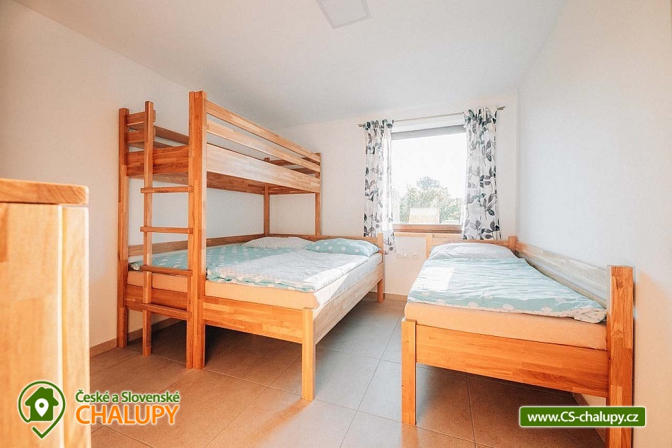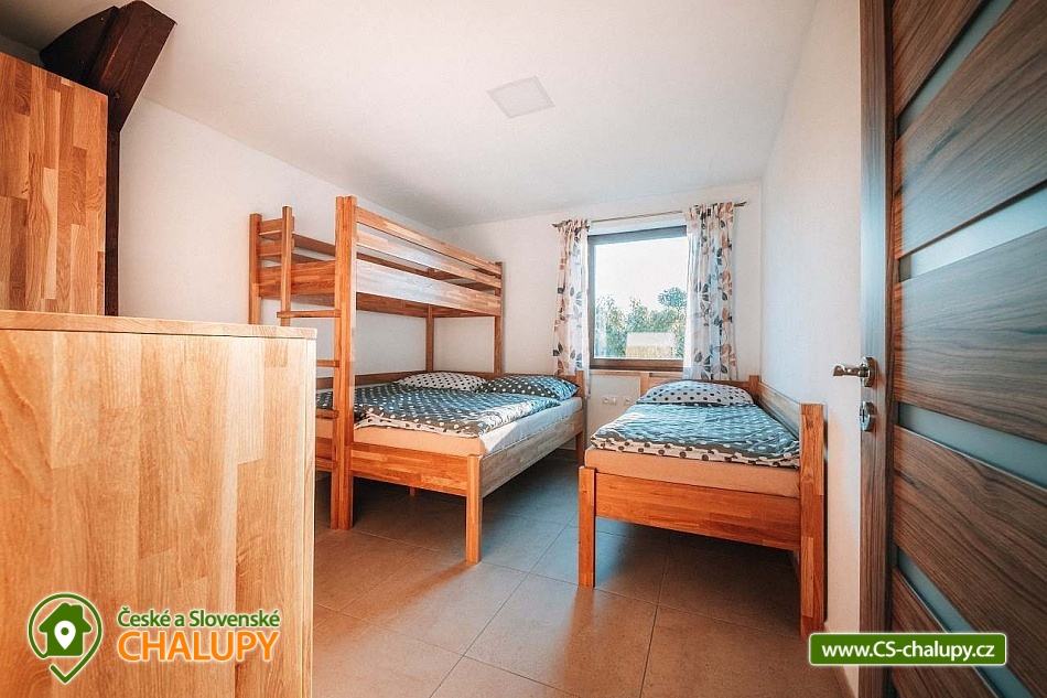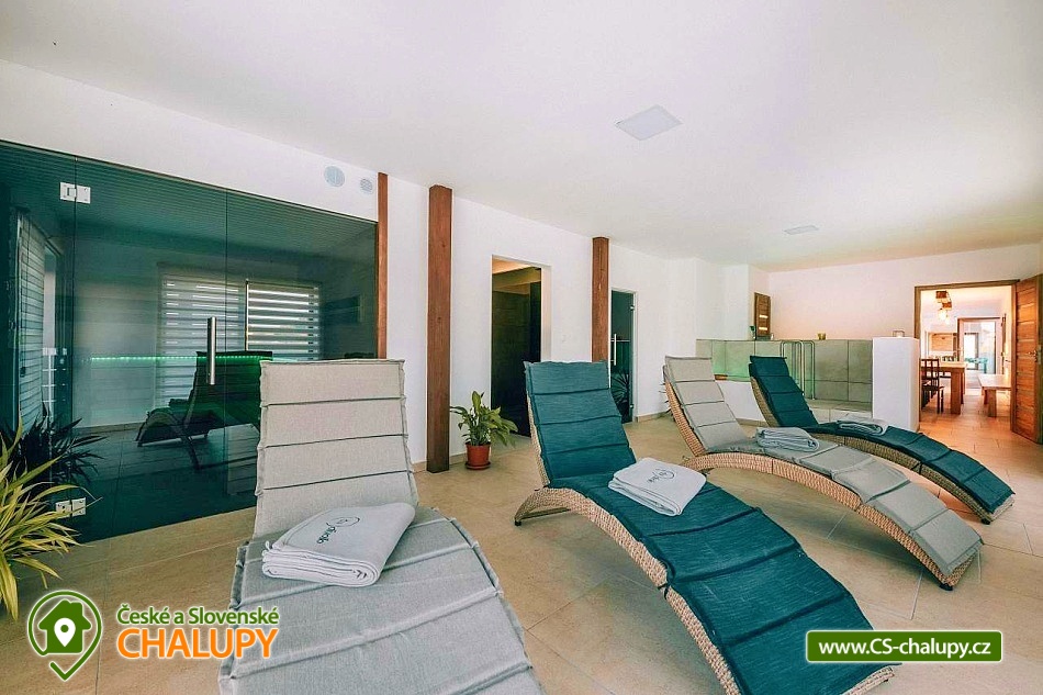 Chata s bazénem a wellness se nachází 12 km od Vranovské přehrady, poloha na okraji obce Mladoňovice na Vysočině. V blízkém okolí si přijdou na své příznivci pěkné přírody, historických pamětihodností i cykloturisté. Chata je v oploceném areálu s pestrým vyžitím a nabízí ubytování pro až 16 osob ve čtyřech čtyřlůřkových ložnicích. Dvě ložnice mají k dispozici 1x dvoulůžko a 1x patrovou postel. V dalších dvou ložnicích je umístěné 1x jednolůžko, 1x dvoulůžko a 1x jednolůžková patrová postel nad dvoulůžkem. Chata je přízemní, vstupuje se do ní z vlastního parkoviště. Prochází se přes prosvětlenou širokou chodbu, z které se vstupuje do 4 ložnic. Součástí obytné chodby je menší dětský koutek a fotbálek. Dále na chodbu navazuje společenská místnost s jídelnou s TV. Součástí místnosti je také plně vybavená kuchyň, ve které jsou k dispozici 2 lednice (z toho jedna s mrazícím boxem), myčka na nádobí, indukční varná deska (4 varné jednotky), mikrovlnná trouba, elektrická trouba, pračka a toustovač. Ze zadní části jídelny se vchází do wellness zázemí, jehož součástí je finská sauna pro 6 osob, zapuštěná podsvícená ochlazovací káď, dva sprchové kouty a prostorná odpočívárna s relaxačními lehátky. Dále sociální zařízení zahrnuje dvě koupelny s dvojumyvadly a a walk - in sprchovým koutem. K dispozici je povlečení, kuchyňské utěrky, základní mycí prostředky, ručníky na toaletě, podložky do sauny. Ručníky a osušky je nutné mít vlastní. Vytápění je řešeno elektrickým podlahovým topením v celé chatě. K dispozici je v celém objektu WIFI připojení na internet. Z jídelny a z wellness zóny lze přes balkónové dveře vstoupit na terasu, které je podél celé chaty. Tato terasa bezbariérově navazuje jak na parkoviště, tak na dlážděnou terasu s venkovním zapuštěným bazénem (5x3m) a s lehátky. Kolem chaty se rozléhá oplocená zahrada (1200m²), na kterou je přístup bránou z příjezdové cesty, vchodovými dveřmi u parkoviště, dveřmi z jídelny či balkonovými dveřmi z wellness zázemí. Součástí zahrady je zastřešená pergola (5x15m) s posezením, plynovým grilem, elektronickými šipkami a disponuje též houpacím kruhem a houpací sítí. Dále se na zahradě nachází venkovní posezení s ohništěm a dětské hřiště s domečkem, skluzavkou, trampolínou a houpačkou pro nejmenší. Parkovat lze přímo u objektu. V okolí objektu možnost turistiky, cykloturistiky, koupání, houbaření a rybaření. V blízkosti jsou také tenisové kurty a jízdárna. Mezi možnosti koupání patří např.: Vranovská přehrada, Biotop Jemnice, koupaliště Nimpšov, rybník Hrachovec, přehrada Plichťák, Bítovská zátoka, rybník Vidlák, koupaliště Moravské Budějovice, rybník Dolní Modletický, koupaliště Dačice, Nový rybník, koupaliště Jaroměřice nad Rokytnou a další. K výletům v okolí láká Mladoňovice - Expozice Petra Mladoně, Police - zámek, Muzeum RAF, židovský hřbitov, Uherčice – zámek, Bítov - hrad, rozhledna Rumburak, Vranov nad Dyjí - zámek, Národní park Podyjí, Jaroměřice nad Rokytnou – zámek nebo Znojmo - Jihomoravské muzeum, Znojemský hrad, Rotunda sv. Kateřiny, Památník Prokopa Diviše, Minoritský klášter, Znojemské podzemí a Vlkova věž nebo Telč, Dačice a další. Těšíme se na Vás u nás.