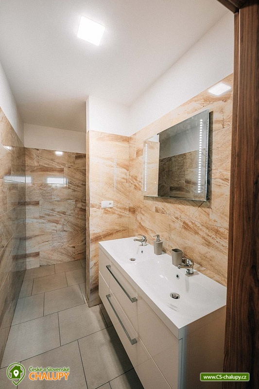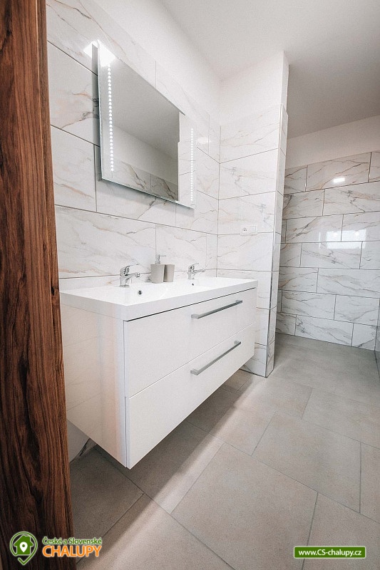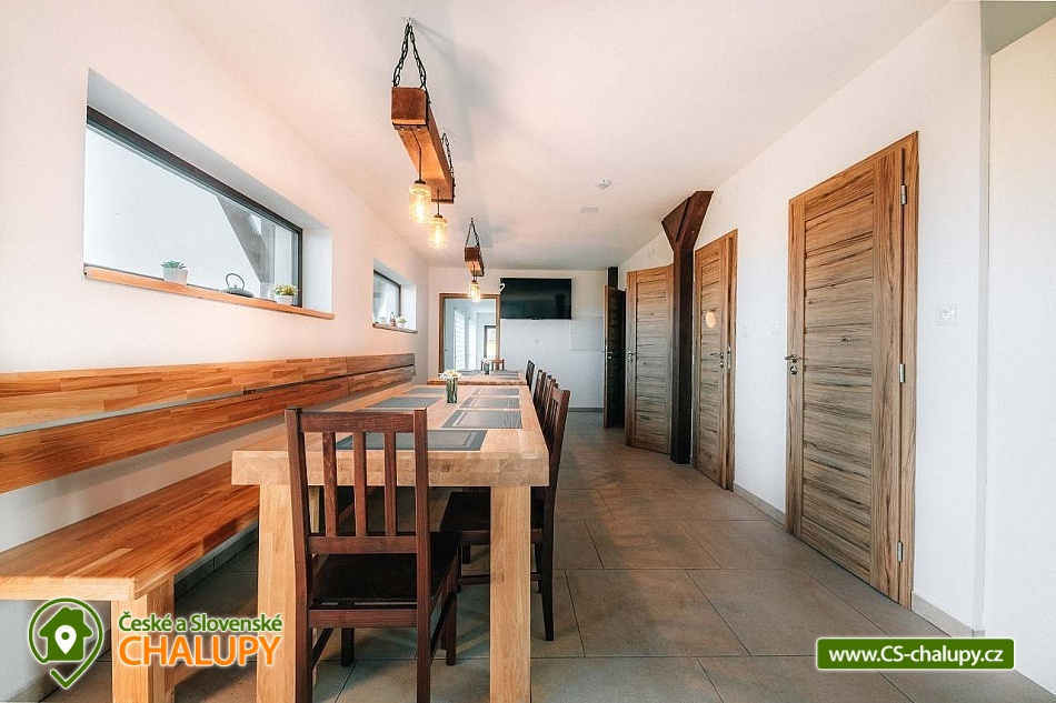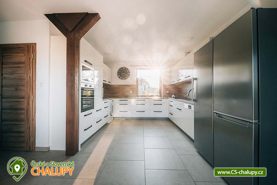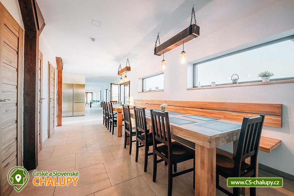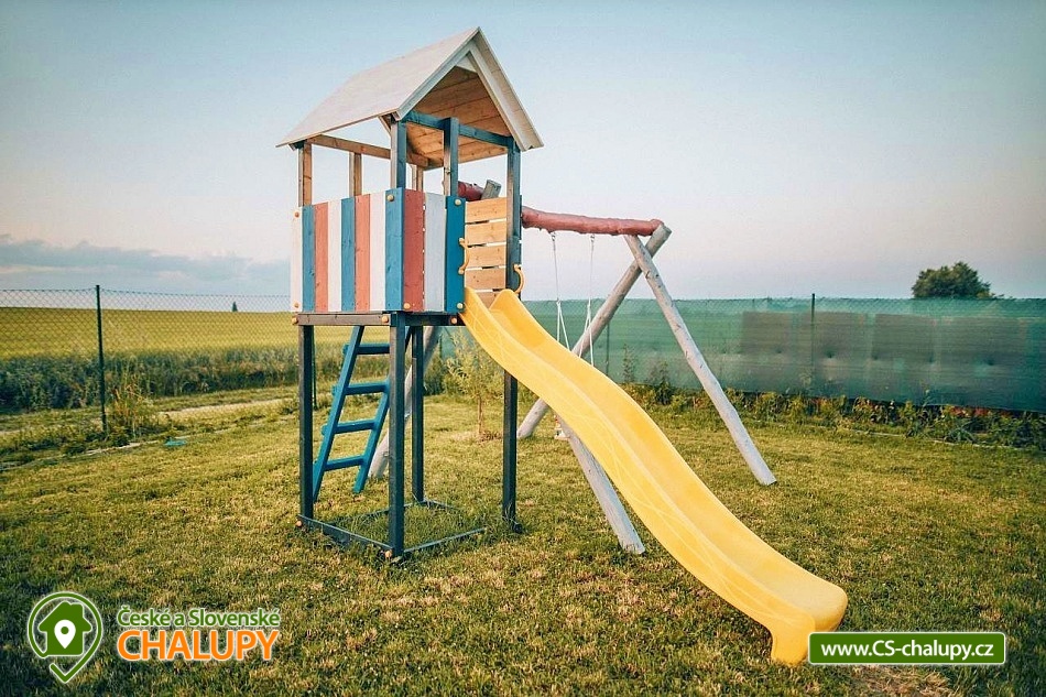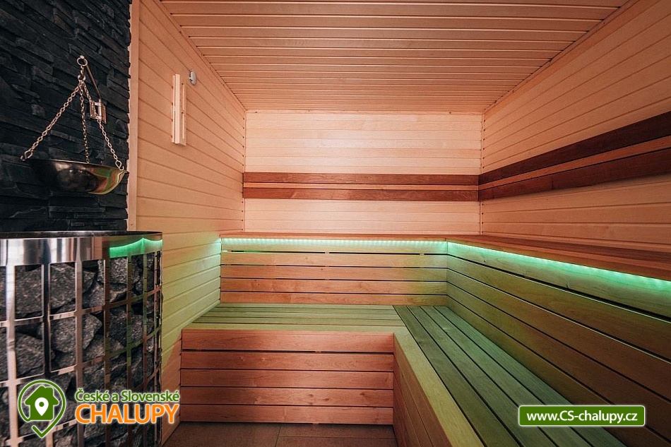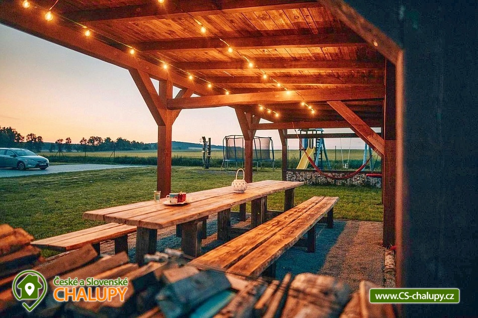 Chata s bazénem a wellness se nachází 12 km od Vranovské přehrady, poloha na okraji obce Mladoňovice na Vysočině. V blízkém okolí si přijdou na své příznivci pěkné přírody, historických pamětihodností i cykloturisté. Chata je v oploceném areálu s pestrým vyžitím a nabízí ubytování pro až 16 osob ve čtyřech čtyřlůřkových ložnicích. Dvě ložnice mají k dispozici 1x dvoulůžko a 1x patrovou postel. V dalších dvou ložnicích je umístěné 1x jednolůžko, 1x dvoulůžko a 1x jednolůžková patrová postel nad dvoulůžkem. Chata je přízemní, vstupuje se do ní z vlastního parkoviště. Prochází se přes prosvětlenou širokou chodbu, z které se vstupuje do 4 ložnic. Součástí obytné chodby je menší dětský koutek a fotbálek. Dále na chodbu navazuje společenská místnost s jídelnou s TV. Součástí místnosti je také plně vybavená kuchyň, ve které jsou k dispozici 2 lednice (z toho jedna s mrazícím boxem), myčka na nádobí, indukční varná deska (4 varné jednotky), mikrovlnná trouba, elektrická trouba, pračka a toustovač. Ze zadní části jídelny se vchází do wellness zázemí, jehož součástí je finská sauna pro 6 osob, zapuštěná podsvícená ochlazovací káď, dva sprchové kouty a prostorná odpočívárna s relaxačními lehátky. Dále sociální zařízení zahrnuje dvě koupelny s dvojumyvadly a a walk - in sprchovým koutem. K dispozici je povlečení, kuchyňské utěrky, základní mycí prostředky, ručníky na toaletě, podložky do sauny. Ručníky a osušky je nutné mít vlastní. Vytápění je řešeno elektrickým podlahovým topením v celé chatě. K dispozici je v celém objektu WIFI připojení na internet. Z jídelny a z wellness zóny lze přes balkónové dveře vstoupit na terasu, které je podél celé chaty. Tato terasa bezbariérově navazuje jak na parkoviště, tak na dlážděnou terasu s venkovním zapuštěným bazénem (5x3m) a s lehátky. Kolem chaty se rozléhá oplocená zahrada (1200m²), na kterou je přístup bránou z příjezdové cesty, vchodovými dveřmi u parkoviště, dveřmi z jídelny či balkonovými dveřmi z wellness zázemí. Součástí zahrady je zastřešená pergola (5x15m) s posezením, plynovým grilem, elektronickými šipkami a disponuje též houpacím kruhem a houpací sítí. Dále se na zahradě nachází venkovní posezení s ohništěm a dětské hřiště s domečkem, skluzavkou, trampolínou a houpačkou pro nejmenší. Parkovat lze přímo u objektu. V okolí objektu možnost turistiky, cykloturistiky, koupání, houbaření a rybaření. V blízkosti jsou také tenisové kurty a jízdárna. Mezi možnosti koupání patří např.: Vranovská přehrada, Biotop Jemnice, koupaliště Nimpšov, rybník Hrachovec, přehrada Plichťák, Bítovská zátoka, rybník Vidlák, koupaliště Moravské Budějovice, rybník Dolní Modletický, koupaliště Dačice, Nový rybník, koupaliště Jaroměřice nad Rokytnou a další. K výletům v okolí láká Mladoňovice - Expozice Petra Mladoně, Police - zámek, Muzeum RAF, židovský hřbitov, Uherčice – zámek, Bítov - hrad, rozhledna Rumburak, Vranov nad Dyjí - zámek, Národní park Podyjí, Jaroměřice nad Rokytnou – zámek nebo Znojmo - Jihomoravské muzeum, Znojemský hrad, Rotunda sv. Kateřiny, Památník Prokopa Diviše, Minoritský klášter, Znojemské podzemí a Vlkova věž nebo Telč, Dačice a další. Těšíme se na Vás u nás.