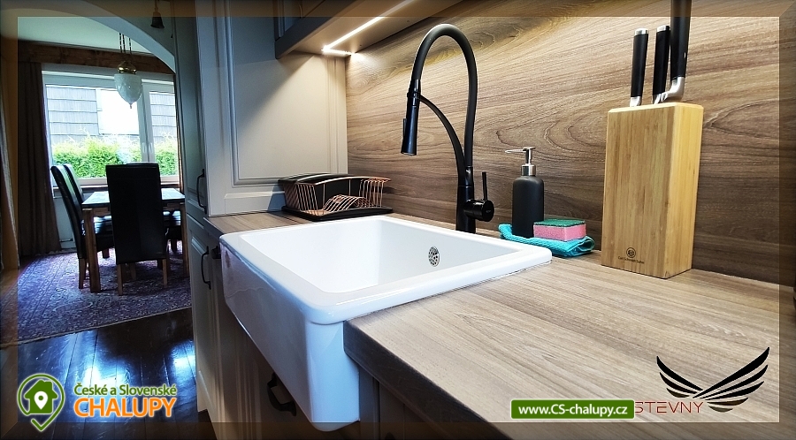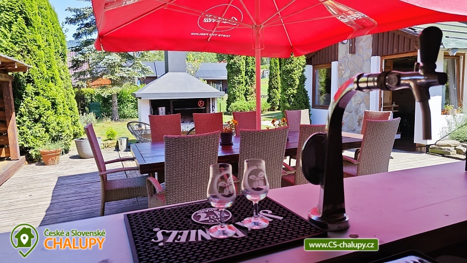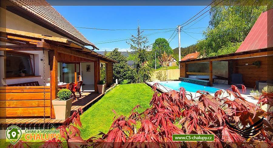 Chata s bazénem a wellness nedaleko Valašského muzea v přírodě ve Velkých Karlovicích. Komfortní Chata s bazénem a wellness k pronajmutí se nachází v okrese Vsetín v krásném prostředí CHKO Beskydy. Chalupa k pronájmu poskytuje ubytování pro až 10 osob ve 4 ložnicích. V chatě je k dispozici plně vybavený kuchyňský kout (el. multifunkční trouba se sklokeramickou deskou, 2x lednička, mikrovlnná trouba, varná konvice, kávovar + espresso) a obývací pokoj s TV+SAT, domácím kinem a krbem. K zábavě slouží i společenská místnost s barem se zařízením na čepování piva a kulečníkem. Pro chvíle oddechu je zde finská sauna pro 4 osoby se sprchou. V chatě se nachází celkem 3 ložnice: 2x třílůžková (vždy dvoulůžko a samostatné lůžko) a 1x ložnice s dvoulůžkem. V podkroví je přístupné po rozkládacích schodech a jsou zde 2 další samostatná lůžka (bráno jako 2 přistýlky). V chatě jsou 2 koupelny, první je vybavena sprchovým koutem a WC, druhá sprchovým koutem, vanou a WC. Vytápění objektu je zajištěno krbem na dřevo a ústředním plynovým topením. V létě je u chaty k dispozici nadzemní bazén, vířivá vana až pro 5 osob, zastřešené posezení a také stylové venkovní posezení s přenosným grilem. Chata je vhodná jako základna pro turistiku i cykloturistiku, v jejím okolí naleznete mnoho turistických tras a cyklostezek. V okolí Chaty pod Pustevnami Vám doporučujeme kromě krásné okolní přírody navštívit známá místa CHKO Beskydy. K těm nejznámějším patří bezesporu Pustevny. Pro Pustevny jsou typické dřevěné stavby postavené v lidovém slohu na návrh Dušana Jurkoviče. Pronájem chaty Moravskoslezské Beskydy. Za shlédnutí stojí také socha Radegasta - boha úrody, stád a pohostinství, kterou naleznete cestou na vrchol rohy Radhošť, nebo město Rožnov pod Radhoštěm se svým vyhlášeným skanzenem.