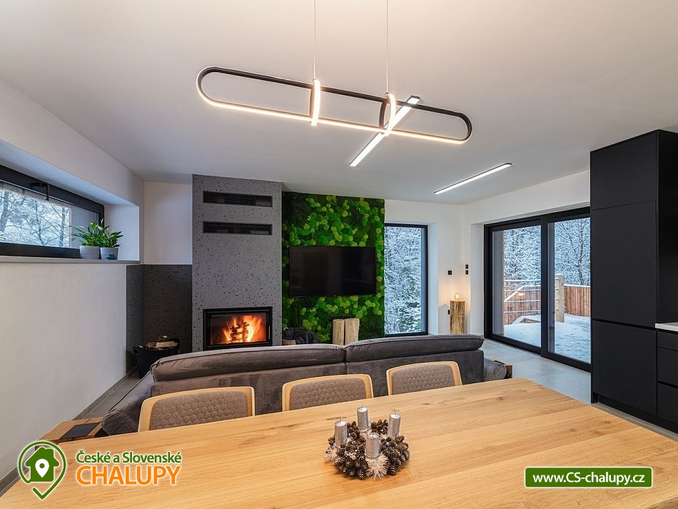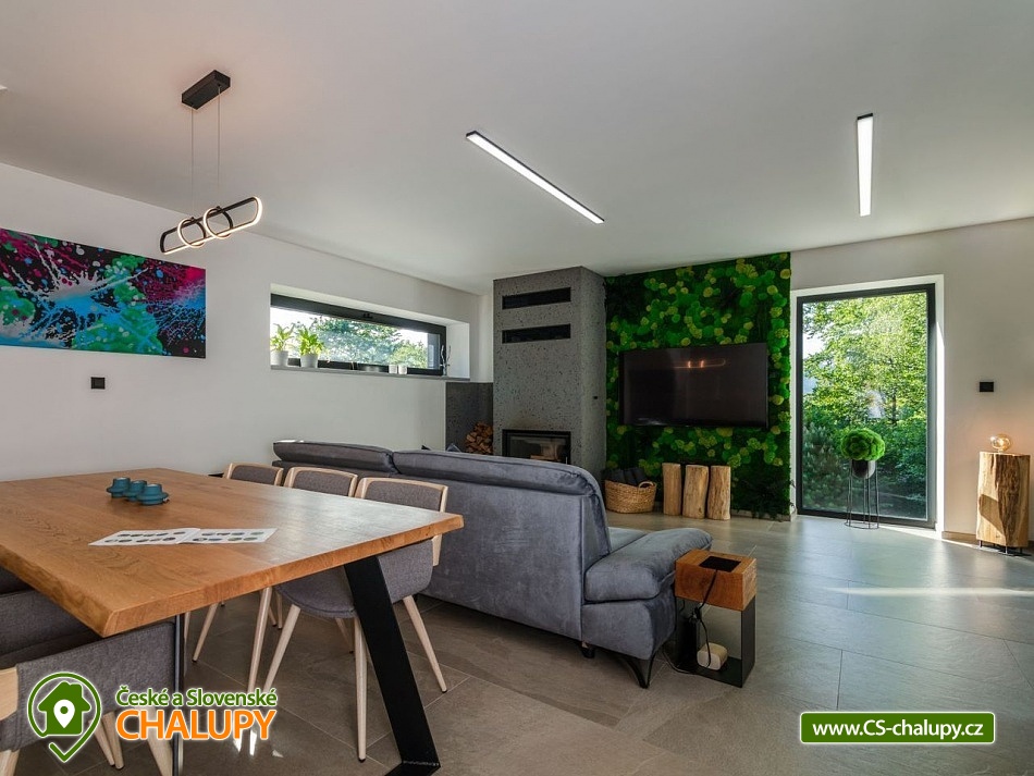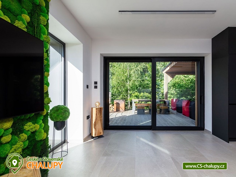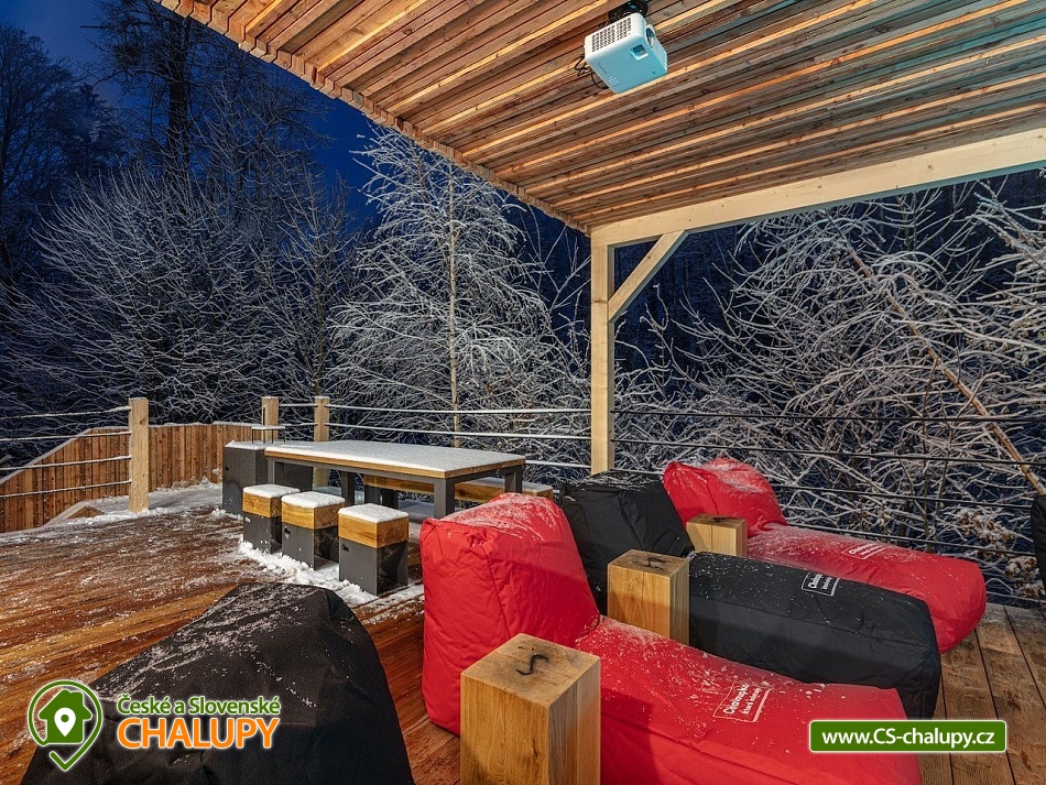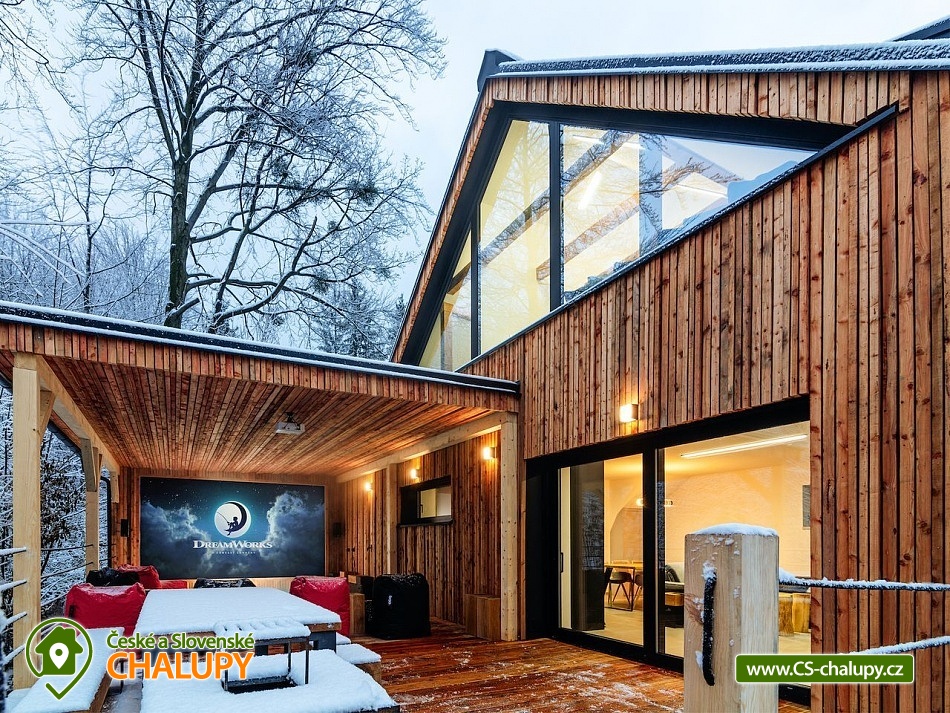 Chata s wellness a vlastním kinem se nachází v krásném pohoří Beskydy, odkud máte možnost vydat se na výlety do hor, zahrát si golf, projet se na kole nebo si zalyžovat. Těšit se můžete na terasu s venkovním kinem vybaveným pohodlnými sedačkami či na odpočinek ve vířivce. Chata v obci Čeladná nabízí ubytování pro až 6 osob ve dvou ložnicích, ze kterých je krásný výhled do přírody. Obě ložnice se nachází v prvním patře společně s toaletou a koupelnou se sprchovým koutem. V první ložnici jsou k dispozici dvě dvoulůžkové postele a dětská cestovní postýlka, kterou vám na vyžádání rádi připravíme. Další ložnice pak nabízí útulné místo pro dva s velkou dvoulůžkovou postelí. V přízemí naleznete kuchyň s veškerým potřebným nádobím i pomůckami pro vaření - horkovzdušná trouba, mikrovlnka, varná konvice, myčka, vestavná lednice a kávovar DeLonghi na zrnkovou kávu. Druhou koupelnu se sprchovým koutem, dvěma umyvadly a samostatnou toaletu najdete v přízemí. Osušky a župany jsou pro vás vždy připraveny. K trávení společných chvil slouží prostorný obývací pokoj s krbem a mechovou stěnou, které jsou dominantou celého prostoru. Celý objekt disponuje podlahovým vytápěním s možností nastavení teploty v každé místnosti samostatně. Součástí Chaty je také pračka a sušička, která je vám plně k dispozici. Terasa plně navazuje na obývák a v letních měsících ji tak můžete propojit s venkovní částí. K této chatě dorazíte pohodlně autem (v zimě jsou však nutné řetězy). Zajistili jsme pro vás parkování před chatou pro 4 osobní vozy. Venku lze volné chvíle trávit na zastřešené terase s posezením a zahradním grilem na dřevo, které máte vždy připravené. Venkovní kino, na které se můžete dívat z pohodlí sedaček nebo přímo z vířivky je kvalitně ozvučeno a můžete zde sledovat váš oblíbený film nebo poslouchat hudbu. Na zahradě je přenosné ohniště, kde si večer můžete posedět u ohýnku a opéct si špekáčky. V okolí objektu se nachází golfové hřiště, jízdárna, cyklostezky, trasy pro pěší turistiku, kde doporučujeme "Po medvědích tlapkách" - naleznete zde značené stezky a okruhy pod nejvyššími vrcholy Beskyd. Je zde možnost koupání - přehrada Olešná, koupaliště Ostravice - Sepetná, koupaliště Frýdlant nad Ostravicí, aquapark Frenštát pod Radhoštěm. V zimě oceníte možnost lyžovačky na sjezdovkách SKI Bílá nebo SkiPark Gruň či běžecké tratě na Lysohorské běžecké magistrále. Těšíme se na Vás u nás.