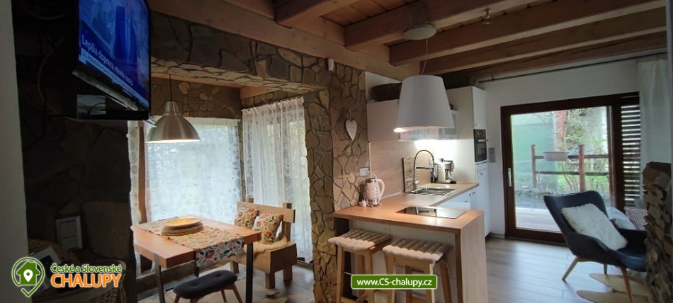 Chata Bílý Potok - ubytování Malá Fatra. Chata se nachází nedaleko turistické stezky do Jánošíkových děr nedaleko vrchu Rozsutec. Do chaty vstupujete bezbariérovým vstupem do chodby - posuvnými dveřmi se dostanete do obývací části s krbem a TV, propojené s kuchyní a jídelním koutem. Při vstupu je umístěna samostatná toaleta. Přízemí je propojeno bezbariérově s exteriérem třemi terasami na východní, jižní i západní straně. Na patře umístěny dvě samostatné ložnice i koupelna s toaletou. Vybavení kuchyně tvoří nádobí a elektrospotřebiče (lednice s mrazákem, mikrovlnka s el. troubou, indukční deska, myčka nádobí). V objektu je WiFi připojení na internet. Pozemek kolem chaty je oplocený a nabízí parkování pro 2 auta. V nádherné přírodě se v každém ročním období vyberete na lehčí či náročnější túru nebo provětráte svá kola. Zdoláte Velký Rozsutec, Jánošíkovy díry, Bělské skály nebo si vychutnáte pohled z rozhledny. Svou zdatnost otestujete v Lanovém parku Dino Adventure. Vaše dětičky poznají různá zvířátka v Mini Zoo - Terchovská zahrada. Milovníci zimních sportů si zalyžují na svazích lyžařských středisek Ski Gavurky či Vrátna Free Time Zone.
