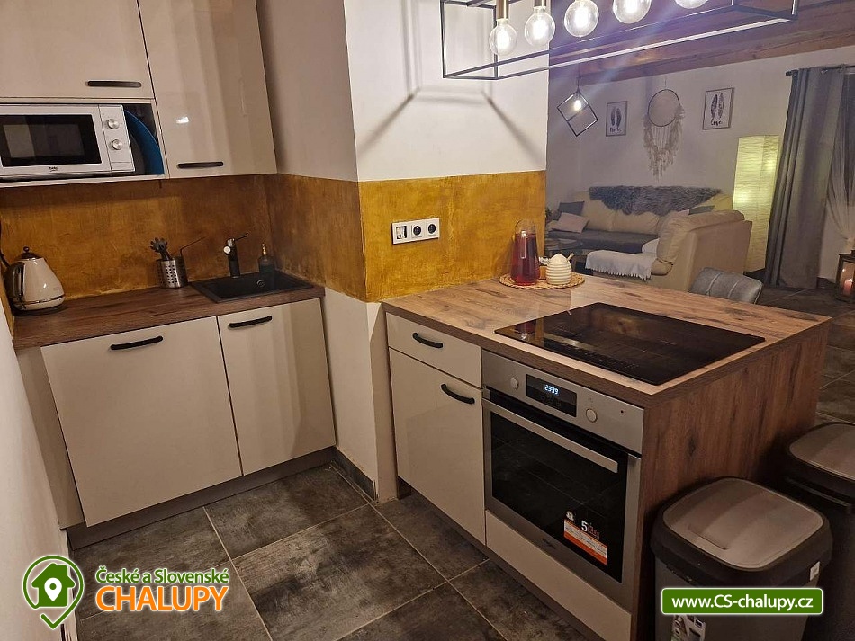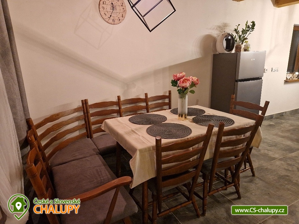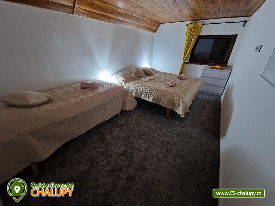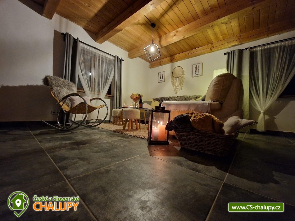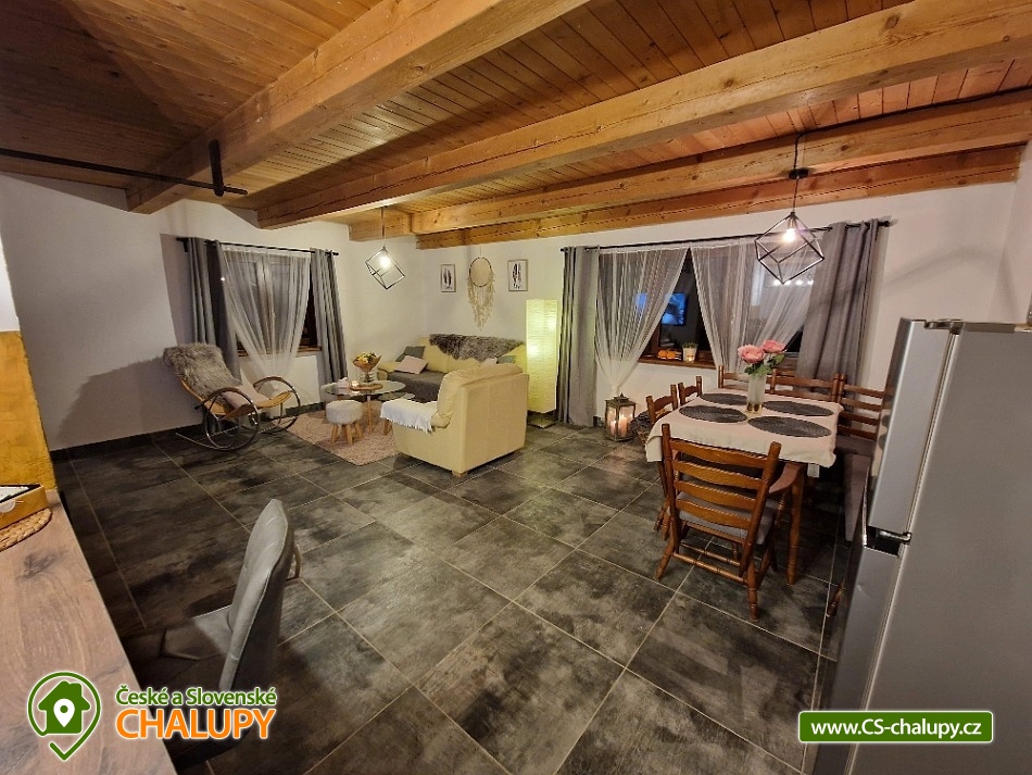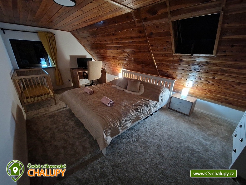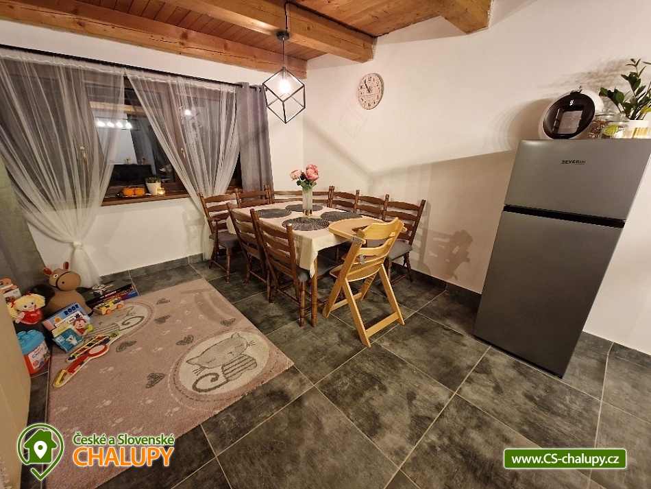 Chata u lesa s dětským hřištěm a posezením u ohníčku v srdci Orlických hor je ideálním místem pro aktivní odpočinek či rodinnou dovolenou jak v zimě, tak v létě. Poloha nedaleko celoročního areálu Buková hora a Suchého vrchu, obec Čenkovice. Kapacita chaty je až 8 osob ve 3 ložnicích. Můžete však využít rychlý internet, velkou LCD televizi nebo vodu z vlastní studny, kterou ohřívá elektrický boiler. Součástí je také sklep vhodný na úschovu vybavení pro zimní sporty, 1. nadzemní podlaží se vstupní halou, obývacím pokojem spojeným s kuchyní, koupelnou a 2.nadzemní podlaží se dvěma prostornými ložnicemi a dalším menším pokojem pro přespání. Vytápění i ohřev vody je řešeno elektřinou, plnohodnotně vytopit celou chatu však můžete také výkonným krbem s rozvodem teplého vzduchu. Kolem chaty je možné využít neoplocené zahrady, v létě třeba k posezení u ohniště. Stavení se nachází v malebném údolí na samotě u lesa vedle paloučku, kolem protéká potůček. Jedná se však o dvoj - chatu, takže budete mít jednoho přímého souseda. Další nejbližší objekt je vzdálený více než 50 m. V okolí je božský klid, ráno u snídaně na verandě nebo večer při usínání u otevřeného okna, můžete poslouchat šumění lesa a blízkého potoka. V noci je zde naprostá tma, což je ideální, pokud rádi pozorujete noční oblohu a hvězdy. Okolí: 2 km od chaty se nachází Ski-areál Buková hora, kde najdete 2 nejdelší sjezdovky Orlických hor a moderní vyhřívanou čtyř-sedačkovou lanovku. V bezprostředním okolí Čenkovic můžete využít více než 35 km běžeckých tratí různých obtížností. Dále 20 km vzdálený horský resort Dolní Morava nabízí výtečné sjezdové tratě, stezku v oblacích, nejdelší visutý most pro pěší na světě, bobovou dráhu a další. Čenkovice protíná několik cyklo-stezek různých náročností a nedaleko se nachází single-traily. Okolí Čenkovic nabízí celou řadu zajímavých výletních cílů, památek a turistických tras, převážně na území Orlických hor. Přehrada Pastviny - 20 km vzdálená přehrada Pastviny je jedna z nejkrásnějších lokalit a turistických destinací Orlických hor. Rozhledny - V okolí najdete hned několik rozhleden s okouzlujícími výhledy do okolí, jako je Suchý vrch, Křižová hora, Marianka, Lázek nebo Val.