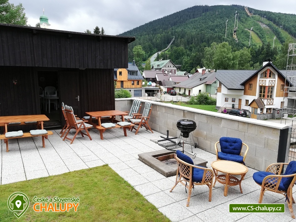Chata Čertova hora nedaleko Mumlavských vodopádů v Krkonoších se pronajímá jako celek 1 skupině klientů s vlastním parkovištěm a kapacitou až 14 lůžek v 6 ložnicích. Přízemí: lyžárna se sušákem bot, kuchyň, společenská místnost a 1x dvoulůžková ložnice. 1.patro: 2x dvoulůžková ložnice, 2x třílůžková ložnice, 1x dvoulůžková ložnice (palandy). Kuchyň: lednice, mrazák, plynový sporák s elektrickou troubou, mikrovlnka, rychlovarná konvice, kávovar, mixér a nádobí. Společenská místnost: televize, satelit, stoly, 14 židlí a sedací souprava. V přízemí jsou dvě WC a dvě sprchy. V 1.patře je jedno WC. Objekt je vytápěn plynovým kotlem s možností regulace teploty. Objekt je i v zimním období dostupný autem. U objektu je parkoviště pro 5 aut. Připojení k internetu zdarma. Je zde i místnost pro uzamčení jízdních kol. U chaty je i altán se zahradním nábytkem a krbem. Výborná poloha umožňuje velmi dobrou dostupnost obchodů, restaurací a všech lákadel, které toto horské středisko nabízí. Z chaty je výhled na skokanské můstky a sjezdovky se sedačkovou lanovkou na Čertovu horu. Harrachov je střediskem zimních i letních sportů a rekreace. Na úbočí Čertovy hory jsou 4 sjezdovky všech stupňů obtížnosti. Je zde množství upravených běžeckých tratí. Turisté mohou podniknout krásné výlety nejen po Krkonoších, ale i po Jizerských horách. Jsou zde půjčovny lyží a kol, tenisové kurty, minigolfová hřiště, koupaliště, lanové centrum, bobová dráha, dětská hřiště a Golf club s vlastním hřištěm. Místní hotely nabízí možnost koupání v krytých bazénech, které může využít každý návštěvník Harrachova. Navštívit můžete také Muzeum skla, Hornické muzeum, Pivní lázně nebo prohlídku pivovaru a sklárny. 100 metrů od objektu je velké dětské hřiště. Koupaliště a minigolf jsou vzdáleny 300 metrů.