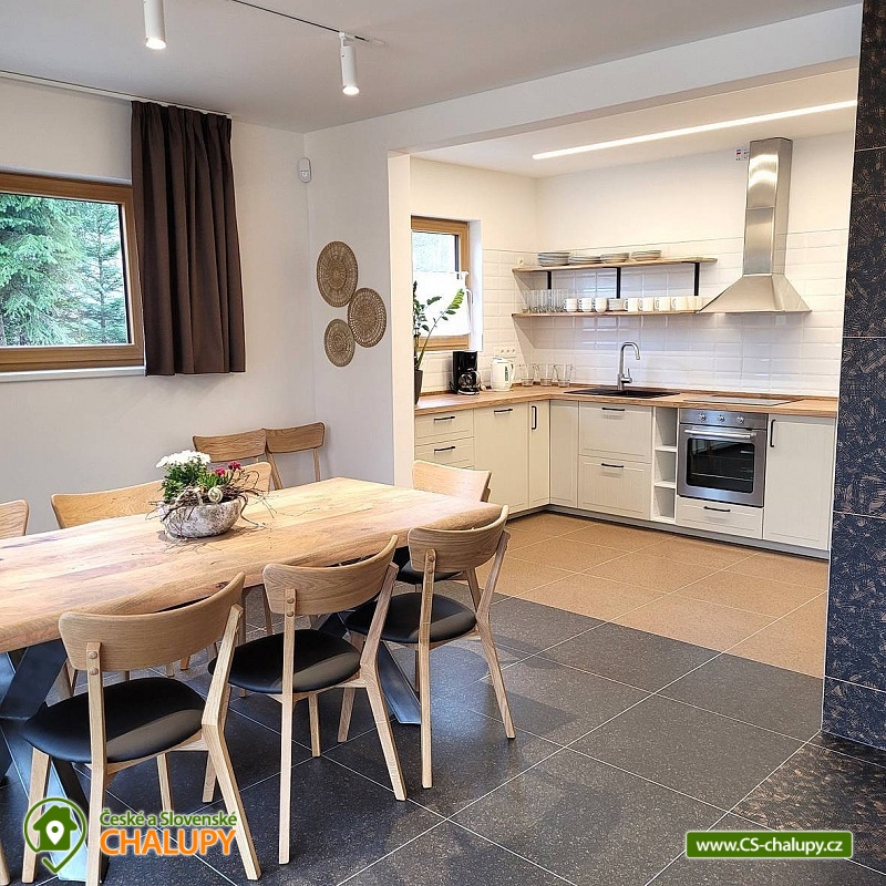 Chata Jesenické hory se 2-ma apartmány se nachází uprostřed Jesenických hor, v těsné blízkosti Wellness hotelu a nedaleko Fauna Parku. Apartmánová chata je situována do dvou pater, je rozdělena na dva samostatné apartmány A a B. Ubytovací kapacita celého objektu je 22 osob, možno pronajmout objekt 1 skupině klientů v soukromí i oba apartmány (10 a 9/1 osob) samostatně. Apartmán A - je nadstandardně vybaven. Ubytovací kapacita je 10 lůžek a zahrnuje: 4x ložnice, 1x koupelna s toaletou, 1x samostatná koupelna, 1x samostatná toaleta, vybavená kuchyně s jídelnou, obývací část, venkovní zastřešená terasa s posezením a zahradou a vysoušeče bot. K uschování kol/lyží slouží pro oba AP společná úschovna. Apartmán B - je standardně vybaven. Ubytovací kapacita je 8 lůžek a 1,5 přistýlka: 3x ložnice, 1x koupelna s toaletou, 1x samostatná koupelna, 1x samostatná toaleta, kuchyňský kout, u apartmánu B není vlastní zahrada, klienti apartmánu mohou využít rozsáhlé zahrady hotelu Helios. K uschování kol/lyží slouží pro oba AP společná úschovna. Součástí ubytování jsou lůžkoviny a ručníky dle počtu osob, toaletní papír, sprchové mýdlo v koupelnách a fén. Vytápění chaty zajišťuje plynový kotel. Bezproblémová dostupnost autem po celý rok. Zdarma parkování pro 5 aut přímo před objektem. Okolí nabízí spoustu wellness i sportovních aktivit. Samozřejmostí je ideální výchozí bod pro podnikání turistických i cyklistických výletů do okolí. Okolí domu nabízí spoustu wellness i sportovních aktivit. Ski areál Moroslav - 400 m nad apartmánem. Zdarma skibus v blízkosti apartmánu. Klienti mohou čerpat slevu na vstup/den do Wellness zóny Helios. Dále mohou využít rozsáhlou zahradu, ve které naleznete dětská hřiště, discgolf, trampolínu nebo např. dětskou lezeckou stěnu. Těšíme se na Vás u nás.