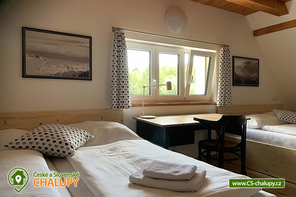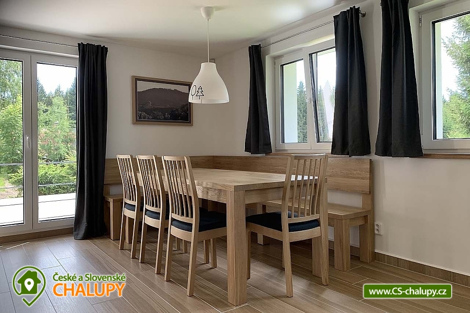 Chata Jizerskohorská magistrála - Jizerské hory. Poloha chaty Vám zaručí klidný pobyt v blízkém spojení s přírodou. Chatu pronajímáme jako celek. Kapacita je až 12 lůžek, rozdělených do dvou samostatných mezonetových pokojů, které se nachází v prvním patře. Společný obývací pokoj je vybaven televizí a pohodlnou sedací soupravou, která lze po předchozí domluvě využít jako další dvoulůžko (přistýlky). Jídlo, které si připravíte v naší plně vybavené kuchyni si můžete společně vychutnat u velkého dubového jídelního stolu. Plně vybavená kuchyň (indukční deska, trouba, myčka, mikrovlnka, varná konvice, nádobí). Pračka. Ručníky, povlečení, toaletní papír, mýdlo, tablety do myčky. Sušák obuvi. Součásti chaty je také prostorná terasa, koupelna se sprchovým koutem a s WC, samostatné WC, sušák obuvi, pračka a místnost pro uložení kol a lyží. Vytápění chalupy elektrickými topnými infrapanely. Přímo před okny chaty vede turistická cesta z Albrechtic v Jizerských horách, která pokračuje přes osadu dále přímo na Jizerskohorskou magistrálu, která je v zimních měsících pravidelně udržována jak pro klasické lyžování, tak i pro bruslení. Magistrála skýtá během zimního období ideální terén pro běžkaře a po zbytek roku pro cyklisty všech výkonností. V zimní sezóně lze navíc po domluvě uskutečnit vyjížďku na sněžném skútru. Během zimního období lze u nás zapůjčit sněžnice. Necelé 2 km od chaty se nachází nejlepší středisko sjezdového lyžování Jizerských hor - Tanvaldský Špičák, kde lze mimo zimní období využívat i vybudované singltreky. Přímo v osadě je v provozu provazový vlek pro malé začínající lyžaře s občerstvením, navazující na obecní vleky a areál Tanvaldského Špičáku. V okolí se nachází spousta zajímavých turistických, kulturních, zábavných a sportovních míst. Možnosti koupání: koupaliště Tanvald, koupaliště Lučany nad Nisou, koupaliště Zlatá Olešnice, přehrada Mšeno, popř. koupaliště Zákoutí Harrachov. Těšíme se na Vás u nás.
