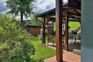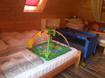 Chata LVIK pro až 13 osob s vířivkou se nachází v srdci Jeseníku - Loučná nad Desnou (9 + 4 přistýlky ve 2. patře). Chata je vhodná pro páry, partu přátel nebo rodiny s dětmi. V chatě se nachází 4 ložnice. Jedna z ložnic v podkroví je průchozí. 1. ložnice: pokoj s krásným výhledem na okolí chaty (dvě manželské postele). Pokoj je vybaven TV, policovými regály a lampičkami. 2. ložnice: prosvětlený pokoj s výhledem na zadní část pozemku chaty. Jsou zde 2 střešní okna. V pokoji se nachází dvě manželské postele a jedna jednolůžková postel. Pokoj je vybaven TV, policovými regály, lampičkami a závěsnou tyčí s věšáky pro umístění oblečení. 3. ložnice se nachází v podkroví chaty. Do podkroví se vstupuje po mlynářském schodišti (schodiště je prudké, doporučujeme spíše pro odrostlejší děti). Prostor v nejvyšším bodě má 2 m střecha je zkosená. Přední část ložnice je průchozí. Nachází se zde 2 jednolůžkové přistýlky (po domluvě možno srazit k sobě jako dvoupřistýlku). V pokoji je umístěn stojan na oblečení, odkládací stolky a lampička u každého lůžka. V zadní části ložnice je další samostatný pokoj, který je oddělen dveřmi. V pokoji se nachází dvě jednolůžkové přistýlky (také platí po domluvě předem je možno připravit jako dvoupřistýlku). Horní část je tedy vhodná nejen pro větší děti, ale pohodlně se zde mohou vyspat i dospělí. Sociální zařízení: V přízemí je koupelna - sprchový kout, WC, dvě umyvadla. V 1.patře je WC + malé umyvadlo. Objekt se vytápí krbovými kamny. Dřevo k vytápění je v ceně ubytování. V obývací části je podlahové topení. V koupelně je elektrický radiátor. Na chodbě v přízemí a v ložnicích v 1. patře jsou olejové el. radiátory. Kuchyň je plně vybavena: mikrovlnka, myčka, trouba, sklokeramická deska, varná konvice, lednice s jednou mrazící přihrádkou, toustovač, topinkovač, přístroj na párek v rohlíku, presso Jura - přibalte zrnkovou kávu. Dále Wi - Fi, TV v obývací části, ve dvou ložnicích menší TV. Venkovní zastřešené posezení, stůl + 8 židlí, houpačka pro 3, lavice pro 2, lehátko, kulatý gril Weber, venkovní vířivka od jara do podzimu, venkovní pingpongový stůl, stolní fotbal, trampolína, hračky, domeček se skluzavkou a "rozhledna" za chatou. Okolí: Přečerpávací elektrárna Dlouhé Stráně, cyklotrasy... např. jet na kole na Praděd je nádherný výlet, cyklovýlet na horní přehradu je jen pro borce. Dole pod chatou se v létě osvěžíte v Hučivé Desné.