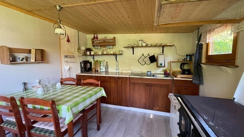 Chata na točně se saunou - Vápenice - Starý Hrozenkov se nachází v malé obci Vápenice. Leží v srdci Bílých Karpat a je ideálním výchozím bodem pro turistiku a cykloturistiku v přírodě. Po dlouhých výletech si můžete odpočinout v naší sauně na dřevo. Chata nabízí ubytování pro 5 osob. K dispozici je třílůžková ložnice (palanda a jednolůžko), další dvojlůžko v předložnici a v obývací části přistýlku. Součástí vybavení chaty je kuchyň (nádobí, dvouplotýnkový vařič, kamna na dřevo s troubou, malá lednice, kontaktní gril a kávovar na kapsle. Nutno přivést vlastní - typ Nespresso), jídelní stůl, splachovací záchod se studenou vodou a venkovní solární sprcha. Zatopit si můžete v kamnech. Parkování je možné přímo u chaty za branou. Možnost uzamčení kol, kočárků a nabití elektrokol. Venku můžete využít posezení na zastřešené terase před chatou nebo posezení na zahradě u ohniště. K dispozici je sauna na dřevo včetně odpočívárny a studené sprchy. Máme tu také jízdárnu, kde se vám postaráme o vaše koně (max. 2). Možností na vyjížďky po okolí je mnoho. Je tu spousta cyklistických tras a zajímavých turistických lokalit: Žítková, hrad Trenčín, hrad Buchlov, Zámek Buchlovice, skanzen Modrá. Vykoupat se můžete v blízkém rybníku nebo na koupališti ve Starém Hrozenkově. Těšíme se na Vás u nás.
