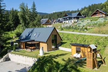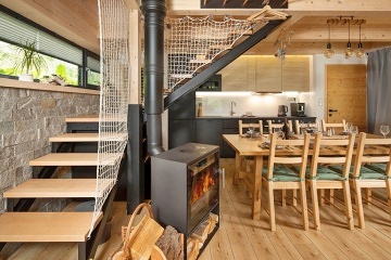 Stylově vybavená Chata Pinus se nachází v krásném horském rekreačním prostředí Kubínské hole u města Dolný Kubín a nedaleko krásné přírody Národního parku Malá Fatra. Pro těsnou blízkost lyžařského střediska Ski Park Kubínská hoľa a AquaRelax Dolný Kubín se můžete těšit na dovolenou plnou aktivního odpočinku a skvělých zážitků. Chata Pinus zařízená ve skandinávském stylu nabízí ubytování pro 14 osob ve dvou samostatných apartmánech A a B s vlastním vchodem, terasou, kuchyní a sociálním zařízením. Chatu je možné si pronajmout jako celek nebo každý apartmán zvlášť. Oba apartmány o rozloze 37 m² jsou řešeny zrcadlově, mají identické zařízení a kapacitu pro 7 osob ve dvou ložnicích. Po domluvě možnost přistýlky řešené rozkládací pohovkou v obývací místnosti. Přízemí apartmánů je tvořeno velkým otevřeným prostorem s krbovými kamny, obývací částí s posezením a TV a kuchyňskou částí s jídelním stolem a plně vybavenou kuchyní (elektrická trouba, mikrovlnná trouba, rychlovarná konvice, lednička, mraznička, kávovar, myčka nádobí a indukční varná deska). K dispozici jsou společenské hry a rádio. V podkroví jsou umístěné dvě ložnice, jedna čtyřlůžková ložnice s manželskou postelí a dvěma jednolůžky a jedna třílůžková ložnice s manželskou postelí a jedním jednolůžkem. Všechny postele jsou vybavené kvalitními matracemi s aloe vera. K zapůjčení je dětská postýlka. Sociální zařízení zahrnuje v každém apartmánu jednu koupelnu se sprchovým koutem a WC a jedno samostatné WC. K dispozici je fén, sušák na prádlo a ručníky. V apartmánu B je navíc pračka. Vytápění je řešeno radiátory, podlahovým topením a krbovými kamny. V celém objektu k dispozici WIFI připojení na internet. U každého apartmánu lze venku posedět na kryté terase. Pro všechny ubytované je k dispozici kotlík, venkovní krb a gril. Děti se mohou těšit na prolézačky, skluzavku a dětskou houpačku. V technická místnosti je k dispozici prostor pro kola a lyže. Parkovat lze přímo u objektu. V okolí objektu možnost turistiky, cykloturistiky, koupání, houbaření, rafting, běžkování a lyžování. V blízkosti je také jízdárna. Mezi možnosti koupání patří např: AquaRelax Dolný Kubín, aquapark Terchová, Bešeňová - termál park atd. V letním období lze vyzkoušet jízdu na kole v Bike parku Kubínská hoľa nebo nejdelší a nejmodernější zipline nejen na Slovensku, ale i v celé střední a východní Evropě - Zipline Kubínská. Dále je v blízkosti lanový park, lanovka nebo terénní koloběžky. Za návštěvu stojí i samotné město Dolný Kubín s dřevěným Kolonádovým mostem, Historickým hřbitovem a Literárním muzeem P. O. Hviezdoslava. K dalším výletům v okolí láká Muzeum šlechtických kočárů a saní, Oravský hrad, Arpádovský a Kubínyiovský zámeček nebo Památný dům Martina Kukučína. Těšíme se na Vás u nás.