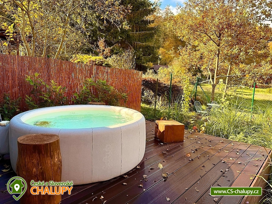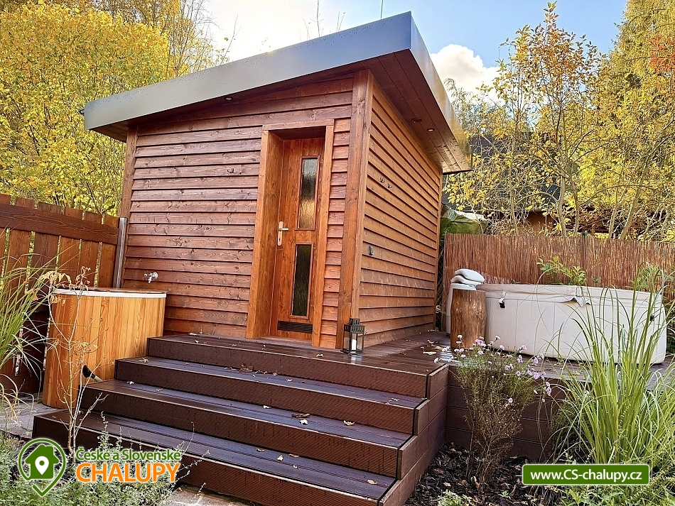 Chata Posázaví s wellness (sauna, vířivka a ochlazovací káď), poloha uprostřed lesa nedaleko Naučné stezky Svatojanské proudy v Petrově u Prahy. Sauna, vířivka, ohniště, grill, krbová kamna, maximální komfort a pohodlí, to vše na vás čeká u mě. Okolí je plné nádherných míst, vyhlídek, stezek, mezi nejznámější patří NS Svatojánské proudy a Posázavská stezka. Zaparkujete přímo před chatou, ale svézt se také můžete přímým vlakem z Prahy, legendární linkou Posázavského Pacifiku a následně už jen hezkou procházkou 3,5 km z Davle Zahořanským údolím nebo z Petrova u Prahy přes horu Ďábel, kde je mimochodem geometrický střed Čech. Po příjemné procházce nebo po těžkém dnu v práci na vás bude čekat vyhřátá sauna a vířivka, po sauně můžete skočit do studené kádě a následně ulehnout na gauč a pozorovat plápolající oheň v kamnech s vínem v ruce. Jednodenní pobyty jsou u mě možné jen ve všední dny. Zvířátka máme rádi, ale není pro ně v chatě vhodný prostor. Chata se skládá ze dvou objektů (Chata + Wellness), které jsou vzdáleny cca 5m od sebe. Chata - přízemí vás nadchne svou útulností, vzdušností a hlavně otevřeným prostorem až do krovu. Je zde plně vybavená kuchyň, dále gauč, který je rozkládací s plnohodnotnou matrací pro jednu dospělou osobu. V patře je manželská postel a můžete dorazit i s těmi nejmenšími, pro ty mám na vyžádání cestovní postýlku. Wellness - má dostatek soukromí, je zde WC, sprcha, umyvadlo a prosklená sauna. Vytápění: Když nebudete mít náladu si naštípat pár třísek dříví na oheň v kamnech, nemusíte dělat nic, elektrické podlahové topení vás nenechá zmrznout. V kuchyni naleznete vše potřebné, aby jste si udělali čaj, výběr čajů je dostatečný. Kávičku si uděláte z Nespresso kávovaru se šlehačem na mléko. K dispozici je lednička a dvou vařič kde si uděláte jídlo. Samozřejmostí je WiFi, ale se signálem je to slabší. Venku je dispozici plynový gril Weber s veškerým nářadím, ohniště kde si opečete buřta a vířivka pro odpočinek. Krom krásné přírody v okolí, najdete v Posázaví plno vyhlídek, např. Třeštibok nebo Klimentova vyhlídka. Jedno z nejznámějších míst je Železniční viadukt Žampach. V přípravě je degustace vín v nedalekém vinařství. Těšíme se na Vás u nás.