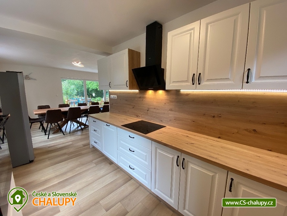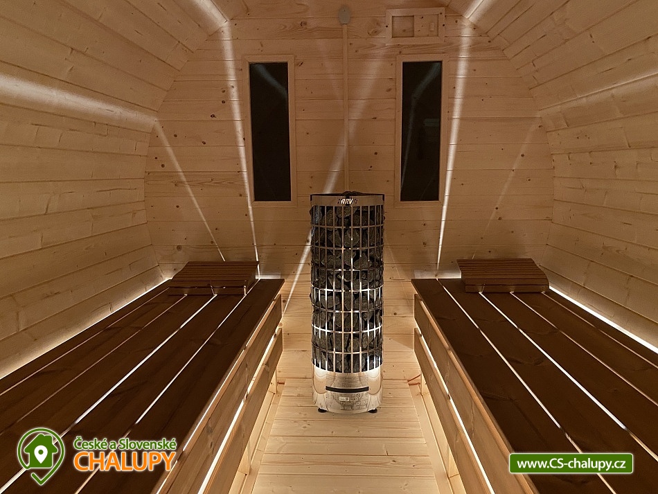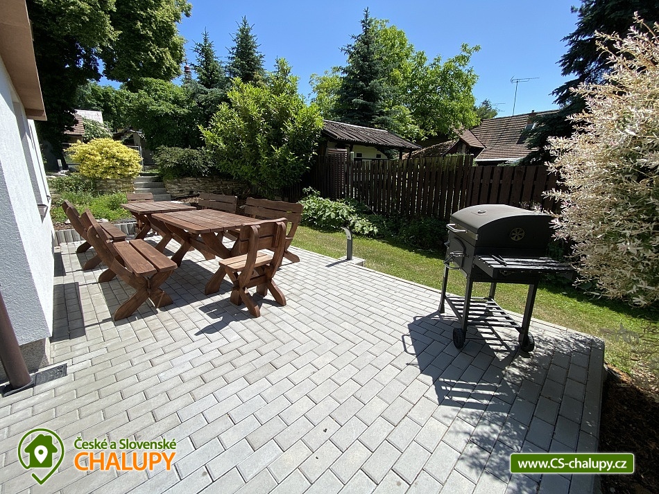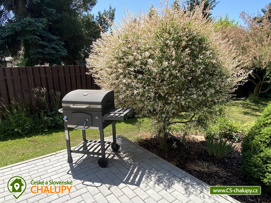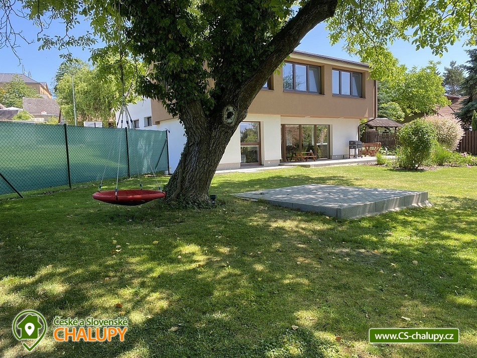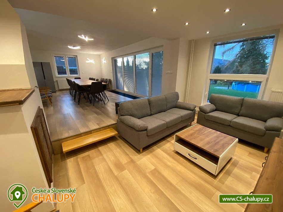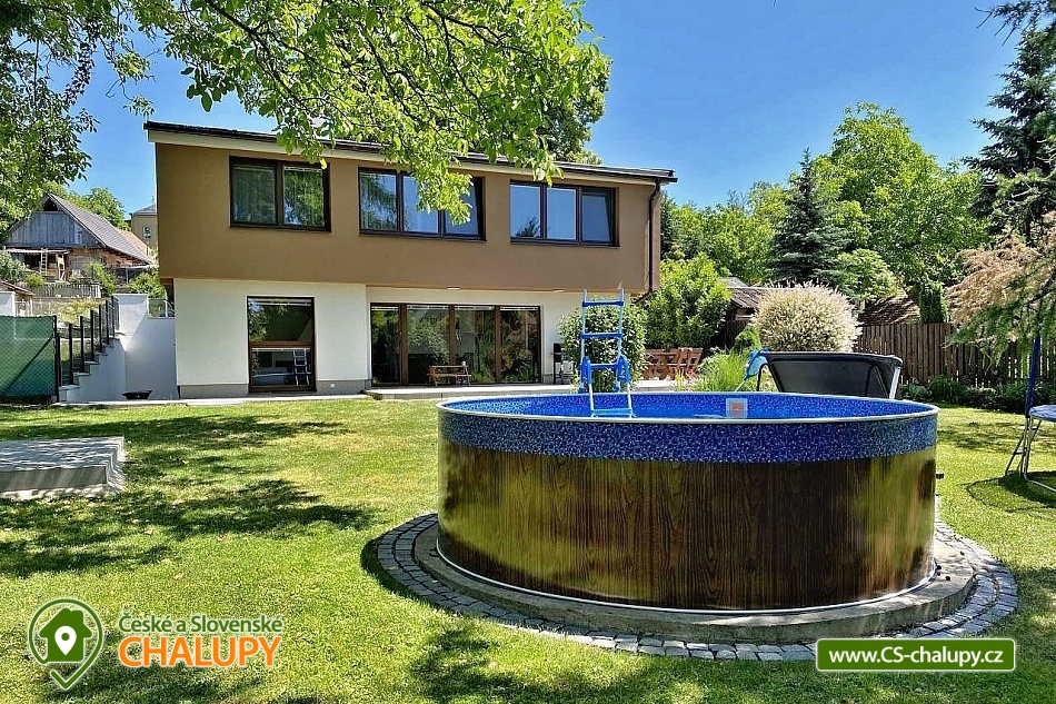 Chata s bazénem a saunou ve Středních Čechách nedaleko Chlumce nad Cidlinou, kde se nachází Fajnpark (zábava pro celou rodinu) a Mirákulum v Milovicích. Kapacita chaty - komfortního rekreačního domu je až 14 osob. POPIS: celkem 3 ložnice, 3 koupelny, společenská místnost a plně vybavená kuchyně. Součástí je zahrada s nadzemním bazénem a prostorná terasa s příjemným posezením. V prvním nadzemním patře se nachází velká moderní kuchyně se všemi důležitými spotřebiči - varná deska s odsavačem par, myčka nádobí, vestavěná trouba, mikrovlnná trouba a americká lednice a kávovar na zrnkovou kávu. Hned vedle kuchyně se nachází společenská místnost se dvěma masivními stoly, u kterých se pohodlně posadí celkem 14 osob. Společně s obývací částí zapuštěnou o dva schody níže toto celé tvoří společenskou část domu. Najdeme zde i prostornou koupelnu s WC a sprchovým koutem typu walk - in. Po vystoupání několika schodů se dostaneme do střední úrovně domu, kde je umístěn hlavní vchod se zádveřím. Pokud vystoupáme po schodech do nejvyššího patra domu, přijdeme do obytné části. Zde se nachází celkem 3 ložnice. Ložnice 1 a 2: 1x dvojlůžko 160x200cm, 1x patrová palanda s lůžky 80x200cm, celková kapacita 4 osoby. Ložnice 3: 1x dvojlůžko 160x200cm, 1x spací podium s celkovou šířkou 280cm, celková kapacita až 6 osob. Každý pokoj je vybaven komodou a šatní skříní se zrcadlem. Na stejném patře najdete i 2 samostatné koupelny se sprchovým koutem, WC a umyvadlovou skříňkou se zrcadlem. Dům pochází z 80.let minulého století s velice originální architektonickou koncepcí a sestává z několika podlaží. Tím není vhodný pro osoby se sníženou pohyblivostí. Vytápění je elektrické s teplovodními radiátory. Oázou klidu se dá nazvat zahrada náležící k domu. Najdete zde terasu s masivním venkovním nábytkem, která je ideální pro venkovní grilování. Pro romantické posezení při kávě slouží stinná terasa pod vzrostlým ořechem, na kterém je zavěšena houpačka. Na zahradě v neposlední řadě najdete nadzemní bazén typu Azuro, ve kterém se můžete zchladit během parních letních měsíců. V zimních měsících pak přijde vhod venkovní sudová sauna s ochlazovací kádí. Pro zabavení dětí je tu v letní sezóně ještě trampolína. Parkování je možné přímo u objektu na vlastním pozemku. Přímo v Dymokurech je dětské hřiště, fotbalové hřiště, lesy a rybníky vhodné pro rybaření. Těšíme se na Vás u nás.
