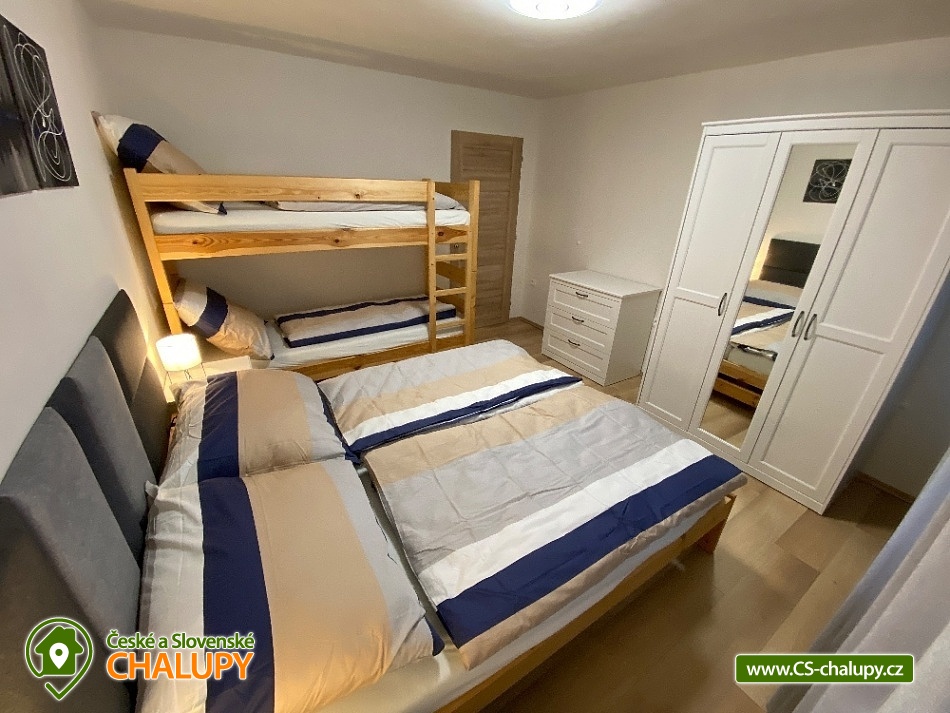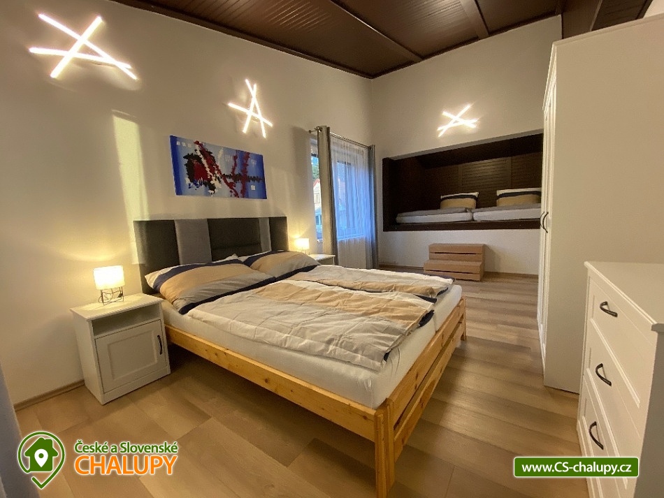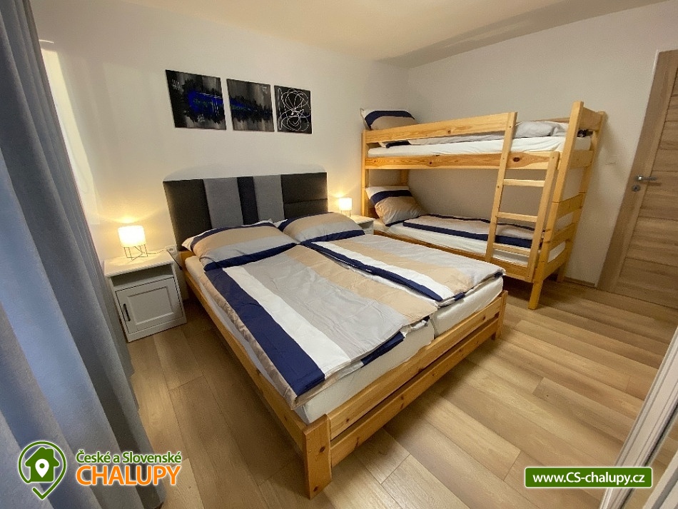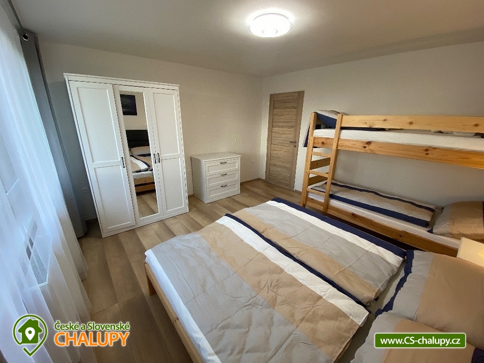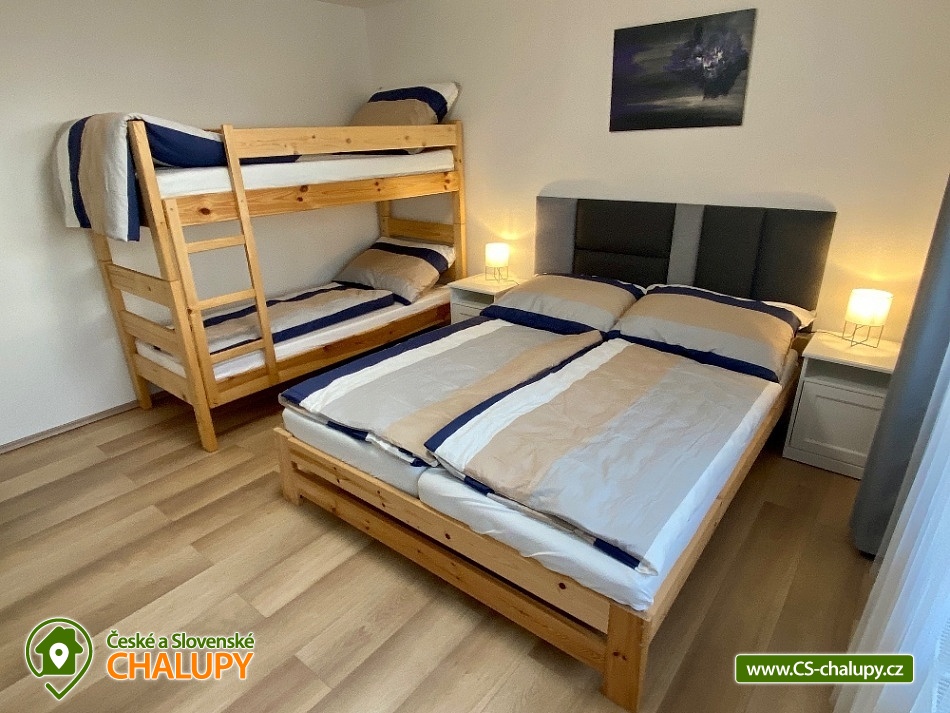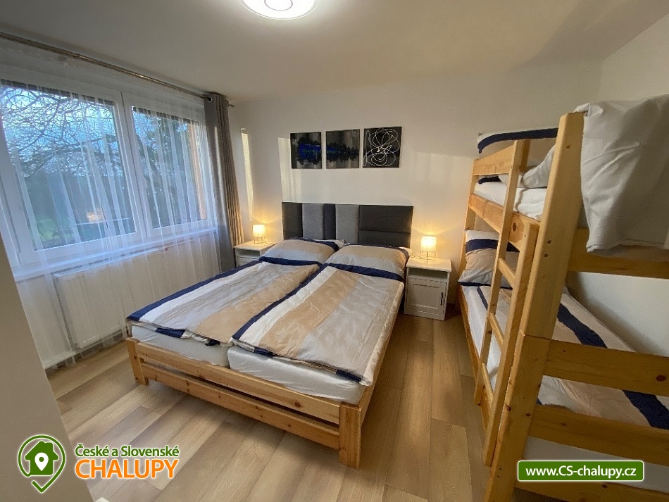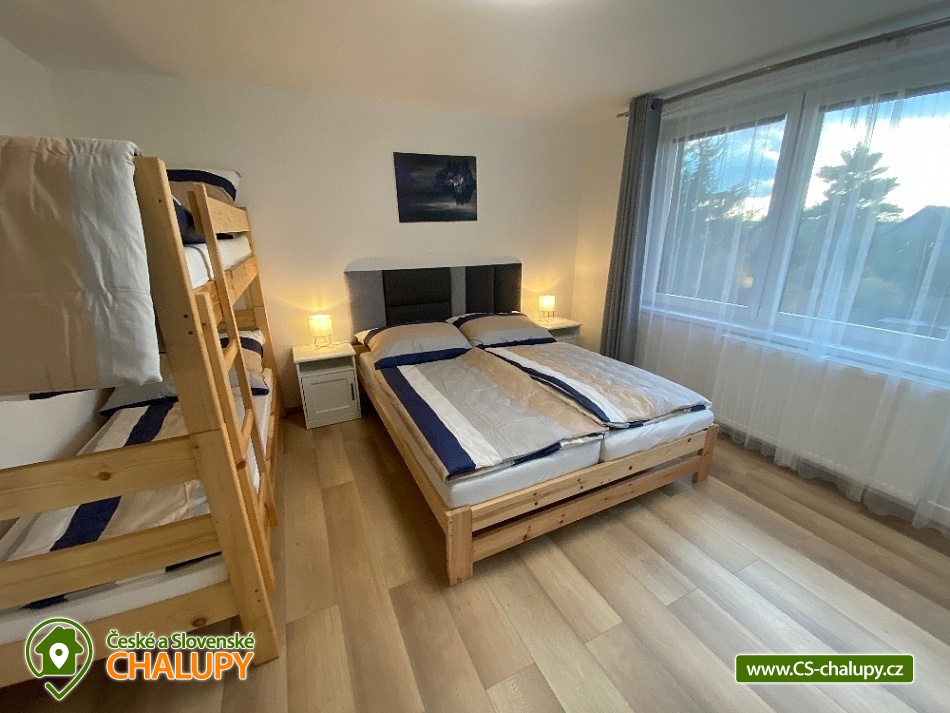 - 3 ložnice: 1x 6, 2x 4