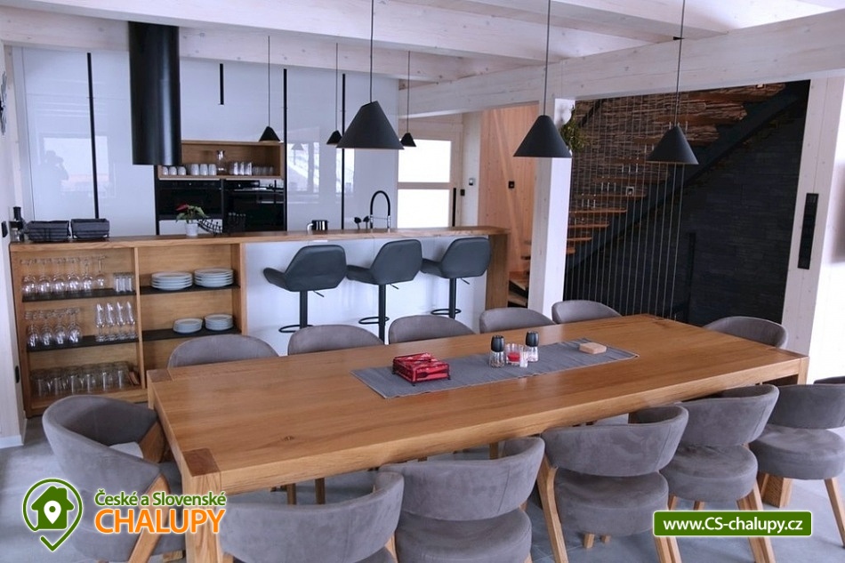 Chata Králický Sněžník s bazénem a saunou leží ve Velké Moravě, která je součástí Dolní Moravy, v okrese Ústí nad Orlicí. Chata leží mezi Jeseníky a Orlickými horami, na úpatí pohoří Králický Sněžník. Její poloha z ní činí oblíbené letní turistické i zimní lyžařské středisko. Chata k pronájmu poskytuje ubytování pro až 14 osob ve 4 ložnicích. V přízemí je velký obývací pokoj s kuchyňským koutem mohutnými kachlovými kamny s plochou na ležení, jídelní kout a šatna s toaletou. Velká kuchyně je moderně vybavena 2 velkými lednicemi, indukční varnou deskou, myčkou nádobí, mikrovlnou troubou s grilem, varnou konvicí a kávovarem. V obývacím pokoji je pohodlná rohová sedačka a velká televize. Ve vstupu do chaty je nástěnný horkovzdušný vysoušeč bot. Vedle hlavního vchodu je venkovní lyžárna, kolárna. V suterénu je pokoj se samostatnou toaletou a sprchou a finská sauna s odpočívárnou. V pokoji je manželské dvoulůžko a patrová postel. Z pokoje i odpočívárny je možné vyjít na venkovní terasu. V prvním patře jsou dva pokoje. Jeden má manželskou postel a patrovou postel, druhý má manželskou postel a jednolůžko. Oba pokoje mají samostatné sprchy a toalety. V podkroví je jeden třílůžkový pokoj s krásným výhledem na Kralický Sněžník. Je zde také koupelna s toaletou. V každém pokoji je TV. Jednotlivé pokoje mají samostatnou regulaci podlahového topení. V celém objektu je k dispozici WiFi. Objekt je vytápěn kachlovými kamny, případně elektrickým podlahovým topením. V létě je u chaty k dispozici 3x6 m bazén se zastřešením, vyhřívaný tepelným čerpadlem. Vedle bazénu je zastřešené posezení s krbem a grilem. Přímo před chatou máme k dispozici vlastní parkoviště pro 5 aut. V zimní sezóně pravděpodobně nutnost použít sněhové řetězy na posledních 25 m u chaty. V okolí velké množství sportovních aktivit a zábavy. Velká bobová dráha, Stezka v oblacích, dětské zábavní parky, nejdelší vysutá lávka na světě, Termály Losiny a celoroční areál Sněžník. Těšíme se na Vás u nás.