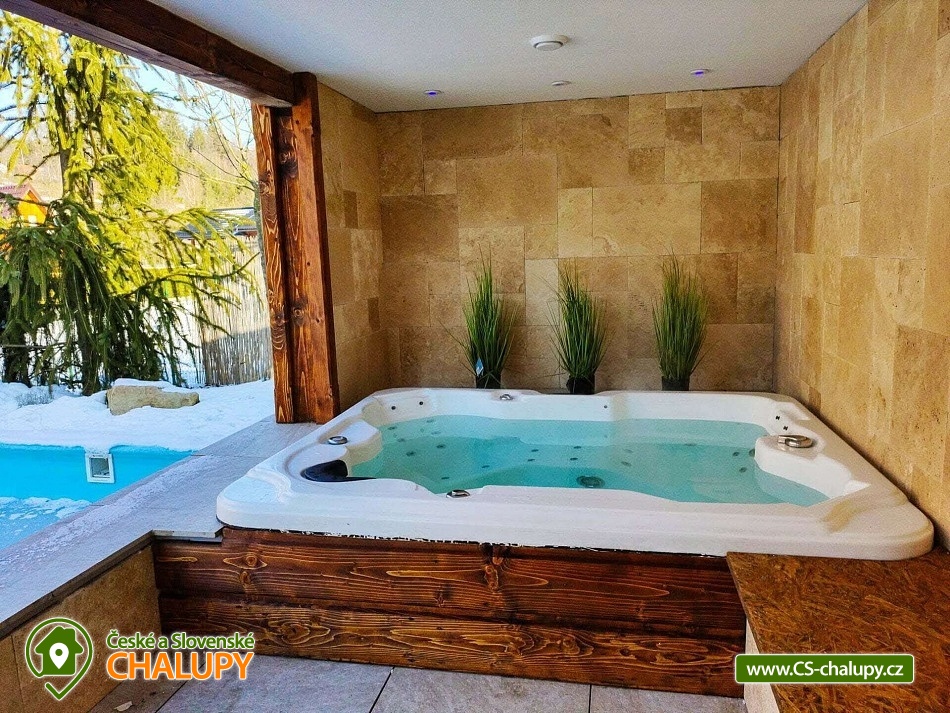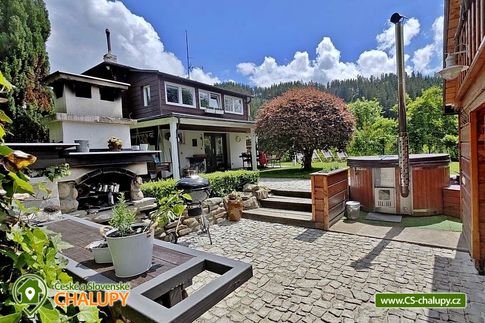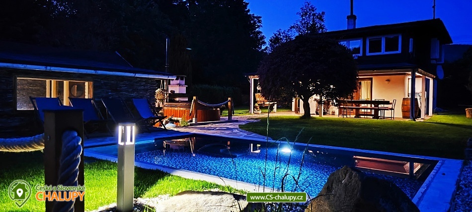 Chata s bazénem a wellness nedaleko Pusteven v Beskydech. K dispozici soukromé SPA pro až 6 osob a venkovní grilování jak na otevřeném krbu, tak na plynovém grilu. Příjemná je možnost relaxace v prostorné, udržované zahradě s vyžitím i pro ty nejmenší. Chata má kapacitu až 8 osob. Ložnice a pokoje: V přízemí objektu je 1 samostatná postel v oddělené mistrnosti. 1 patře objetu se nacházejí 4 ložnice po 2 lůžkách. Sociální zařízení: V přízemí 1 x WC. V 1 NP 1 x WC s sprchovým koutem. Vytápění: Objekt je vytápěný vykonaným krbem řízený mikroprocesory s rozvodem radiátoru a doplněný akumulační nádrží s elektro kotlem. Krb má možnost vytápět přilehlou společenskou budovu dálkovým rozvodem tepla. Stravování: Objekt se nachází v centru rekreační oblasti Beskyd s dostatečně přilehlých restaurací a hospůdek v okruhu 1 km. Voda je pitná pouze z důvodu vyššího obsahu železa je cítit po vejcích, doporučujeme tedy balenou vodu. Rekonstrukce proběhla pouze z přírodních materiálů s použitím starých výrobních postupů s prvky moderní technologie. Doprava, parkování: Parkovaní u objektu na soukromé cestě ve vlastnictví s 4 parkovacíma místy. Chata je vyhledávanou volbou pro lidí, kteří si chtějí příjemně odpočinout, ale také pro sportovně založené lidi, kteří mají rádi turistiku, lyžování, cykloturistiku a sportovní vyžití. Kromě procházek přírodou, projížďky na koni, koupání, rybolovu či lezení, je možnost vybrat si také z husté sítě turistických, in - line stezek a cyklostezek. V okolí doporučujeme: Pustevny (1018 m n. m. ): je sedlo v Moravskoslezských Beskydech nedaleko Radhoště, které patří k obci Prostřední Bečva. Pro Pustevny jsou typické dřevěné stavby postavené v lidovém slohu koncem 19.století na návrh Dušana Jurkoviče. Nachází se zde lyžařské středisko a vede sem sedačková lanovka. Skanzen v Rožnově pod Radhoštem: Valašské muzeum v přírodě je moravský skanzen nacházející se v Rožnově pod Radhoštěm. Jedná se o druhé nejstarší muzeum v přírodě ve střední Evropě (po Polabském národopisném muzeu v Přerově nad Labem). Po celý rok v muzeu probíhají akce inspirované folklorem, lidovými zvyky a tradičními řemesly.
