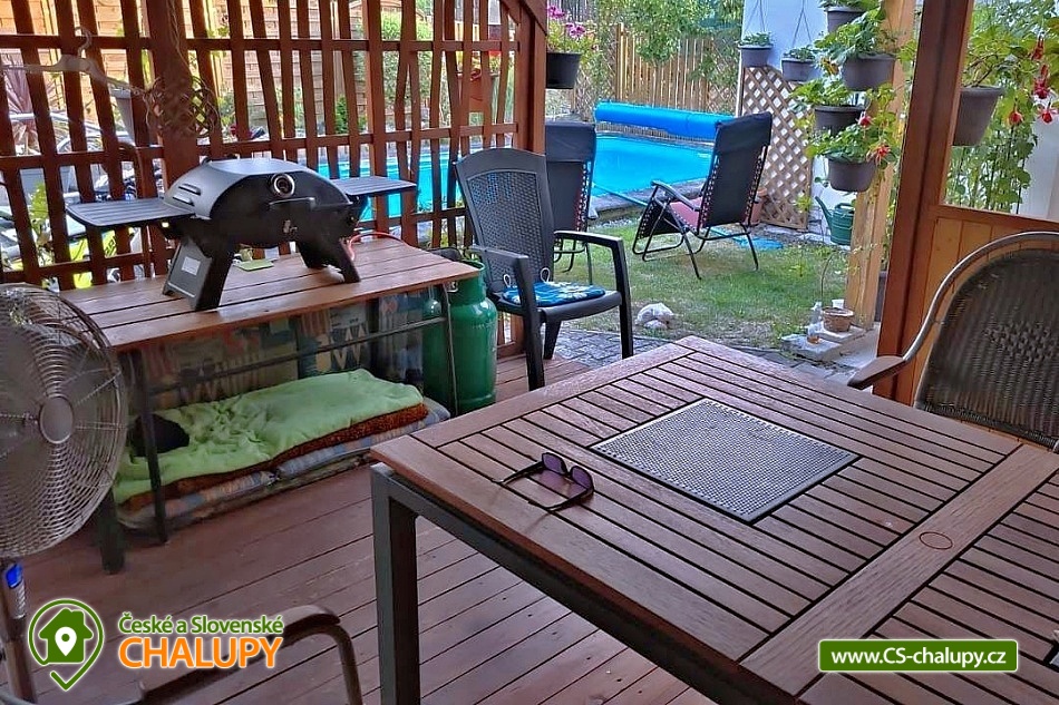 Chata u lesa s bazénem se nachází v obci Dobřív u Rokycan - lokalita u CHKO Brdy a přírodního parku Radeč. V okolí chaty jsou mimo jiné skvělé podmínky pro turistiku i cykloturistiku. Chata poskytuje ubytování pro až 7 osob ve 2 ložnicích. POPIS: Patrová chata - V přízemí se nachází kuchyně, obývací pokoj s rozkládací sedací soupravou na které se pohodlně vyspí 2 osoby (přistýlky) a je zde i přenosná dětská postýlka a TV. Dále je zde malý pokoj sloužící jako šatna kterým se dá projít na zahrádku s pergolou, ve které je gril a malá letní kuchyňská linka (talíře, příbory, skleničky, lednice s mrazákem a přivedena je i voda). V přízemí domu je dále koupelna, pračka i sušička. Kuchyně je plně vybavena (mikrovlnka, myčka, lednice, konvice). Z malé chodbičky se po schodech dostanete do 1. patra, kde je koupelna, jeden průchozí pokoj s rozkládacím gaučem a 2 ložnice. Sociální zařízení: 1 koupelna s vanou a WC, 1 koupelna se sprchovým koutem a WC. Vytápění krbovými kamny s výměníkem nebo elektrickým kotlem. Na zahradě je zapuštěný bazén. Parkování - k objektu patří 2 parkovací místa cca 20 m od chaty (1 auto je možno parkovat přímo u chaty). OKOLÍ: Výlety do CHKO Brdy. Hrady a zámky: Zbiroh 28 km, hrad Libštejn 28 km, zřícenina hradu Babská skála 2,5 km, zámek Mirošov 4 km, zámek Kozel 17 km, zámek a zřícenina letohrádku Kamýk v Oseku. V obci je vodní hamr, tenisové kurty a na své si přijdou i houbaři. Ke koupání je možno využít bazén přímo na zahradě, náročnější si mohou zajet do aquaparku v Rokycanech. Při nepříznivém počasí jsou k dispozici stolní hry i šipky pod pergolou. Těšíme se na Vás u nás. Ubytování je k dispozici od června do konce srpna, ale je možné udělat i výjimku.