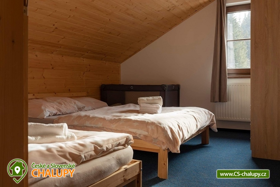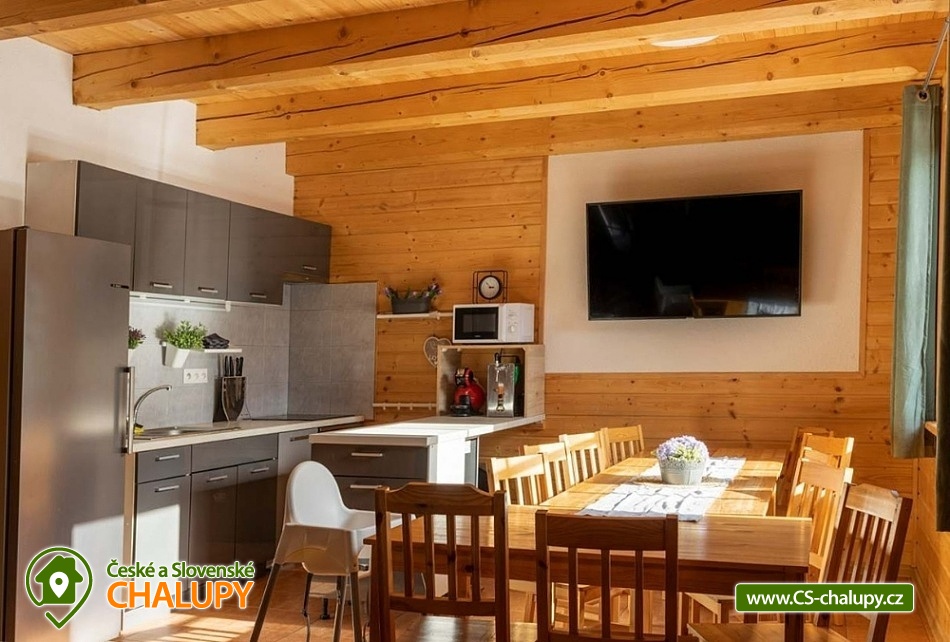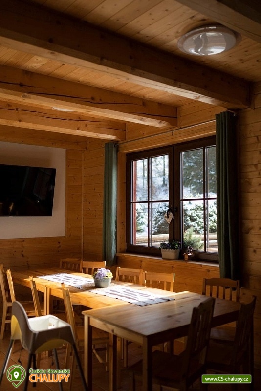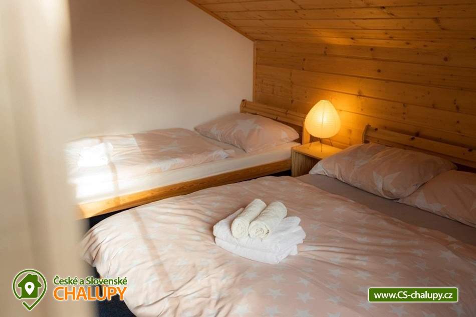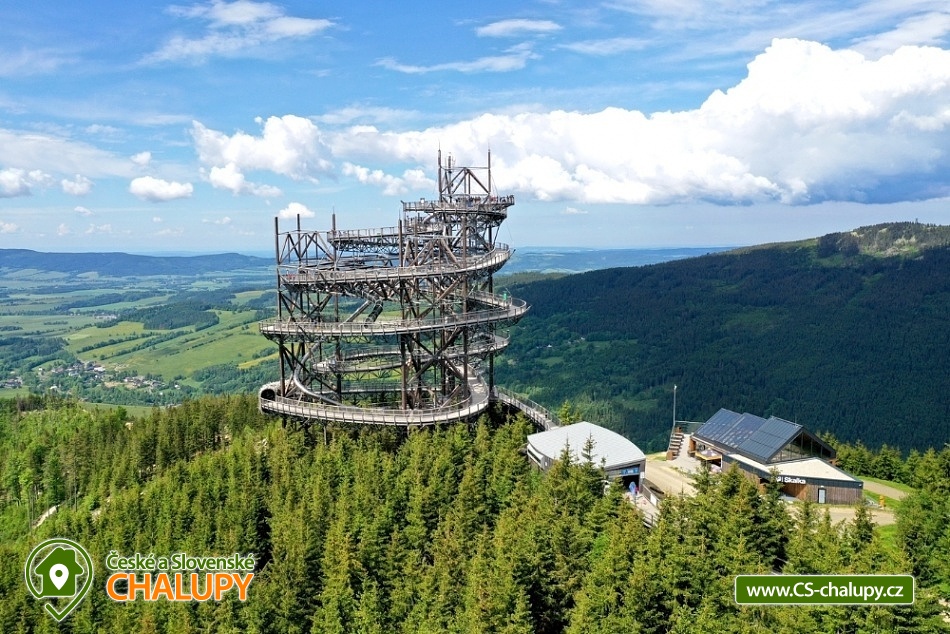 Chata s bazénem a vířivkou (léto) nedaleko střediska Dolní Morava a areálu Buková hora. Chata má 6 ložnic s kapacitou až 21 osob, terasu, v létě vířivku a bazén na zahradě, trampolínu a gril. Děti a domácí mazlíčci vítáni. Chata je v krásné přírodě na pomezí Orlických hor a Jeseníků. Společenská místnost je s krbem a s plně vybaveným kuchyňským koutem, velká LCD televize, WIFI, podlahové vytápění. Ze společenské místnosti vedou francouzské dveře na terasu. Terasa je na zimní období vybavena kamny na dřevo a vyhřívačem. K dispozici zahradní nábytek, gril na dřevěné uhlí. V přízemí dvě ložnice, každá s dvoulůžkem a patrovou postelí pro děti. V prvním patře jsou čtyři ložnice, tři se třemi lůžky a jedno čtyř lůžko. Povlečení postelí je v ceně ubytováni. Chata je s plně vybavenou kuchyňskou linkou, kuchyňským nádobím a dalším servisem, sklokeramickou varnou deskou, myčkou, lednicí, mrazákem, mikrovlnkou, varnou konvicí, kávovar Nesspreso, Tchibo, na terase je druhá lednice. V dojezdové vzdálenosti jsou obchody s potravinami a smíšeným zbožím i restaurace. V přízemí je samostatné WC s předsíňkou, kompletně vybaveno i pro nejmenší a dále koupelna se sprchou. V prvním patře je koupelna s vanou a samostatné WC. Vytápění je kombinací elektrického kotle a krbových kamen s výměníkem, která jsou v obývací části a jsou napojena na radiátory v pokojích. Parkování u chaty, příjezd je udržovaný i v plné zimní sezoně. Kolem chaty je jak dlážděná plocha, tak travnatá, k dispozici je velké hřiště pro volejbal nebo nohejbal. V okolí chaty krásná příroda, lesy a spoustu cyklistických a vycházkových tras. V dojezdové vzdálenosti je velký areál Dolní Morava s dominantní Stezkou v oblacích, unikátní visutý most Sky Bridge, ale třeba i Mamutíkův vodní park. Výborné středisko Buková Hora s propojením s Čenkovicemi je od chalupy 5 minut. Ale za návštěvu stojí krásná přehrada Pastviny, technologické dílo přečerpávací nádrže Dlouhé stráně, nebo i termální lázně Velké Losiny. Možnost zapůjčení výčepního zařízení.