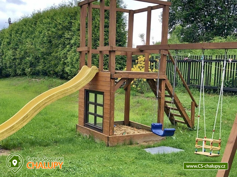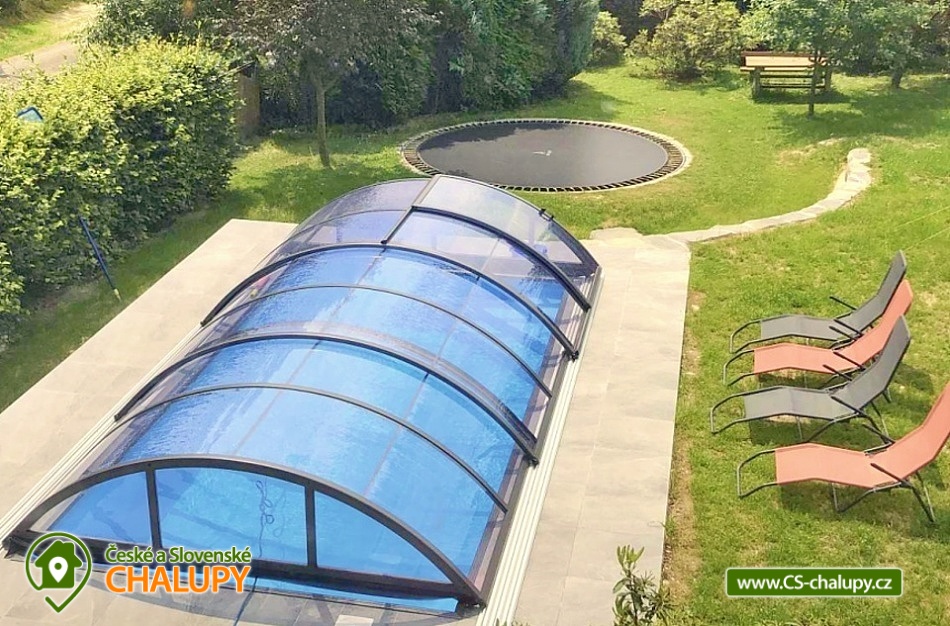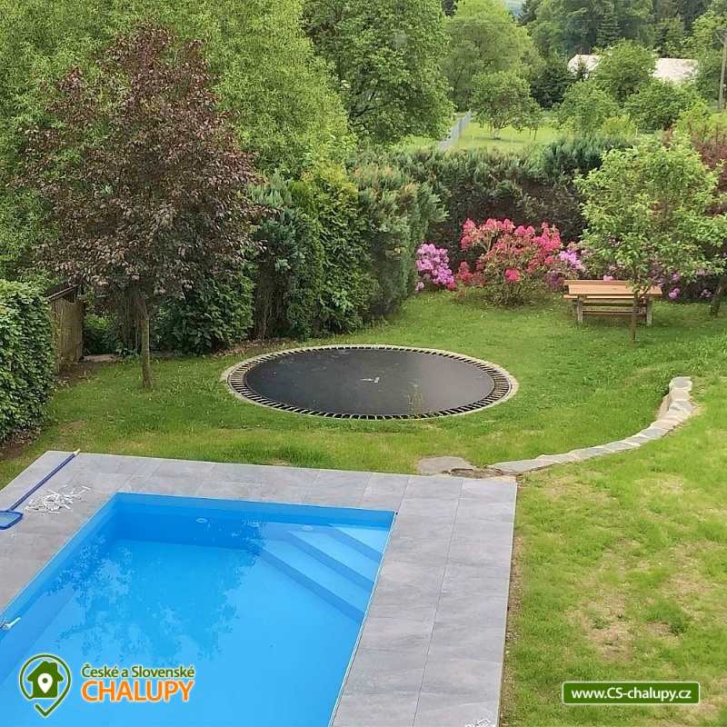 Chata s bazénem - Hrubý Jeseník. Rodinná chata s finskou saunou a bazénem v klidné oblasti předhůří Hrubého Jeseníku - na dosah jsou turisticky oblíbená Karlova Studánka, Praděd, Niva řeky Moravice, údolí Bílé Opavy či hrad Sovinec. Chata je ideální pro rodiny s dětmi, pro skupiny přátel i majitele zvířecích miláčků. K dispozici je ubytování pro až 12 osob ve 4 ložnicích. Po dohodě možná přistýlka za poplatek. V přízemí se nachází jedna "modrá" ložnice (1x dvojlůžko a 1x jednolůžko). V patře se nachází 3 ložnice: 3 – lůžková "červená" ložnice (1x dvojlůžko a 1x jednolůžko), průchozí "růžová" 2 - lůžková ložnice (1x dvojlůžko), přes ní vstup do 4 – lůžkové ložnice „dřevěné“ (1x dvojlůžko a 2x jednolůžko). Postele jsou vždy čistě povlečené, ložní prádlo je k dispozici. Přístup do patra je řešený strmým schodištěm, které má zábradlí a kobercové nášlapy proti nebezpečí podklouznutí. Schody jsou nevhodné pro osoby pohybově omezené. V přízemí pro společné chvíle slouží společenská místnost s krbem, posezením a satelitní televizí. K dispozici je kuchyň vybavená dvěma lednicemi s mrazáčkem, kávovarem, el. varnou deskou, troubou, rychlovarnou konvicí, myčkou nádobí, kuchařským vybavením a čistícími prostředky. Pro děti je připravený dětský koutek s hračkami, rozkládací dětská postýlka, společenské hry a stolní fotbálek. V celém objektu je k dispozici WIFI připojení na internet. V přízemí se nachází také vstupní veranda. V suterénu lze relaxovat ve finské sauně se sprchou nebo si užívat volný čas v herně se stolním fotbálkem pro děti i dospělé. Sociální zařízení zahrnuje dvě přízemní koupelny se sprchovým koutem, umyvadlem a WC. Další sprchový kout v suterénu vedle sauny. K dispozici je také pračka, žehlička a sušák na prádlo. Vytápění je řešeno elektrickými přímotopnými tělesy v každé místnosti a také krbovými kamny s rozvodem tepla do ostatních prostor chaty. Zahrada náležející k chatě je oplocena, což ocení zejména majitelé pejsků a rodiče malých dětí. Na zahradě je několik prosluněných i zastíněných posezení. K dispozici je zastřešená pergola s venkovním grilem nebo posezení u ohniště. Zejména v létě je na zahradě spousta možností pro aktivní odpočinek - venkovní zastřešený bazén, badmintonové hřiště, ruské kuželky, kladina a prostor pro fotbal. Malí návštěvníci se mohou těšit na dětské hřiště s houpačkami, pískoviště, trampolínu, několik houpaček a venkovní hračky. Parkovat lze přímo u objektu. U chaty je v blízkosti les, kde si lze nasbírat maliny a houby. Den vám zpříjemňuje klokotající malý přítok řeky Moravice přímo před chatou, kde je slyšet klapání malého vodního mlýnku, u kterého se zabydlel vodník "Pepa". V okolí chaty možnost turistiky, cykloturistiky, koupání, houbaření, lyžování a běžkování. V blízkosti se také nachází sportovní hřiště s umělým povrchem, kde je možné zahrát tenis a nohejbal a pro děti jsou zde různé prolézačky a houpačky. Nedaleko lze navštívit také jízdárnu v Horním Městě nebo rybářství v Tylově. Ve Velké Štáhli najdete minigolf směrem na Břidličnou u splavu. Mezi možnosti koupání patří např.: Bruntál - Wellness centrum , bazén Břidličná, Rýmařov - Aquacentrum Slunce, Edrovický rybník, koupaliště Bruntál, rybník Andělská Hora, Rybník Tvrdkov, Bazén Karlova Studánka, vodní nádrž Slezská Harta, vodní nádrž Oskava, rybník Jaroslav, atd. K okolním výletům láká Stezka na Velkou Štáhli, údolí Bílé Opavy, Rešovské vodopády, Karlova Studánka s léčivými prameny, nejvyšší hora Jeseníků Praděd, Pradědova galerie v Jiříkově, či hrad Sovinec a hned vedle něho arboretum Paseka Makču Pikču. Děti ocení historický vláček, který jezdí mezi Malou Morávkou a Bruntálem. Těšíme se na Vás u nás.