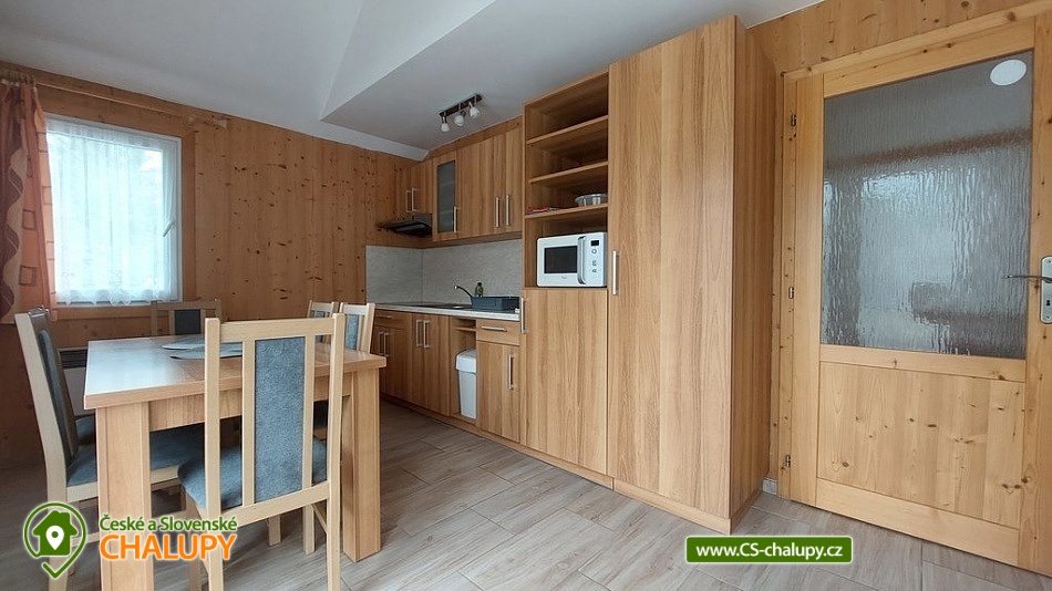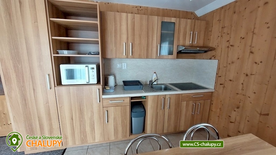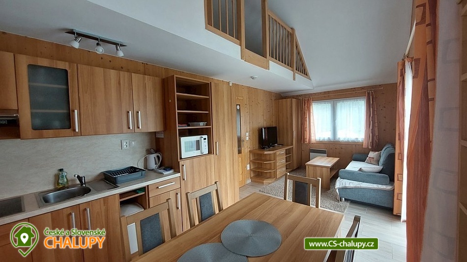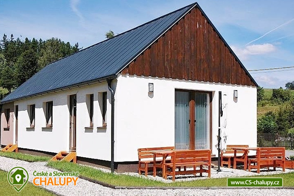 Apartmánová Chata s venkovním bazénem se nachází nedaleko Karlova pod Pradědem, na okraji obce Dolní Moravice v části Horní Moravice, která je obklopena nedotčenou přírodou chráněné krajinné oblasti Jeseníků. Blízké okolí nabízí spoustu možností pro odpočinek, ale i aktivní dovolenou ve všech ročních období. Milovníci pěší turistiky rádi navštíví Karlovu Studánku s léčivými prameny a celoročním termálním bazénem. Cyklisti ocení nedaleký Express Bikepark Karlov. V zimním období je výhodou těsná blízkost lyžařských středisek Karlov, Malá Morávka a Dolní Moravice a mnoha běžkařských tras, ze kterých je možné nastoupit na hlavní běžecké trasy po Jesenické magistrále. Apartmány u Potoka nabízí ubytování pro až 24 osob ve třech samostatně pronajímaných osmilůžkových apartmánech, celkem je k dispozici 14 pevných lůžek a 10 přistýlek. Všechny apartmány mají vlastní kuchyň, sociální zařízení a venkovní posezení. První dva apartmány umístěné ve společné budově mají k dispozici dvoulůžkovou ložnici s 1x dvoulůžkem, třílůžkovou ložnici s 1x patrovou postelí a 1x jednolůžkem, 1x přistýlku (rozkládací pohovka) v obývacím pokoji a 2x přistýlky (matrace) v podkroví. Ve třetím apartmánu nacházejícím se v samostatné budově jsou k dispozici dvě dvoulůžkové ložnice s 1x dvoulůžkem, 2x přistýlky v obývacím pokoji (rozkládací pohovka) a 2x přistýlky (matrace) v podkroví. Zapůjčit si lze dvě dětské postýlky a dětskou jídelní židličku. Všechny tři apartmány jsou vybavené a dispozičně řešené stejně. V přízemí jsou umístěné ložnice, obývací pokoj, kuchyň a koupelna. Z obývacího pokoje vedou schůdky do podkroví s přistýlkami. Součástí obývacího pokoje je sedací souprava, TV, úložné prostory, jídelní stůl a plně vybavená kuchyň (rychlovarná konvice, lednice, mikrovlnná trouba, sklokeramická deska, utěrky, jar a veškeré nádobí). K dispozici je také povlečení a ručníky. Sociální zařízení v každém apartmánu zahrnuje jednu koupelnu se sprchovým koutem, umyvadlem a toaletou. Vytápění je řešeno elektrickými přímotopy, které jsou v každé místnosti apartmánu. V celém objektu je k dispozici WIFI připojení na internet. Z obývacího pokoje každého apartmánu je přímý vstup na venkovní terasu s posezením a slunečníkem. Zapůjčit si lze gril na dřevěné uhlí. Pro všechny ubytované je také k dispozici posezení u ohniště umístěného u Moravického potoka nebo v zastřešeném altánu. V teplém počasí každý ocení zastřešený bazén. Malí návštěvníci se mohou těšit na trampolínu, pískoviště a skluzavku. Parkovat lze přímo u objektu. V okolí apartmánů možnost turistiky, cykloturistiky, koupání, houbaření, běžkování a lyžování. V blízkosti je také minigolf. Mezi možnosti koupání patří např.: Bruntál - Wellness centrum , Rýmařov - Aquacentrum Slunce, Edrovický rybník, bazén Břidličná, Bazén Karlova Studánka, koupaliště Bruntál, rybník Andělská Hora, Rybník Tvrdkov, vodní nádrž Oskava, Vrbno pod Pradědem - rybníky, koupaliště Libina, vodní nádrž Slezská Harta, atd. V zimním období jsou k dispozici lyžařská střediska: Kopřivná - Malá Morávka, Avalanche, Čertova hora, Nová ves u Rýmařova, Myšák - Karlov pod Pradědem, Karlov, Pawlin - Karlov pod Pradědem a další. K výletům v okolí lákají Rešovské vodopády, stezka podél Bílé Opavy, bobová dráha Karlov, Praděd, Rejvíz a Mechová jezírka, hrad Sovinec, Pradědova galerie nebo město Šumperk. Těšíme se na Vás u nás.