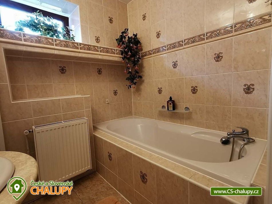 Chata s venkovním bazénem u cyklostezky, která Vás zavede do České Lípy nebo na opačnou stranu k národní přírodní památce Panská skála. Chata nabízí pohodovou dovolenou plnou zážitků, nachází se takřka na samotě v obci Volfartice, 8 km od města Česká Lípa. Kromě krásné přírody je zde i spousta turistických a cyklotras, které vám umožní poznat nádherná místa v okolí. Chata k pronájmu poskytuje ubytování pro až 5 osob ve 2 ložnicích. Chata má 2 podlaží. V přízemí se nachází plně vybavená kuchyně s jídelním stolem - kachlová kamna, mikrovlnná trouba, trouba, rychlovarná konvice, topinkovač, toustovač, kávovar Dolge Gusto, dvojplotýnka, lednice s mražáčkem, mixér, jídelní kout. V patře je obývací pokoj s TV, rozkládacím gaučem a krbem. Ložnice s manželskou postelí a rozkládacím křeslem. Do poschodí vedou mlynářské schody - příkřejší. Připojení wifi internet. Sociální zařízení: V přízemí je koupelna se sprchovým koutem i vanou, pračkou, fénem a elektrickým žebříkem. WC je samostatně. Vytápění je zajištěno kamny na tuhá paliva - kuchyně, krbem - obývací pokoj, el. topením v podlaze - obývací pokoj a ložnice a elektrickým žebříkem - koupelna. K bazénu nafukovací lehátko, rohože na ležení, velké osušky na lehátka a ručníky k bazénu. Vnitřní dvorek je chráněn za všech čtyř stran. Dominantou je velký květinový záhon. Je tu příjemné posezení jak na ranní snídani, obídek či večeři, k dispozici je gril. Parkování přímo u objektu pro 2 auta. V těsné blízkosti chaty je ranč s koňmi, ovcemi, krávou a psy. Po domluvě lze udělat prohlídku ranče, vyzkoušet si práci na ranči, ukázat práci pasteveckého psa s ovcemi, povozit se na jízdárně na hodných a vychovaných koních. Také lze domluvit vyjížďku po okolí. Na své si u nás přijdou i náruživí rybáři - na ranči jsou 3 rybníky. Těšíme se na Vás u nás.