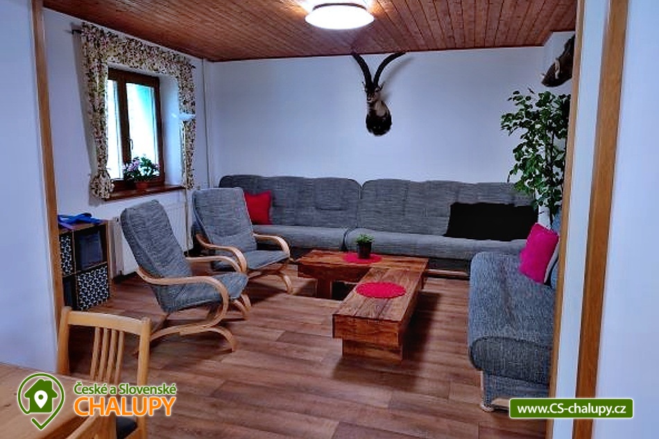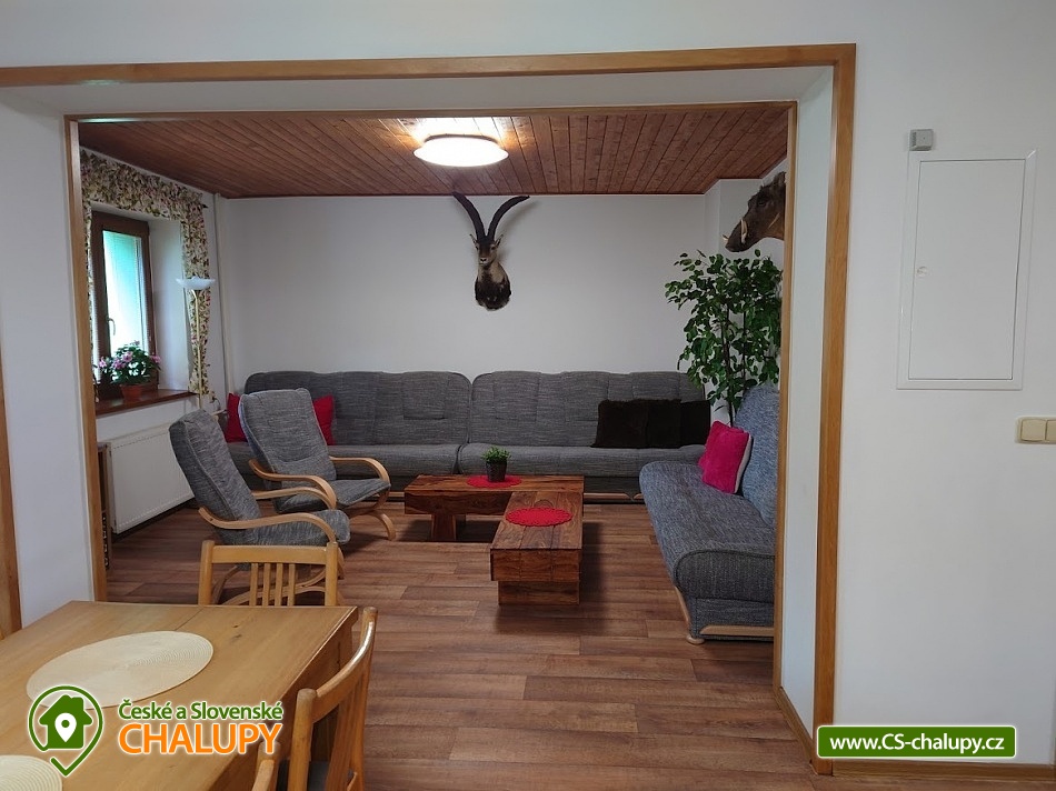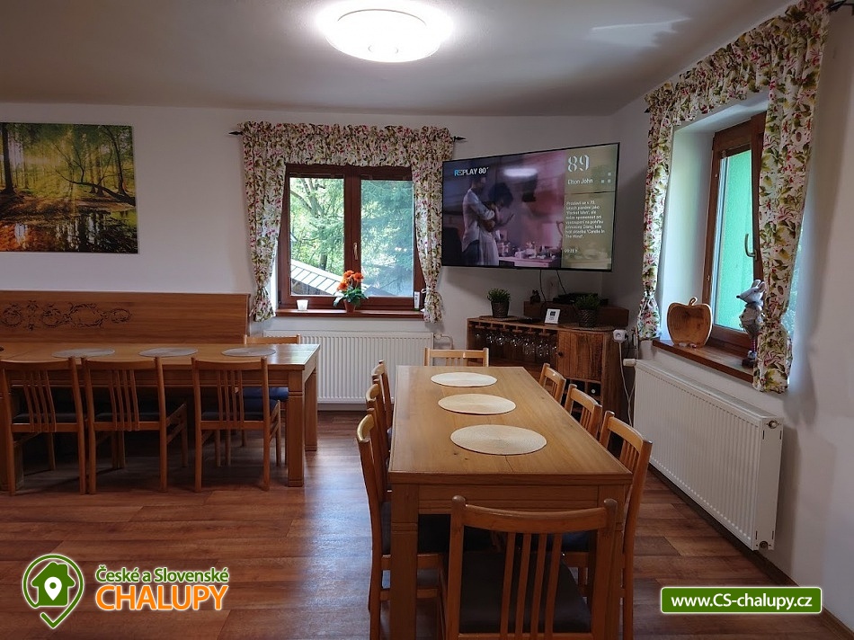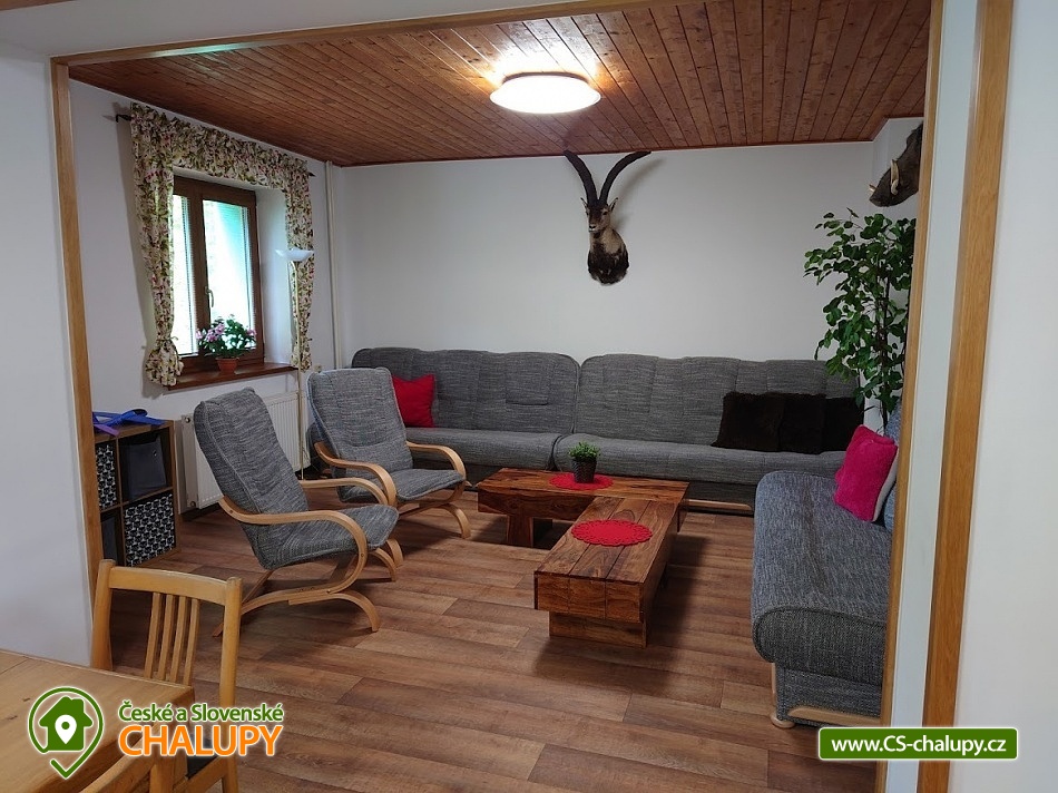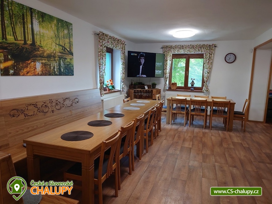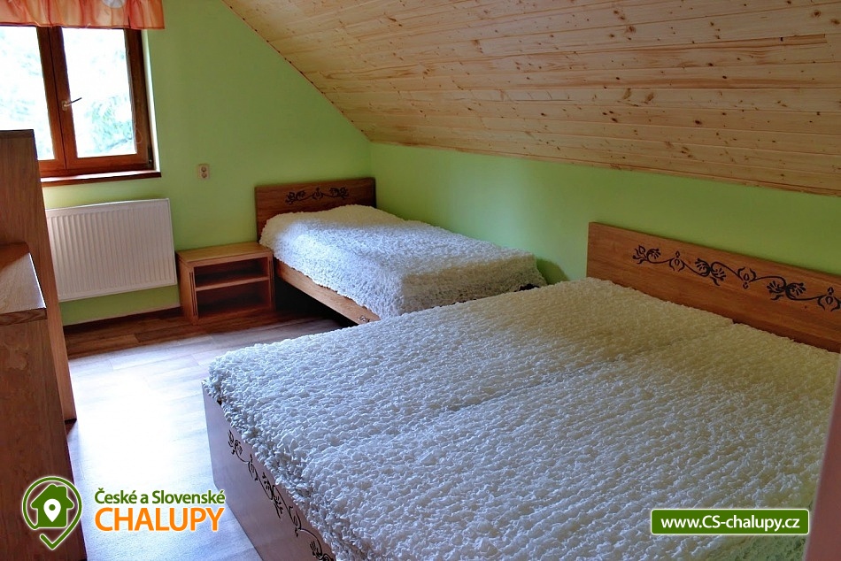 Chata Pod Bukovinami s bazénem, se saunou a hřištěm s umělým povrchem leží 12 km od Rožnova pod Radhoštěm na Horní Bečvě v místní části Pod Bukovinami. Chata se nachází na částečně oploceném pozemku o velikosti 5000 m2 na polosamotě s výhledem na pohoří a lesy. Chata k pronajmutí poskytuje ubytování pro až 26 osob v 7 ložnicích. POPIS: Celková ubytovací kapacita je 23 osob / 6 pokojů. Po dohodě možno navýšit kapacitu až na 26 osob poskytnutím VIP pokoje s vlastní koupelnou a WC. Tento VIP pokoj navíc však není zahrnut v celkové ceně za objekt v ceníku. V přízemí 1 šestilůžkový pokoj pokoj (tři patrové postele) . Společenská místnost, krbová kamna, toalety, sprchy (muži - ženy). Kuchyň - kuchyňská linka, elektrický a plynový sporák, 2xtrouba, nádobí, 2x lednice s mrazákem 2x mikrovlnná trouba a varná konvice, mycí prostředky, utěrky na nádobí, malé ručníky, toaletní papír a ložní prádlo jsou součástí objektu. Součástí vybavení kuchyně je i myčka nádobí (tablety do myčky je třeba použít vlastní). TV, satelit, wifi internet. V podkroví se nachází 5 pokojů z toho 3 TŘÍLŮŽKOVÉ (1x dvoulůžko a 1x jednolůžko), 1 ČTYŘLŮŽKOVÝ (1x dvoulůžko a 1x rozkládací pohovka), 1 TŘÍLŮŽKOVÝ (pro 3 dospělé osoby nebo pro 2 dospělé osoby a dvě děti). V podkroví se nachází ještě VIP pokoj pro 3 osoby s koupelnou a WC. Dále malé posezení, toalety, sprchy, pro malé děti 2x cestovní postýlka + povlečení s peřinkami, 2x jídelní židle, vanička a nočník. Další VYBAVENÍ objektu: venkovní bazén s filtrací, tepelným čerpadlem a slanou vodou (8m průměr), hloubka 1,4m. Sauna pro 10 osob. Sportovní hřiště s umělou trávou (22x14m). Ohniště s posezením, gril na plyn, možnost zapůjčení pípy s chlazením. Kuželky, stolní tenis, minigolfové hřiště (9 jamek). V okolí skvělé podmínky pro turistiku, cykloturistiku a houbaření. V okolí doporučujeme: Pustevny, Radhošť, přehrada Horní Bečva, Vsetínské vrchy Soláň a Jezerné. Těšíme se na Vás u nás.