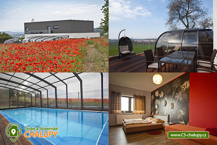 Chata s bazénem nabízí nádherné výhledy na přehradu Rozkoš a hřeben Krkonoš, poloha nedaleko Ratibořic (zámek a Babiččino údolí). K návštěvě tak lákají Ratibořice s Babiččiným údolím, náchodský i opočenský zámek, barokní Kuks, Orlické hory, či skalní města na Broumovsku - Adršpach. Okolí je protkáno cyklistickými i turistickými trasami. Hosté mají k dispozici zastřešený bazén se slanou vodou, která má příznivý vliv na pokožku, zahradu s grilem, zvlášť si lze objednat vířivku a saunu. Kapacita ubytování je až 10 osob ve 3 ložnicích: ložnice Londýn (4 lůžka), Marilyn (3 lůžka) a ložnice Lila (3 lůžka). V každém pokoji je satelitní TV s mnoha programy. Hosté mají k dispozici kuchyňku, která je vybavena varnou deskou, lednicí, rychlovarnou konvicí, překapávačem kávy, mikrovlnkou, myčkou a nádobím, z kuchyně se vychází na malou terásku s posezením. Další terasa s nábytkem je u bazénu. Ke každému ze tří pokojů náleží samostatná koupelna se sprchovým koutem, umyvadlem, wc, toaletními potřebami a ručníky. Přímo před objektem je k dispozici 5 parkovacích míst. Nové Město nad Metují vás očaruje svým umístěním na skalním ostrohu, historickým náměstím a pohádkovým zámkem v kouzelné zahradě. Úchvatné okolí láká do lesů, hor i k vodě. Upravené a dobře značené cyklostezky vás dovedou Pekelským údolím přes Náchod a Jiráskův Hronov až na Broumovsko nebo druhým směrem do Orlických hor. V dosahu je Jiráskova chata na Dobrošově, s nedalekými bunkry, sjezdovky v Olešnici či na velké Deštné, pevnostní město Josefov, Ratibořice s Babiččiným údolím, zámky v Náchodě či Opočně, zrekonstruovaný barokní hospital v Kuksu a mnohé další lákavé cíle. Rádi vám s plánováním výletů pomůžeme. Blízké lesy jsou rájem houbařů a břehy Rozkoše zase rájem rybářů. Těšíme se na Vás u nás.