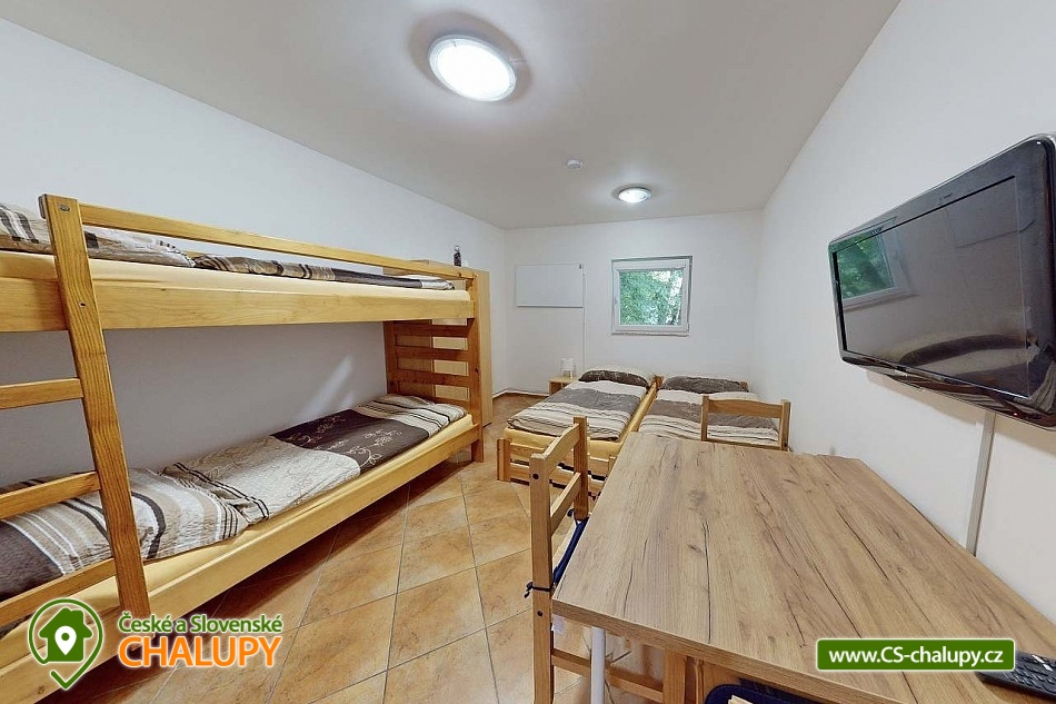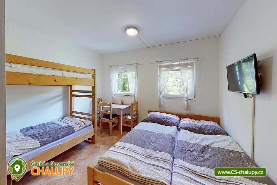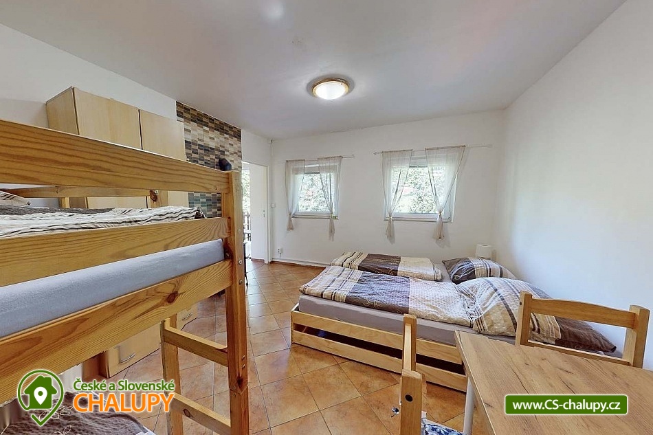 Chata s venkovním bazénem se nachází v krásné bítovské zátoce u přehrady Vranov v malebné přírodě jižní Moravy. Blízká přehrada (50 m) nabízí spoustu vodních radovánek - koupání, rybaření, surfování, šlapadla, lodičky a nejen to. K nedalekým výletům láká hrad Bítov a zřícenina hradu Cornštejn nebo zámek Vranov nad Dyjí. Chata poskytuje ubytování pro až 12 osob ve třech čtyřlůžkových ložnicích. Všechny ložnice jsou vybavené manželskou postelí, patrovou postelí, TV s YouTube, šatní skříní, jídelním stolem a třemi židlemi. Součástí dvou ložnic jsou krbová kamna. Dětská postýlka a židlička jsou k zapůjčení. Chata má k dispozici plně vybavenou kuchyň (indukční deska, lednice, mikrovlnná trouba s grilem, nádobí, toustovač, topinkovač a kávovar na mletou kávu). Sociální zařízení zahrnuje jednu koupelnu se sprchovým koutem a WC. Dále je jedno WC umístěné venku. Vytápění je řešeno dvěma krbovými kamny a elektrickými přímotopy. Pro případné ušetření elektřiny je vhodné mít s sebou vlastní dřevěné brikety. V celém objektu je k dispozici WIFI připojení na internet. Společné chvíle si lze užívat na prostorné zastřešené terase s posezením, které lze rozšířit. K dispozici je betonový zahradní gril. V letních měsících potěší venkovní kruhový bazén s lehátky a solární sprcha. Děti ocení trampolínu, pískoviště, dětský domeček a houpačky. Zahrát si lze ruské kuželky. Parkovat lze přímo u objektu. V okolí chaty možnost turistiky, cykloturistiky, koupání, rybaření a houbaření. Mezi možnosti koupání patří např.: Vranovská přehrada, Bítovská zátoka, Vodní park - Camp Bítov, koupaliště Nimpšov, Biotop Jemnice, atd. K dalším výletům v okolí láká zámek Jevišovice, Jevišovická a Výrovická jezera. Národní park Podyjí, premonstrátský klášter v Louce, rotunda sv. Kateřiny, Lednicko - valtický areál (UNESCO) nebo historické centrum města Znojmo, Moravské Budějovice nebo Raabs a. d. Thaya. Těšíme se na Vás u nás.