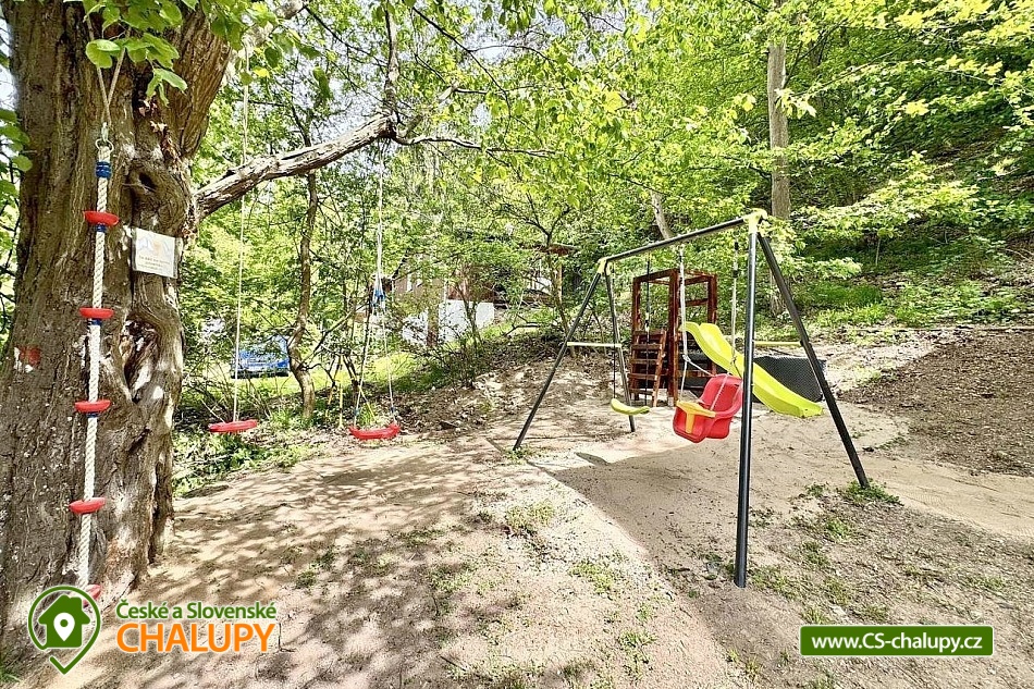 „Chata s venkovním bazénem - u přehrady Vranov - Dětské hřiště“