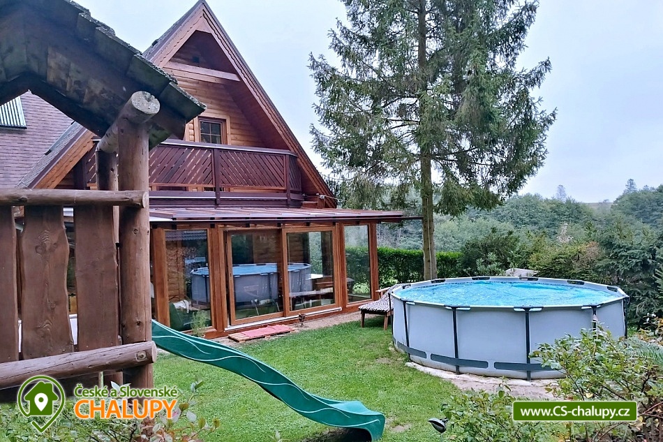 Chata s bazénem v Národním parku Slovenský ráj nedaleko Sokolí doliny. Chata má kapacitu až 8 osob ve 3 ložnicích. Bazén je v provozu přes letní sezónu na zahradě plno mnoho dalších aktivit. POPIS:. V přízemí chaty je společenská místnost, která je propojena s vybavenou kuchyni s televizí a satelitem. Také samostatná toaleta. Na patře jsou Vám k dispozici tři ložnice – jedna 2-lůžková a dvě 3-lůžkové. Jedna ze dvou 3-lůžkových složek je vybavena gaučovým sezením, navíc se z ní dostanete na balkon s úžasným výhledem na okolí. Toto patro dotváří koupelna se sprchovým koutem a samostatná toaleta. Nechybí takové možnost zapůjčení dětské postýlky a bezplatného využívání WiFi připojení na internet. Na zahradě si kromě koupání v bazénu užijete výbornou grilovačku, uvaříte guláš v kotlíku či opečete speciality na ohništi. Stejně dobře padne odpočinek v altánku, houpačka nebo slunění se na venkovním posezení. Právě z něj dohlédnete na děti, hrající si na dětském hřišti (s pískovištěm, houpačkou, skluzavkou, hračkami a bazénkem). Příjemná je i hra fotbalu a volejbalu. Mysleli jsme také na parkování – vozidla zaparkujete přímo u chaty. Díky ideální poloze chaty je ubytování skvělým výchozím bodem pro podnikání různě náročných cyklistických a horských túr přírodou. Doporučujeme Vám navštívit okolní rokle jako Sokolí rokle, Piecky, Velký Sokol, Klášterní rokle a znovu otevřená soutěska Kysel, která je přestavěna jako ferrata. Zajímavé jsou i Průlom Hornádu, Tomášovský výhled, Kláštorisko či Podlesok. Adrenalin si zvýšíte při splavování Hornádu. Za historií se vyberete do blízké Levoče plné zajímavostí. Děti zde potěší návštěva Zoo ve Spišské Nové Vsi.