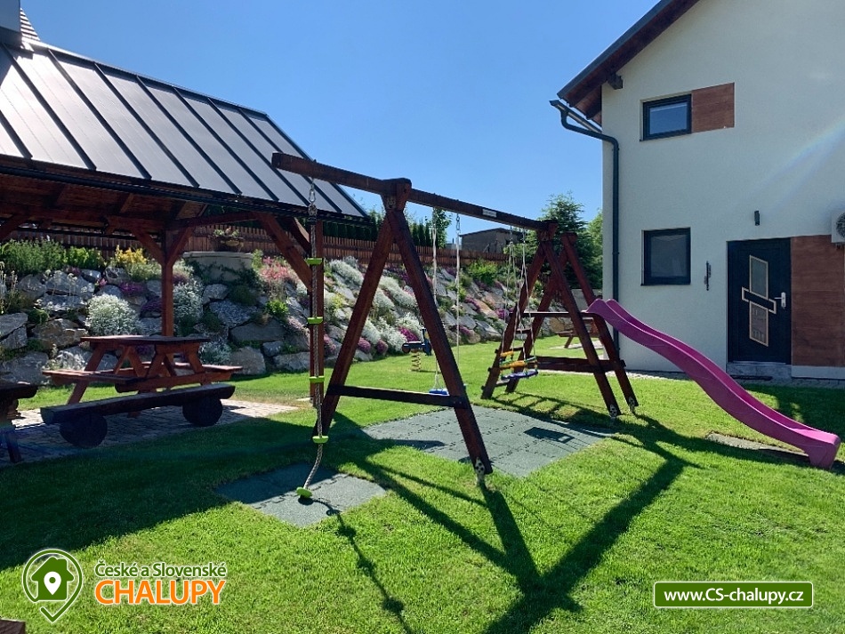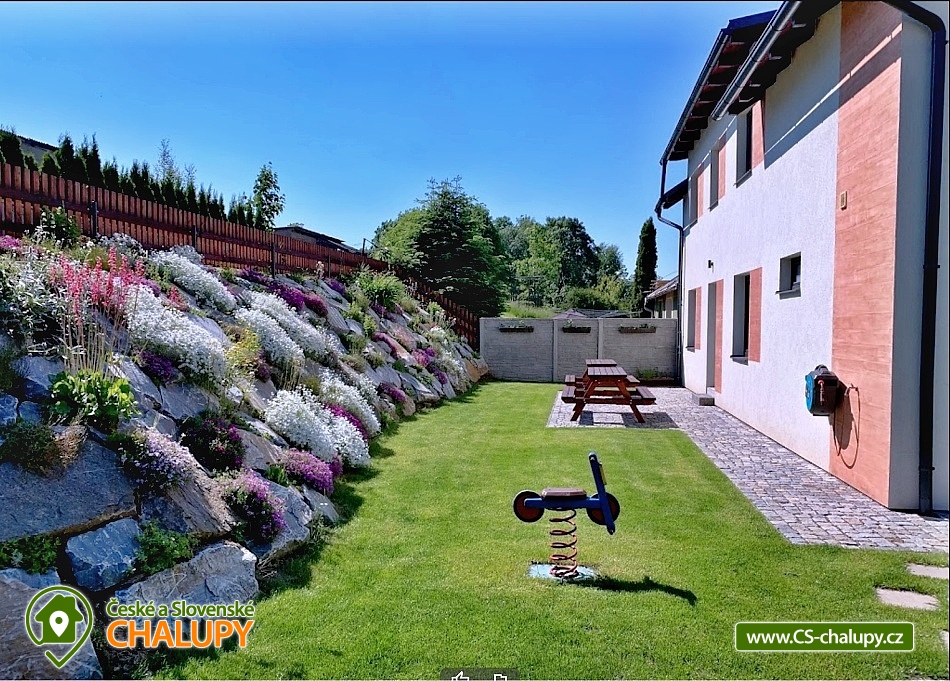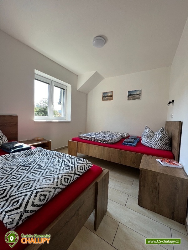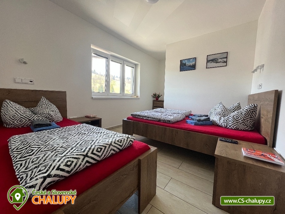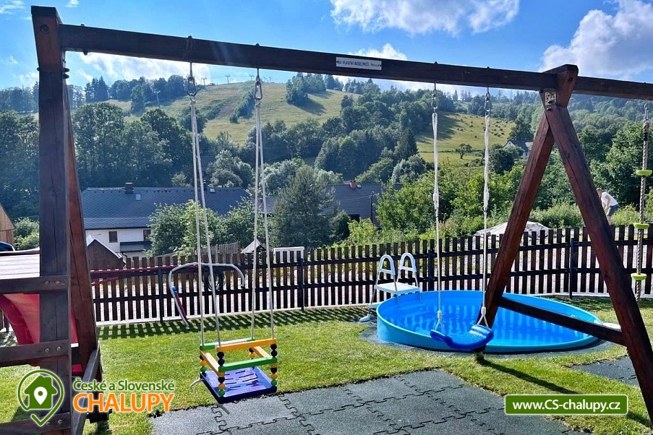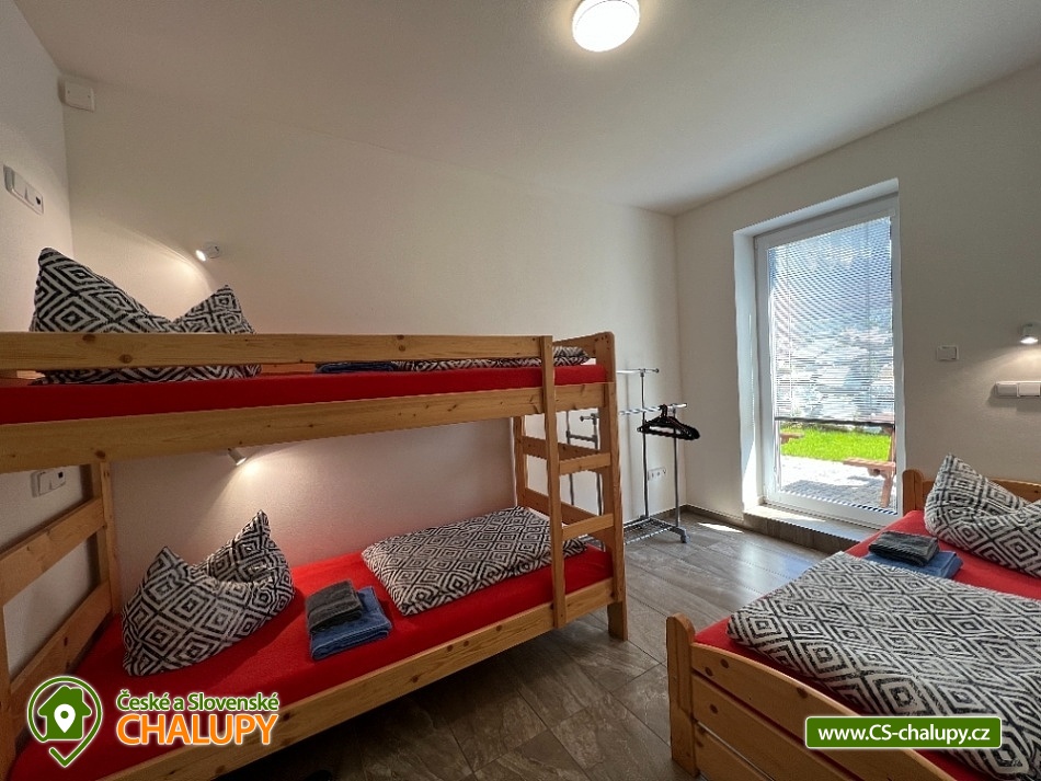 Chata s bazénem (3 rodinné apartmány) v lokalitě Králický Sněžník a Rychlebské hory. Rekreační chata sestává ze tří apartmánů pro celkem až 18 osob (apartmány pro 8, 5 a 5 osob). Vyberte si apartmán, který nejlépe vyhovuje vaší chuti a rozpočtu. Apartmán M1 - s krásným výhledem na lyžařský areál „SKITECH“, je určený pro větší partu kamarádů nebo dvě rodiny, které chtějí spolu sdílet dovolenou. Je umístněný v přízemí domu. Má chodbu s lyžárnou; samostatné WC; koupelna - 2x sprchový kout, 2x umyvadlo, WC; kuchyň s jídelnou a společenskou místností; 1x ložnice A s postelí (90x200) a dvoulůžkem (160x200); 1x dětský pokoj s palandou (90x200) a postelí (90x200); 1x ložnice B s dvoulůžkem (160x200). Apartmán M2 i M3 se nachází v 1. podlaží domu a každý tento apartmán a je vybaven vstupní halou se schodištěm a lyžárnou; sociální zařízení - 1x sprchový kout, 1x umyvadlo, WC; kuchyň s jídelnou; 1x ložnice A s postelí (90x200) a dvoulůžkem (160x200); 1x ložnice B s dvoulůžkem (140x200). Zahrada je oplocená, pro děti houpačky, skluzavka. K dispozici zastřešené sezení s grilem, ohništěm a krbem. Leží severně od Starého Města pod Sněžníkem ve vzdálenosti cca 3 km. V okolí doporučujeme navštívit: přečerpávací vodní elektrárnu Dlouhé stráně - jedná se o nejvýkonnější vodní elektrárnu v Česku uvnitř chráněné krajinné oblasti. Dominantou Staroměstska je Kralický Sněžník (1424 m), na jehož vrcholu kdysi stávala rozhledna. Pramení zde řeka Morava. Blízká lyžařská střediska v okolí: Skitech Kunčice, Stříbrnice - Skiareál Kraličák, , Paprsek, Branná. Zajímavosti: Dolní Morava Sky Bridge 721, visutý most, Stezka v oblacích , Mamutí horská dráha, Stříbrnice- rozhledna Štvanice, Trail X Enduro Park, Paddlebordy na rybníku Úžas, Větrov - Dalimilova rozhledna - replika rozhledny z Králického Sněžníku, Jeseník - Priessnitzovy lázně- malebné procházky po areálu s vodoléčebnými prameny k dispozici. Lázně Velké Losiny - termální koupaliště, renesanční zámek, čokoládovna a ruční papírna a Praděd.