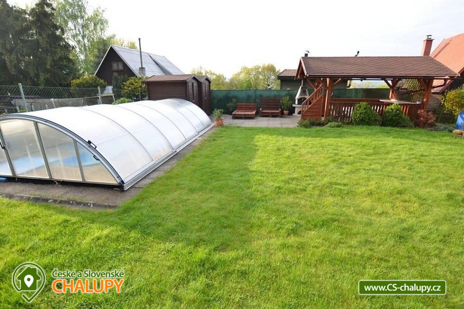 Chata s bazénem nedaleko zámku Hrubá Skála - Přijeďte si odpočinout a užít krásy Českého ráje, který Vás jistě oslní svými památkami, hrady, zámky, skalními městy, výhledy a spousty míst z pohádek. Kapacita chaty je až 4 osoby ve 2 pokojích. Užijí si jak děti, tak i dospělí. Chata na klidném místě u malebné vesničky se skládá z ložnice (v patře s dvoulůžkem), plně vybavené kuchyně, obývacího pokoje (s rozkládací pohovkou - 2 přistýlky) a koupelny. K dispozici je TV. Na zahradě k dispozici zapuštěný krytý bazén a altán s posezením a zahradním grilem. Parkování přímo u chaty. Okolí: Chata se nachází v Českém ráji, takže možnosti jsou nekonečné. V místě se lze napojit na cyklostezku podél Jizery. Skalní města Hrubá Skála, Příhrazy, Malá Skála či Klokočí jsou vzdálené do 15 minut autem, Prachovské skály 30 minut. Zámek Sychrov, Svijany, Hrubý Rohozec a hrad Kost jsou také do 15 minut autem. Nové koupaliště v Turnově je vzdálené 5 km a lze k němu dojet i na kole po cyklostezce. Přírodní koupání v Jizeře je na kole 2 km. Nejbližší les s malým skalním městem Kozlov je přímo za vesnicí. Těšíme se na Vás u nás.