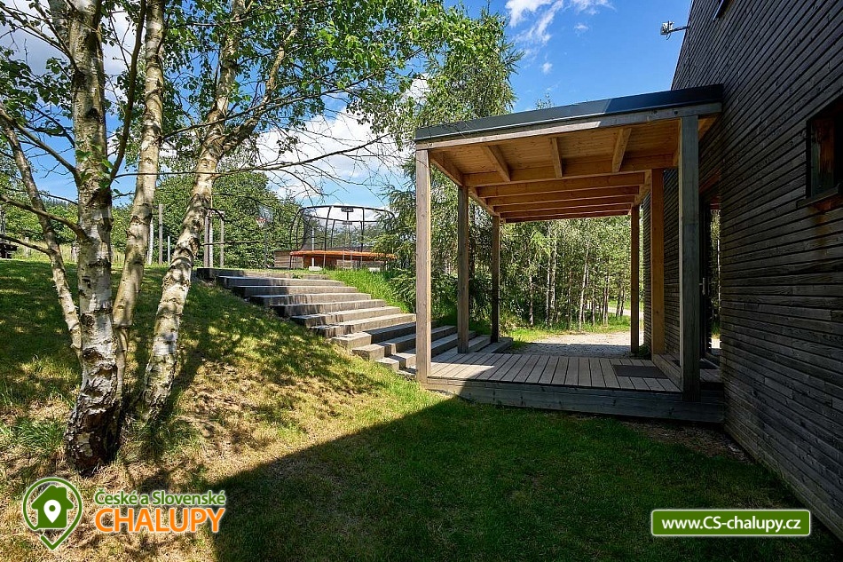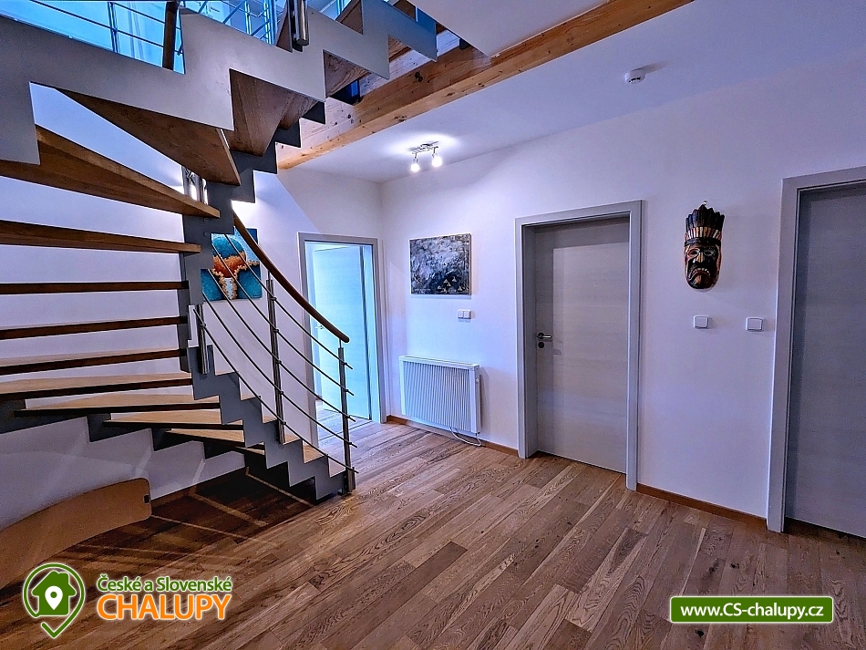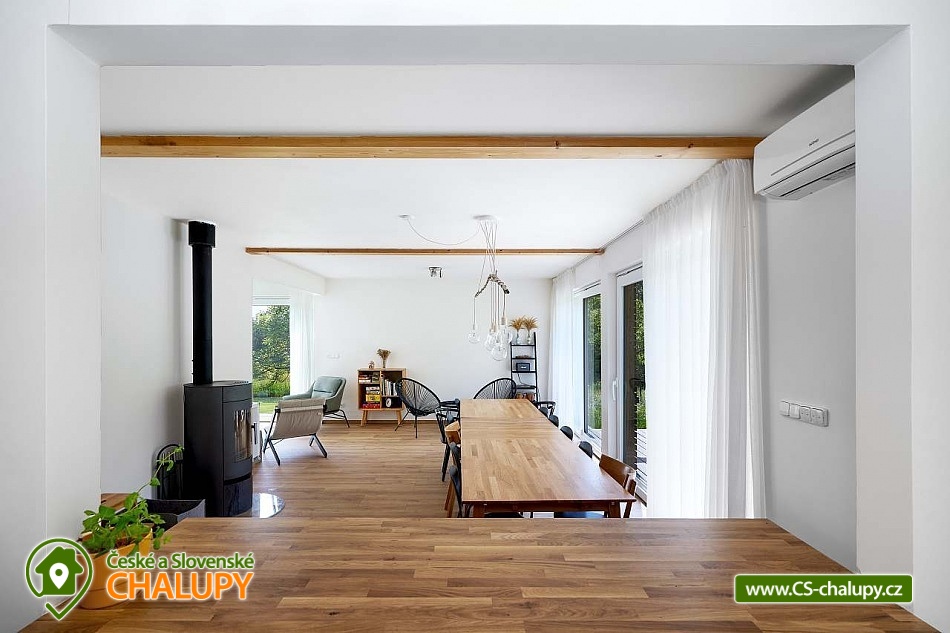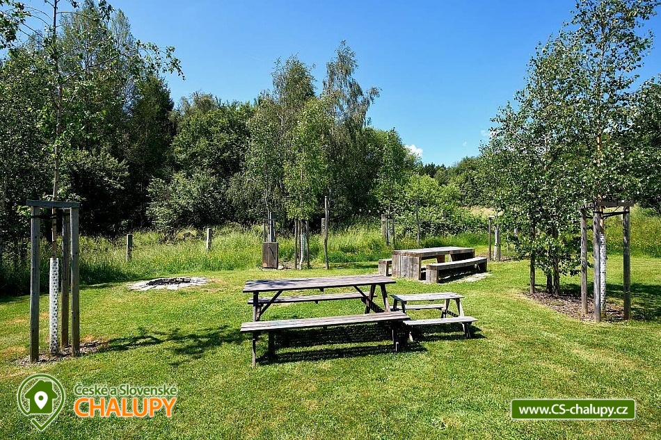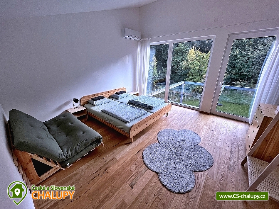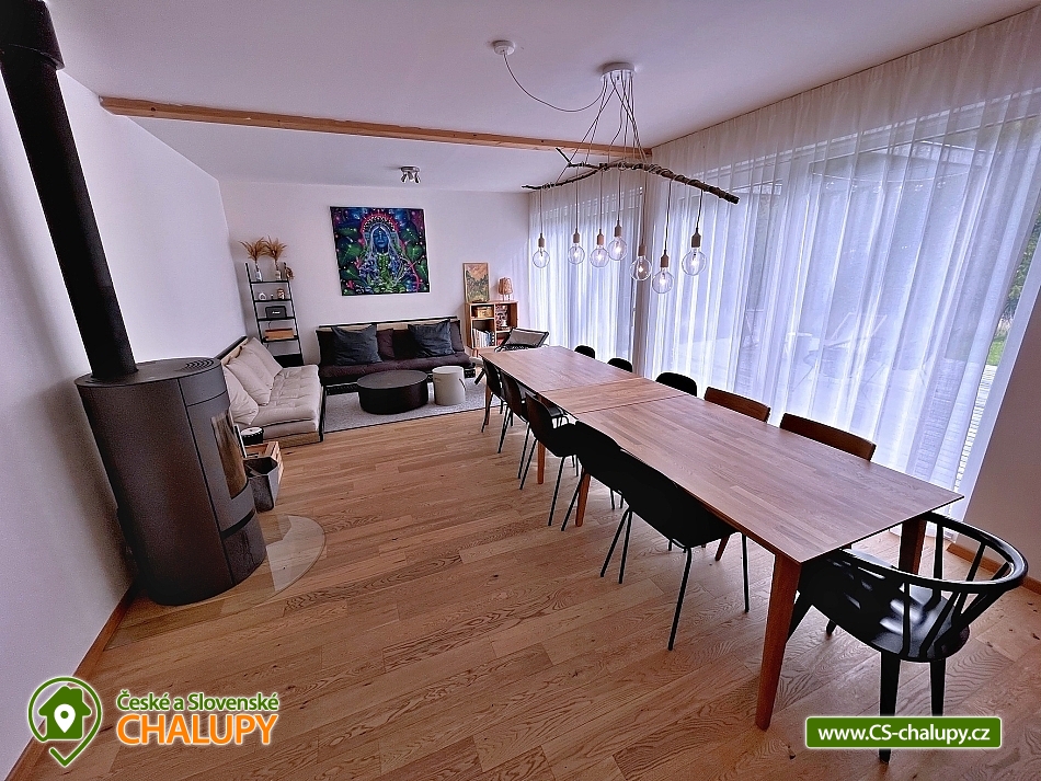 Chata s koupacím jezírkem - CHKO Brdy - obec Orlov - Staré Podlesí. Místo jen pár kroků od lesa, kde budete mít absolutní soukromí a ráno vás budou zdravit za okny srnky. V hlavní budově chaty je možné ubytovat až 24 hostů v 7 pokojích a ve vedlejší budově (klubovně) je možné ubytovat dalších až 12 hostů. V hlavní budově najdete plně vybavenou kuchyň a společný prostor, kde je možné relaxovat, zahrát si deskové hry nebo využít prostor pro práci či firemní akce. Klubovnu je možné využít mnoha způsoby - pro meditaci, jógu, školení, pracovní setkání či cokoliv dalšího podle vašich představ. V klubovně se nachází spací patro s matracemi pro ubytování dalších hostů, plně vybavená kuchyň i koupelna a toaleta. Velký pozemek nabízí spoustu sportovních aktivit! Najdete zde mlatové hřiště na volejbal/nohejbal, basketbalový koš, trampolínu či pingpongový stůl. Veškeré vybavení samozřejmě rádi zdarma zapůjčíme. Na pozemku se také nachází přírodní koupací jezírko. Nedaleko venkovní terasy s posezením se nachází ohniště s grilem. V hlavní budově se nachází celkem 7 ložnic. V přízemí najdete 3 ložnice, v horním patře potom 4 ložnice: 1. ložnice v přízemí - manželské lůžko + manželské lůžko v patře, 2. ložnice v přízemí - čtyři jednolůžkové postele + manželské lůžko v patře, 3. ložnice v přízemí - manželské lůžko + manželské lůžko v patře, 4. ložnice v horním patře - manželská postel, 5. ložnice v horním patře - manželská postel + možnost přistýlky, 6. ložnice v horním patře - dvě jednolůžkové postele, 7. ložnice v horním patře - dvě jednolůžkové postele. Povlečení i ručníky jsou v ceně pronájmu. V plně vybavené kuchyni najdete: troubu, mikrovlnnou troubu, myčku, kávovar, mlýnek na kávu, základní potraviny, nádobí, utěrky. Je možné využít dvě plně vybavené kuchyně (jedna v hlavní budově, druhá v klubovně). V chatě jsou 3 koupelny (1x vana, 3x sprcha) a 3 toalety. V klubovně je sprcha + toaleta. Možnost použití pračky. Celý objekt je vytápěn standardním elektrickým topením, v každém pokoji se dá teplota regulovat zvlášť. Ve společenské místnosti/obýváku je krb. Dřevo je v ceně pronájmu. Reproduktory možné využít přes bluetooth, a to jak v hlavní budově, tak v klubovně. Možnost zapůjčení dvou dětských postýlek i dětské židličky. Stravování je také možné v okolních restauracích. Nejbližší restaurace je 700 m. Obchod je ve vesnici, větší supermarkety jsou v nedaleké Příbrami. Parkování je možné přímo u objektu. Na pozemku se nachází nabíječka na elektromobily. V okolí se nachází spousta turistických i cyklistických tras, v zimě si přijdou na své běžkaři. Brdy a místní lesy jsou ideálním místem pro houbaření i pozorování lesní zvěře. Přímo v Orlově je rodinná stáj (vyjížďky na koních i pro děti). Těšíme se na Vás u nás.