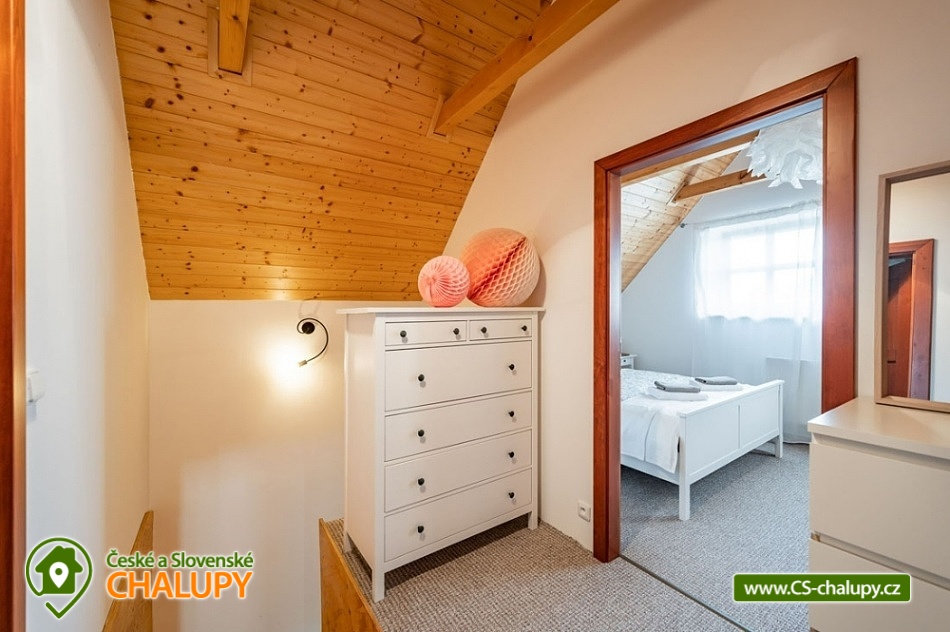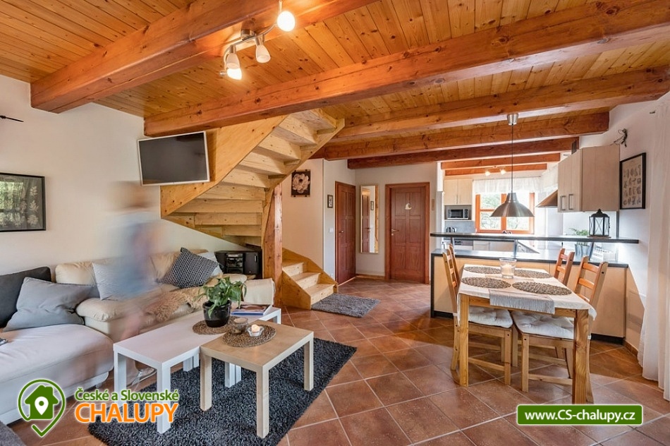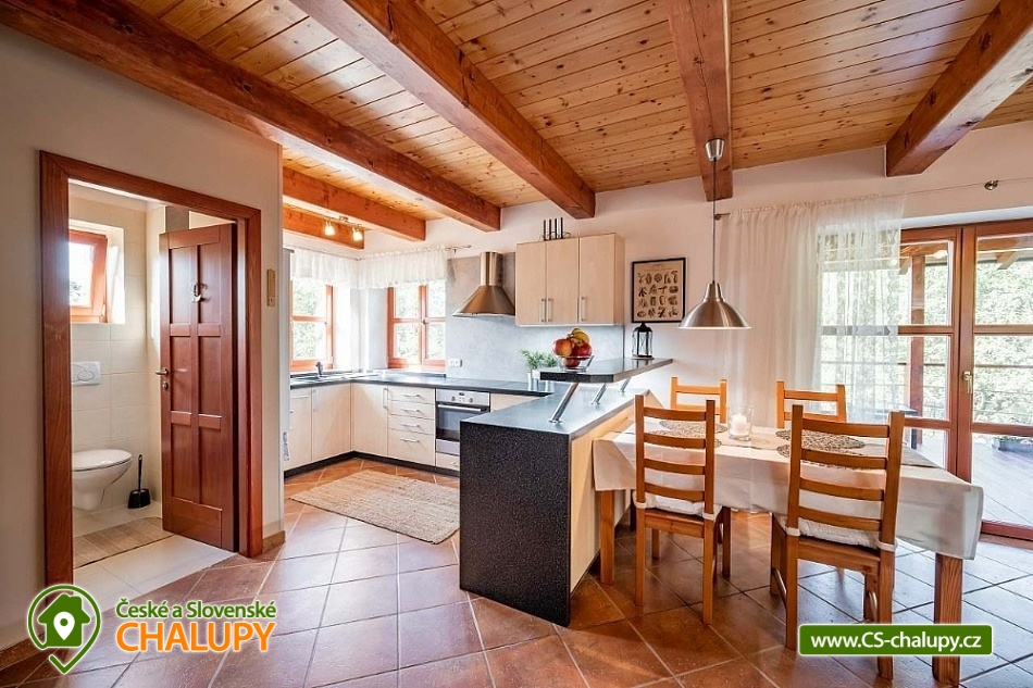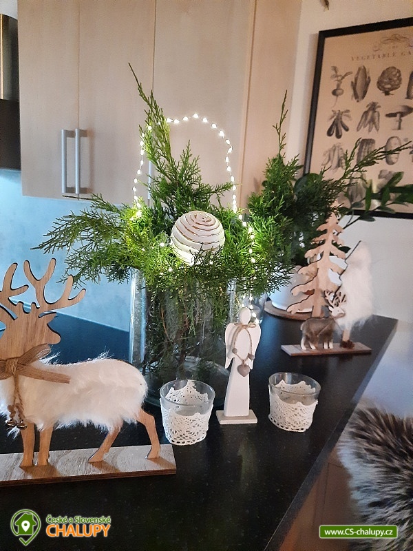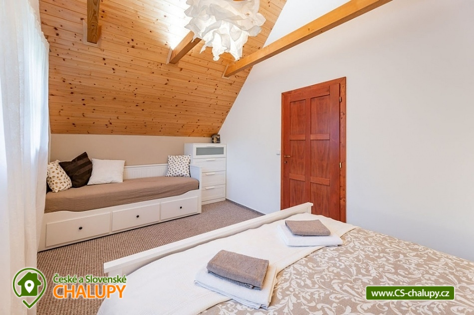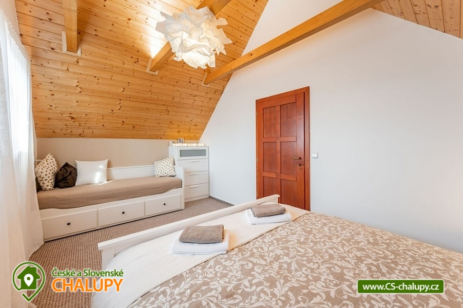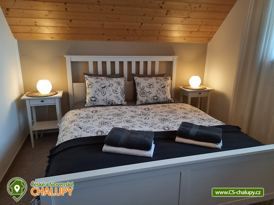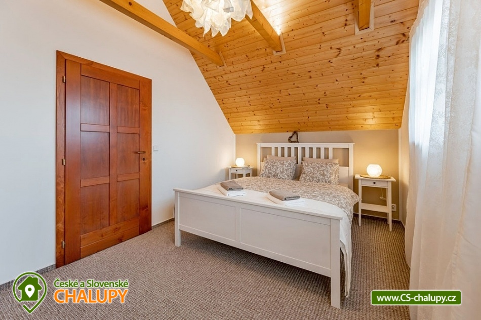 Komfortně vybavená rekreační chata s rozlehlou zahradou a koupacím sudem v CHKO Bílé Karpaty je posazená nad malebným údolím lázní Luhačovice, obklopená hlubokými lesy. V okolí si můžete o samotě užívat pěší a cyklo výlety krásnou přírodou Bílých Karpat. Chata poskytuje ubytování pro až 8 osob ve dvou ložnicích umístěných v patře. Obě ložnice disponují jednou manželskou postelí a jedním rozkladatelným lůžkem (1+1). K zapůjčení je dětská postýlka. Kromě toho se v patře nachází toaleta a komody na oblečení. V přízemí najdete hlavní obytný prostor. Součástí obývací části jsou krbová kamna, sedací souprava, jídelní stůl a chytře schovaná velkoplošná TV obrazovka. Na obývací prostor navazuje plně vybavená kuchyňská linka (sporák, trouba, lednice, mikrovlnná trouba, myčka, topinkovač, rychlovarná konvice a kapslový kávovar Nespresso). V celém objektu k dispozici WIFI připojení na internet. Sociální zařízení zahrnuje jednu přízemní koupelnu s toaletou a v patře jednu samostatnou toaletu. Pro veškeré pohodlí je k dispozici ložní povlečení, dostatečná zásoba osušek a ručníků i toaletního papíru. Chata je vytápěna pomocí krbových kamen, které jsou napojeny na podlahové topení i radiátory v ložnicích. O atmosféru se v létě postará prostorná terasa s posezením přístupná přes francouzské okno přímo z obývací části. Odtud je to jen krůček na velkou zahradu a k zahradnímu grilu. Během pobytu můžete neomezeně využívat dřevem vytápěný koupací sud s masážními tryskami. Každý si na zahradě najde své místo pro odpočinek. Pozemek lemují dostatečné zásoby palivového dříví. Využijete jej v chladných měsících do krbu a v létě na opékání buřtů na zahradním ohništi. Parkovat lze přímo u objektu. V zimním období výhodou vybavení sněhovými řetězy. V okolí chaty možnost turistiky, cykloturistiky, koupání, wellness, houbaření a rybaření. V blízkosti je také minigolf, bowling a tenisové kurty. Mezi možnosti koupání patří např.: Luhačovická přehrada, bazén Luhačovice - Městská plovárna, koupaliště Ludkovice, koupaliště Bojkovice, Koupaliště Slavičín, koupaliště Pitín, koupaliště Uherský brod, aquapark Uherský Brod - Delfín, koupaliště Zlín - Zelené, atd. K okolním výletům láká Muzeu luhačovického Zálesí s kabinetem architekta Dušana Jurkoviče, Jurkovičova alej (vhodná pro in -line) vedoucí k přehradě v Pozlovicích, Bílá a Pražská čtvrť s jejich vilami, nejstarší minerální pramen v Luhačovicích Aloiska, Dům Bedřicha Smetany, Jurkovičův dům, Vizovické vrchy, Vlachovice s tradiční sušárnou bylin a ovoce, typické roubenky ve Valašských Kloboukách, Uherský Brod či Zlín a mnoho dalších. Těšíme se na Vás u nás.