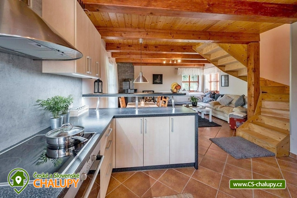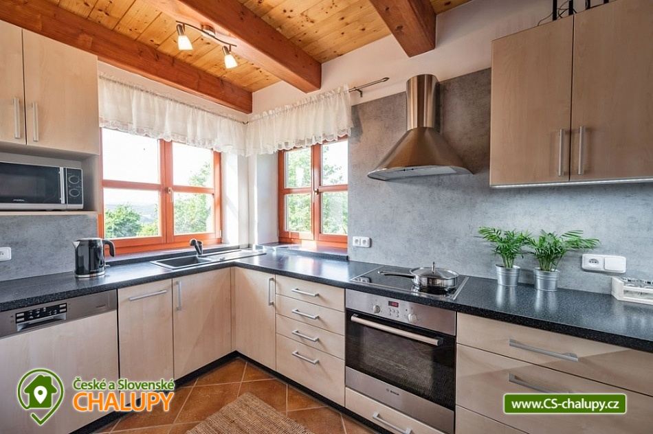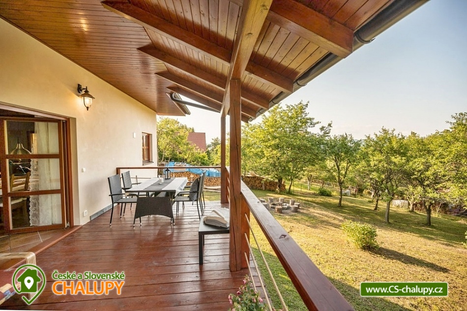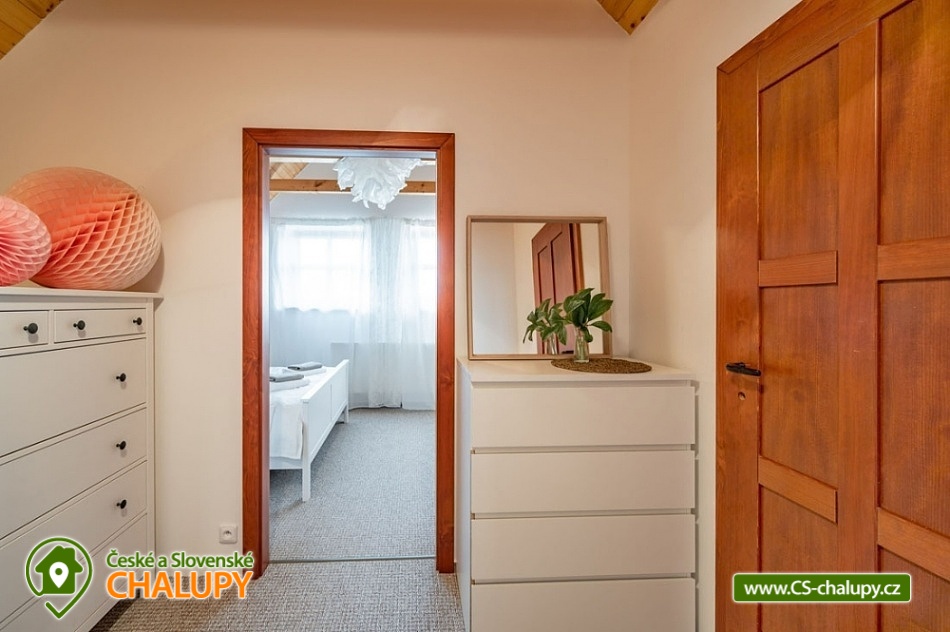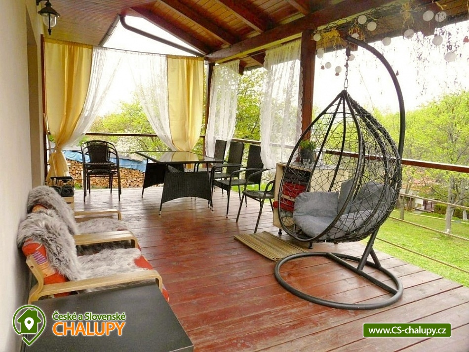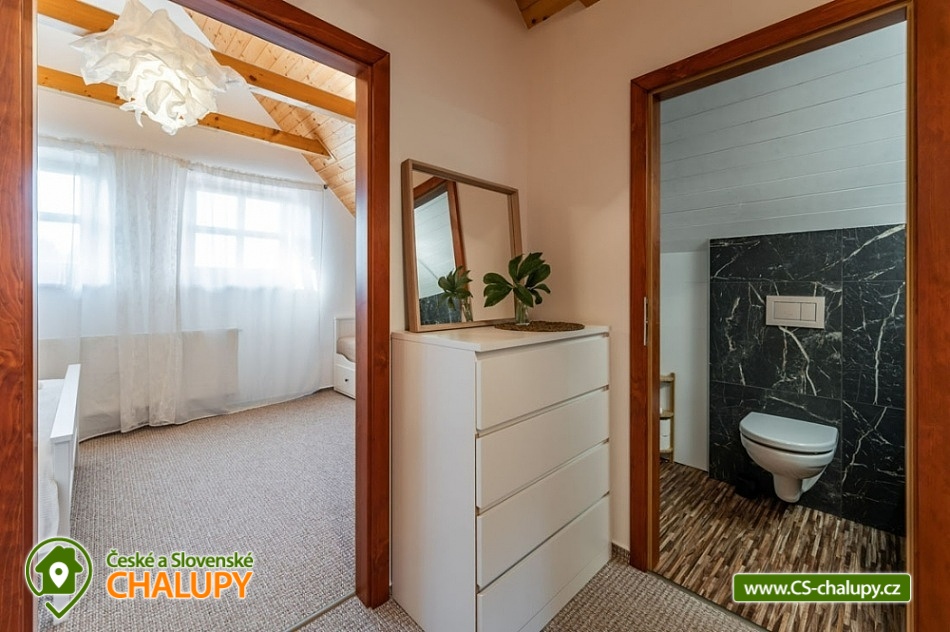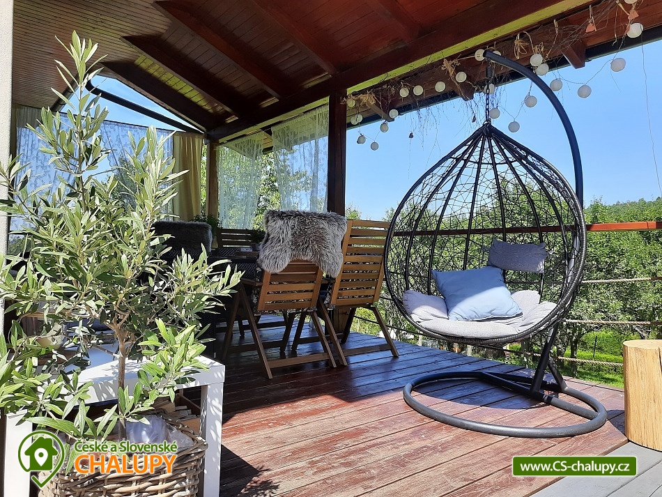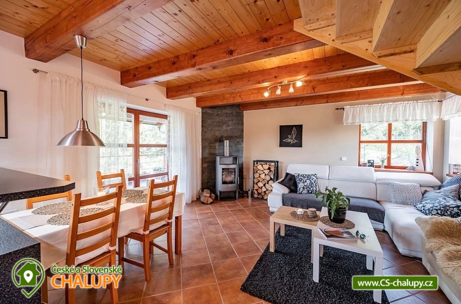 Komfortně vybavená rekreační chata s rozlehlou zahradou a koupacím sudem v CHKO Bílé Karpaty je posazená nad malebným údolím lázní Luhačovice, obklopená hlubokými lesy. V okolí si můžete o samotě užívat pěší a cyklo výlety krásnou přírodou Bílých Karpat. Chata poskytuje ubytování pro až 8 osob ve dvou ložnicích umístěných v patře. Obě ložnice disponují jednou manželskou postelí a jedním rozkladatelným lůžkem (1+1). K zapůjčení je dětská postýlka. Kromě toho se v patře nachází toaleta a komody na oblečení. V přízemí najdete hlavní obytný prostor. Součástí obývací části jsou krbová kamna, sedací souprava, jídelní stůl a chytře schovaná velkoplošná TV obrazovka. Na obývací prostor navazuje plně vybavená kuchyňská linka (sporák, trouba, lednice, mikrovlnná trouba, myčka, topinkovač, rychlovarná konvice a kapslový kávovar Nespresso). V celém objektu k dispozici WIFI připojení na internet. Sociální zařízení zahrnuje jednu přízemní koupelnu s toaletou a v patře jednu samostatnou toaletu. Pro veškeré pohodlí je k dispozici ložní povlečení, dostatečná zásoba osušek a ručníků i toaletního papíru. Chata je vytápěna pomocí krbových kamen, které jsou napojeny na podlahové topení i radiátory v ložnicích. O atmosféru se v létě postará prostorná terasa s posezením přístupná přes francouzské okno přímo z obývací části. Odtud je to jen krůček na velkou zahradu a k zahradnímu grilu. Během pobytu můžete neomezeně využívat dřevem vytápěný koupací sud s masážními tryskami. Každý si na zahradě najde své místo pro odpočinek. Pozemek lemují dostatečné zásoby palivového dříví. Využijete jej v chladných měsících do krbu a v létě na opékání buřtů na zahradním ohništi. Parkovat lze přímo u objektu. V zimním období výhodou vybavení sněhovými řetězy. V okolí chaty možnost turistiky, cykloturistiky, koupání, wellness, houbaření a rybaření. V blízkosti je také minigolf, bowling a tenisové kurty. Mezi možnosti koupání patří např.: Luhačovická přehrada, bazén Luhačovice - Městská plovárna, koupaliště Ludkovice, koupaliště Bojkovice, Koupaliště Slavičín, koupaliště Pitín, koupaliště Uherský brod, aquapark Uherský Brod - Delfín, koupaliště Zlín - Zelené, atd. K okolním výletům láká Muzeu luhačovického Zálesí s kabinetem architekta Dušana Jurkoviče, Jurkovičova alej (vhodná pro in -line) vedoucí k přehradě v Pozlovicích, Bílá a Pražská čtvrť s jejich vilami, nejstarší minerální pramen v Luhačovicích Aloiska, Dům Bedřicha Smetany, Jurkovičův dům, Vizovické vrchy, Vlachovice s tradiční sušárnou bylin a ovoce, typické roubenky ve Valašských Kloboukách, Uherský Brod či Zlín a mnoho dalších. Těšíme se na Vás u nás.