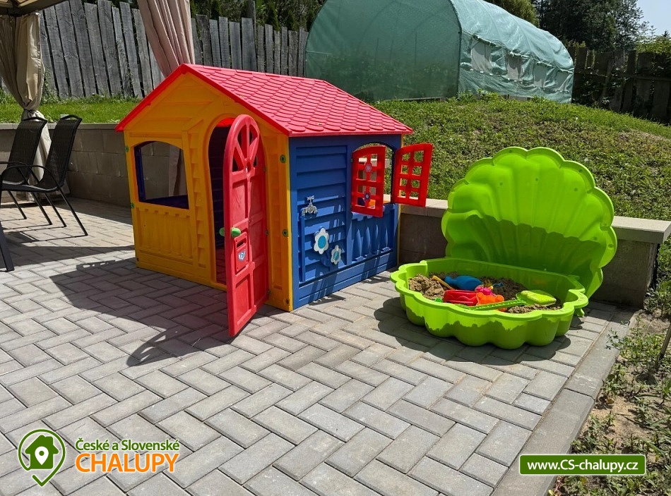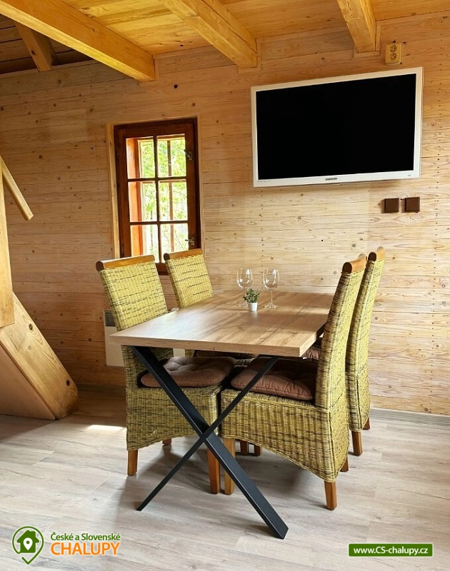 Útulná chata s terasou a vířivkou se nachází na okraji lesa v chráněné oblasti Drahanské vrchoviny, v malebné vesničce Úsobrno. Svou polohou je tak ideálním místem pro zasloužený odpočinek, cyklovýlety a pěší turistiku. Chata poskytuje ubytování pro 8 osob ve dvou ložnicích a je rozdělena do dvou samostatných částí, které poskytují vlastní soukromí. Z jedné části do druhé se dá projít přes terasu, vnitřkem ne. V jedné části se nachází 2-lůžková ložnice (1x manželská postel), menší vybavená kuchyňka (varná deska, kávovar, lednice, mikrovlnná trouba a nádobí) a jídelní část s posezením a TV. Ve druhé části chalupy v podkroví je 4-lůžková ložnice (1x manželská postel, 2x jednolůžko) a v přízemí v obývacím prostoru je k dispozici přistýlka pro dvě osoby formou rozkládací postele. Dále se v obývacím pokoji nachází plně vybavený kuchyňský kout (varná deska, kávovar, lednice, mikrovlnná trouba, rychlovarná konvice, remoska a nádobí), jídelní posezení a TV. Na vyžádání je možné zapůjčit dětskou postýlku, dětskou jídelní židličku, přebalovací pult, odrážedla i hračky. Sociální zařízení zahrnuje 2x vlastní koupelnu se sprchovým koutem, umyvadlem, toaletou, fénem a ručníky. Vytápění chaty je řešeno radiátory. V objektu možnost zdarma WI-FI připojení na internet. Součástí chaty je prostorná slunná terasa se slunečníkem. Chatu obklopuje oplocená zahrada s možností parkování přímo u objektu (max. 5 aut). Na zahradě můžete využít zastřešené posezení a plynový gril. Ti nejmenší jistě ocení dětský bazén, pískoviště, houpačku a trampolínu. V letních měsících je k dispozici i vířivka. Možnost uložení kol a motocyklů pod přístřeškem. V okolí chaty možnost turistiky, cykloturistiky, koupání, rybaření, houbaření a běžkování. Mezi možnosti koupání patří např.: vodní nádrž Boskovice, přehrada Křetínka, vodní nádrž Letovice nebo bazén s tobogány ve Velkých Opatovicích. K výletům v okolí láká: zřícenina hradu Boskovice, Javoříčské jeskyně, hrad Bouzov, město Olomouc nebo ZOO Olomouc. Těšíme se na Vás u nás.
