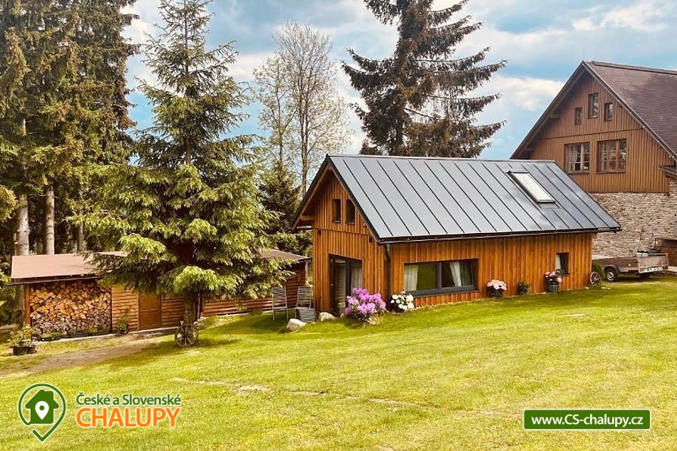 Komfortní chata s vířivkou pod vrchem Žalý se stejnojmennou rozhlednou - poloha u areálu Bubákov, Horní Vrchlabí - Krkonoše. Stylově zařízená chata u vleku se nachází v rekreačním areálu, jehož součástí je restaurace, bar, venkovní wellness pergola s vířivkou a také chalupa 5C-394. Těšit se můžete na úžasné výhledy do okolní horské krajiny a na útulný interiér, kterému dominuje dřevo a zároveň řada moderních prvků. Chata nabízí ubytování pro až 6 osob. Celkem je k dispozici jedna čtyřlůžková ložnice v átriu (2x manželská postel) a 2x přistýlka řešená rozkládacím gaučem v obývací části. K ložnici vedou dřevěné schody, které lze zajistit bezpečnostní zábranou. K zapůjčení je dětská postýlka a židlička. Celé přízemí chaty je bezbariérové. Příjemné chvíle lze trávit v obývací místnosti - peletková kamna, sedací souprava a společenské hry. Součástí místnosti je plně vybavený kuchyňský kout (elektrická trouba, keramická varná deska, varná konvice, lednice, mrazák, myčka nádobí, toustovač a kávovar). Sociální zařízení zahrnuje jednu přízemní, bezbariérovou koupelnu se sprchovým koutem, toaletou a ručníky. K zapůjčení je žehlička. V celém objektu je k dispozici WIFI připojení na internet. Z obývacího pokoje lze velkými prosklenými dveřmi projít přímo na terasu s posezením. K dispozici je gril. Kolem chaty se rozléhá travnatá zahrada. Po domluvě a za příplatek lze zajistit relax ve wellness místnosti s venkovní vířivkou a panoramatickými okny s výhledem do přírody. K dispozici je úschovna pro lyže a další sportovní vybavení. Parkovat lze přímo u objektu. Nutné je zohlednit, že k chatě vede cesta s obtížnějším přístupem. K dispozici je 10 parkovacích míst. V zimním období při nepříznivých sněhových podmínkách je možné si nechat odvézt věci z nedalekého hlídaného parkoviště. Vhodné je vybavení sněhovými řetězy. V okolí objektu možnost turistiky, cykloturistiky, koupání, houbaření, in -line bruslení, bruslení na ledě, lyžování, snowboarding a běžkování. V blízkosti jsou tenisové kurty, bowling a jízdárna. Mezi možnosti koupání patří např.: Aquacentrum Vrchlabí, Přírodní koupaliště Vejsplachy, Aquapark Špindlerův Mlýn, Koupaliště Čistá v Krkonoších, bazén Jilemnice, Aquacentrum Jánské Lázně atd. V zimním období jsou k dispozici blízká lyžařská střediska Herlíkovice, Bubákov, Strážné, Benecko a další. V okolí k výletům láká Rozhledna Žalý, Tubing a horské káry Benecko, Zámek Vrchlabí, Krkonošské muzeum, Hrad Dolní Štěpanice a Zámek Horní Branná, Stezka korunami stromů Janské Lázně, Sněžka, Bobová dráha Špindlerův mlýn, Relaxpark Pec pod Sněžkou a ZOO Dvůr Králové. Těšíme se na Vás u nás.