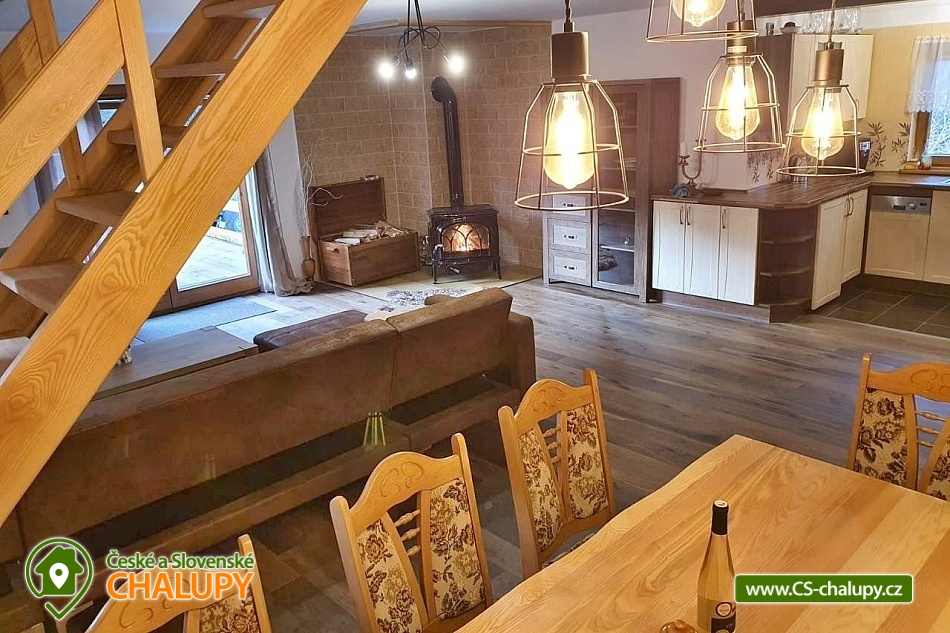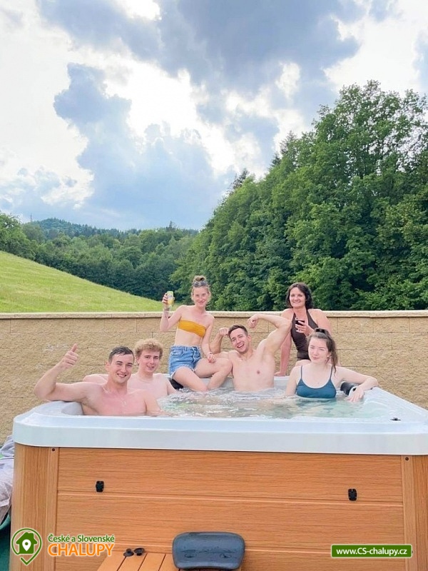 Chata s vířivkou nedaleko Satinských vodopádů a aquaparku Olešná v podhůří Moravskoslezských Beskyd. Chata je umístěná v blízkosti lesa a můžete se tak těšit na dostatek soukromí a klidu. Je vhodná pro rodiny s dětmi a rekreační pobyty. Relax si užijete ve venkovní vířivce. Chata nabízí ubytování pro až 10 osob ve 3 ložnicích. K dispozici jsou dvě třílůžkové ložnice (1× jednolůžková postel a 1× manželská postel), v přízemí a v patře. Dále se v patře nachází čtyřlůžková ložnice (2× jednolůžková postel a 1× manželská postel) s jídelním stolem. Dětská postýlka je k zapůjčení. V přízemí lze příjemné chvíle trávit ve velké společenské místnosti s krbem, dřevěnou podlahou, velkým jídelním stolem, sedací soupravou a Smart TV se SAT. Součástí místnosti je moderní, plně vybavená kuchyň (prostorná chladnička s mrazákem, sklokeramická varná deska, elektrická trouba, myčka nádobí, kávovar na zrnkovou kávu, mikrovlnná trouba, toustovač, rychlovarná konvice a tyčový mixér). Vstup do patra je možný ze společenské místnosti po dřevěných schodech ale také samostatně z venku. Na chodbě v patře je umístěná mini kuchyňka. Sociální zařízení zahrnuje v přízemí jednu koupelnu s masážní vanou a WC a jednu koupelnu v patře s vanou a WC. K dispozici je pračka, žehlička a žehlící prkno. Vytápění je řešeno krbovými kamny a elektrickým topením. V celém objektu je k dispozici WIFI připojení na internet. Venku lze posedět na dřevěné terase, na kterou lze vstoupit přímo z obývacího pokoje. K dispozici je venkovní gril na dřevěné uhlí s elektrickou jehlou, roštem a mramorovou deskou a velké ratanové posezení pro 10 osob. Posedět lze také u ohniště. Součástí druhé terasy je venkovní vířivka pro 5 osob a pingpongový stůl. Parkovat lze přímo u objektu. K dispozici je úschovna pro kola a lyže. Chata NEení určena pro firemní večírky či zapíjení svobody nebo bujaré oslavy - Chata je v obydlené části, kde se respektuje noční klid. V okolí objektu možnost turistiky, cykloturistiky, koupání, houbaření, paragliding, skialping, lyžování a běžkování. Ve městě najdete koupaliště s tobogánem, sportovní areál, tenisové kurty, squash centrum, kurty na plážový volejbal a fotbalové hřiště. V blízkosti je také golfové hřiště. Mezi možnosti koupání patří např.: koupaliště Frýdlant nad Ostravicí, přehrada Baška, přehrada Olešná, aquapark Frýdek Místek - Olešná, koupaliště Ostravice - Sepetná, bazén Frenštát pod Radhoštěm, aquapark Frenštát pod Radhoštěm, atd. K dispozici jsou blízká lyžařská střediska: Malenovice, Palkovice - Za domem, Opálená a další. K výletům lákají tůry na Ondřejník, Smrk a Lysou horu, dále Naučná stezka Kamenec vedoucí podél řeky Ostravice, Satinské vodopády, Kamenná mohyla Ivančena, Kněhynská jeskyně nebo AutoMoto muzeum Kopřivnice. Těšíme se na Vás u nás.