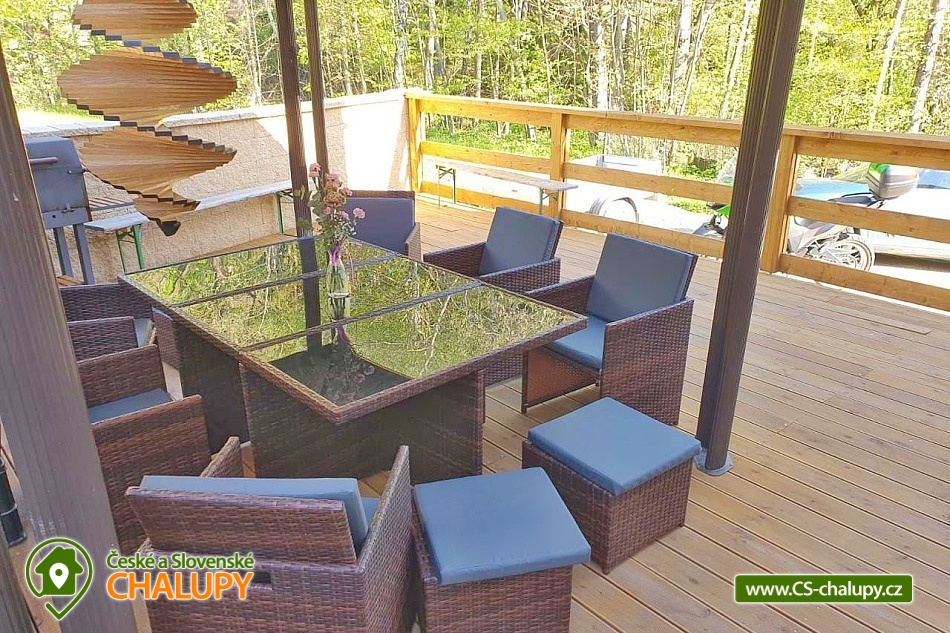 „Chata a terasa s vířivkou - Satinské vodopády - Lysá hora“