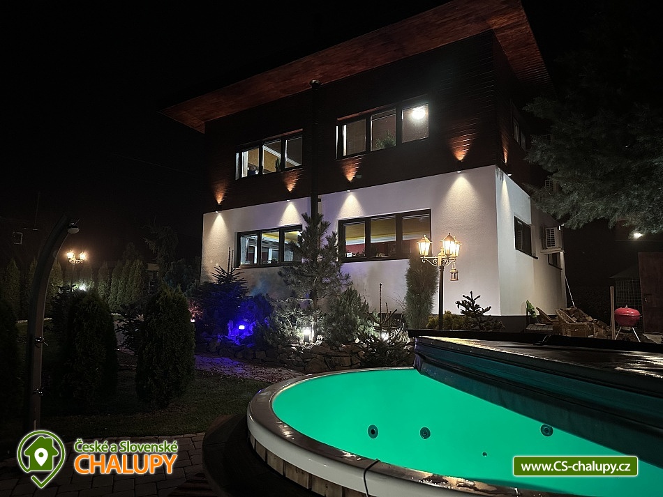 Chata s venkovní vířivkou a nádherným výhledem na Lysou horu - Beskydy. Kapacita chaty je až 8 osob ve 2 ložnicích a dalších 2 pokojích, kde je možnost roztáhnutí velkých sedaček. Sociální zařízení zahrnuje dvě koupelny: jedna s vanou druhá se sprchovacím koutem. Chata je celoročně vytápěna elektrickým podlahovým topením, klimatizací v každém pokoji. Chata je vybavena plnohodnotnou kuchyní včetně myčky nádobí mikrovlnné trouby atd. Dále je chata je vybavena: kulečníkový stůl, domácí kino Netflix veškeré placené kanály včetně rychlého internetu. Parkování přímo u chaty. Golfové hřiště je jen cca 1 km od objektu. Možnosti koupání v okolí: vodní nádrž Šance, přehrada Morávka, přehrada Baška, přehrada Olešná, přehrada Horní Bečva, přehrada Větřkovice, přehrada Kateřinice, vodní nádrž Brušperk nebo přehrada Žermanice. Blízká lyžařská střediska: SKI Bílá, Na Čele - Ostravice, Malenovice, Lysá hora, Opálená, Zlatník - Fela, Skipark Gruň. Doporučujeme i pěší výlet na Lysou horu.