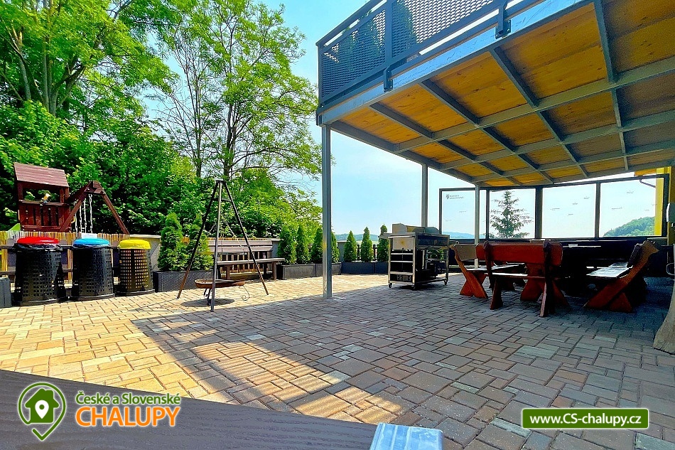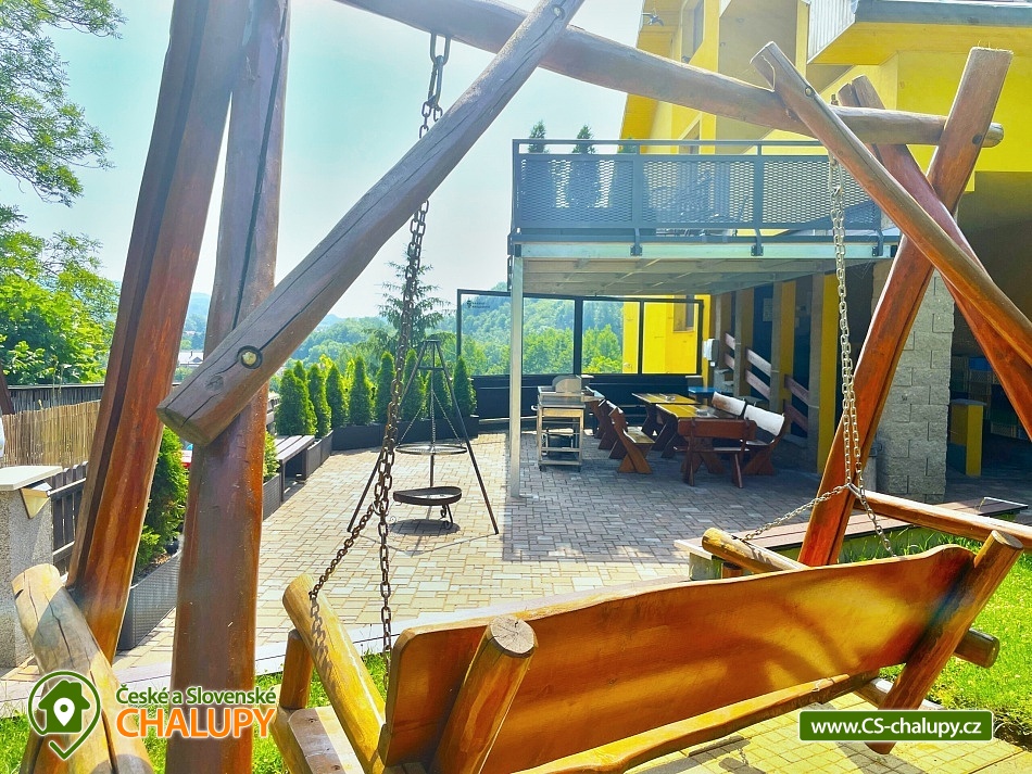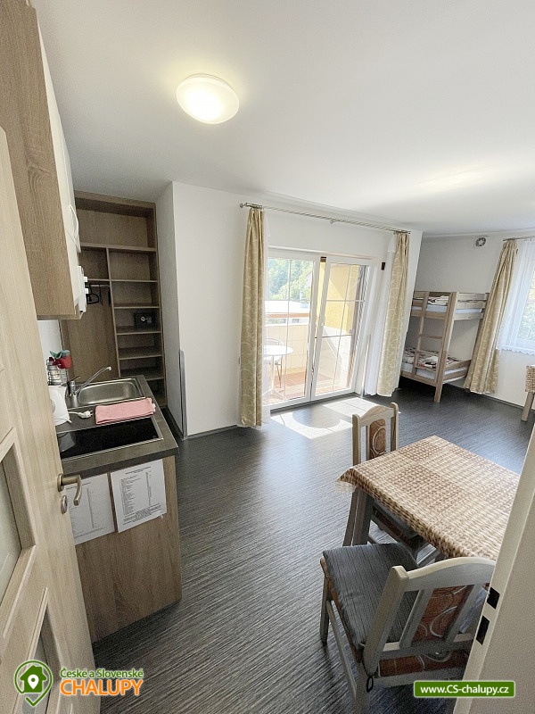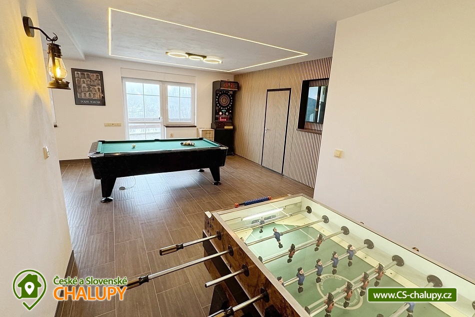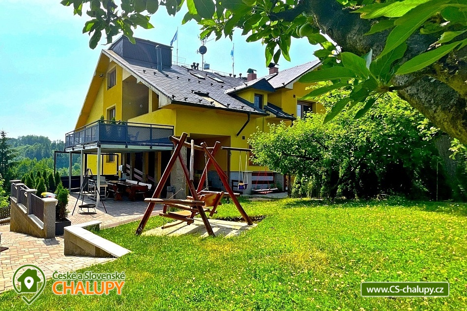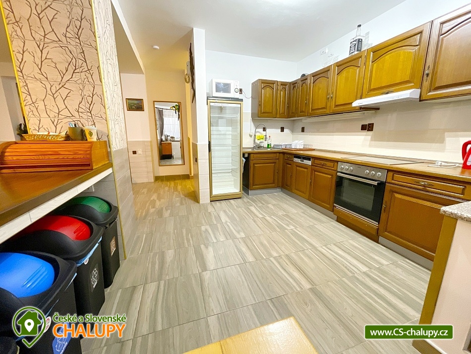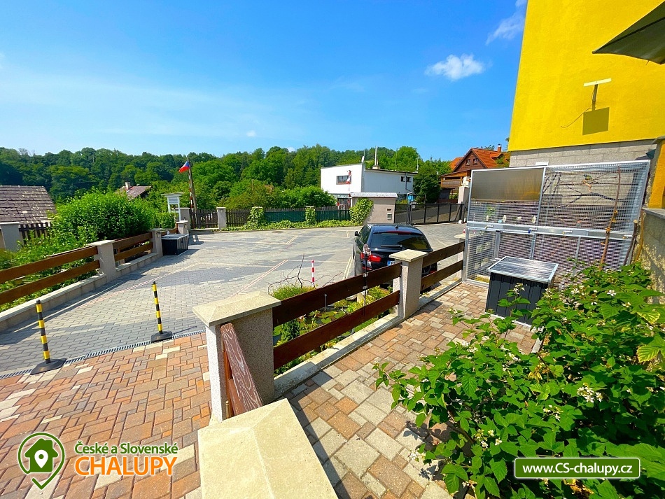 Chata s vnitřním bazénem a finskou saunou se nachází v srdci Českého ráje nedaleko zámku ve skalách Hrubá Skála. Svojí lokalitou je skvělým výchozím bodem pro výlety k oblíbeným turistickým cílům, jako jsou hrad Trosky, Hruboskalsko, Malá Skála nebo pohádkové město Jičín. Vhodné pro rodiny s dětmi, partu přátel, cyklisty nebo firemní teambuildingy. Těšit se můžete na venkovní i vnitřní bazén, saunu, terasu s posezením či hernu vybavenou kulečníkem, fotbálkem nebo šipkami. Objekt nabízí ubytování pro až 36 osob,v 10 samostatně pronajímatelných apartmánech. Součástí každého apartmánu je plně vybavená kuchyň (sklokeramická deska, rychlovarná konvice, lednička, mikrovlnná trouba a nádobí), jídelní kout a sociální zařízení s vanou/sprchovým koutem, umyvadlem a toaletou. Apartmány jsou 2-lůžkové nebo 4-lůžkové (u ložnic, kde je 2x samostatné jednolůžko, lze spojit v manželskou postel) a nachází se v přízemí a v 1. patře. Možnost zapůjčit dětskou postýlku. APARTMÁN č. 1 (1. patro, max. 2 osoby): 1x dvoulůžková ložnice (2x samostatné jednolůžko), TV, kuchyň, koupelna se sprchovým koutem a samostatnou toaletou. APARTMÁN č. 2 (1. patro, max. 4 osoby): 1x čtyřlůžková ložnice (2x samostatné jednolůžko, 1x patrová postel), TV, kuchyň, koupelna se sprchovým koutem a samostatnou toaletou, výhled na město Rovensko pod Troskami. APARTMÁN č. 3 s balkonem (1. patro, max. 5 osob): 1x čtyřlůžková ložnice (2x samostatné jednolůžko, 1x patrová postel + možnost přistýlky pro jednu osobu - rozkládací postel), TV, kuchyň, koupelna se sprchovým koutem a toaletou, výhled na město Rovensko pod Troskami. APARTMÁN č. 4 s balkonem (1. patro, max. 3 osoby): 1x dvoulůžková ložnice (2x samostatné jednolůžko + možnost přistýlky pro jednu osobu - rozkládací postel), TV, kuchyň, koupelna s vanou a samostatnou toaletou, výhled na město Rovensko pod Troskami a na hrad Trosky. APARTMÁN č. 5 s balkonem (1. patro, max. 3 osoby): 1x dvoulůžková ložnice (2x samostatné jednolůžko + možnost přistýlky pro jednu osobu - rozkládací postel), TV, kuchyň, koupelna se sprchovým koutem a toaletou, výhled na hrad Trosky. APARTMÁN č. 6 s balkonem (1. patro, max. 5 osob): 1x čtyřlůžková ložnice (2x samostatné jednolůžko, 1x patrová postel + možnost přistýlky pro jednu osobu - rozkládací postel), TV, kuchyň, koupelna se sprchovým koutem a samostatnou toaletou, výhled na hrad Trosky a do zahrady. APARTMÁN č. 7 (1. patro, max. 4 osoby): 1x čtyřlůžková ložnice (2x samostatné jednolůžko, 1x patrová postel), TV, kuchyň, koupelna se sprchovým koutem a samostatnou toaletou, výhled do zahrady. APARTMÁN č. 8 (1. patro, max. 2 osoby): 1x dvoulůžková ložnice (2x samostatné jednolůžko), TV, kuchyň, koupelna se sprchovým koutem a samostatnou toaletou, výhled do zahrady. APARTMÁN č. 9 (1. patro, max. 4 osoby): 1x čtyřlůžková ložnice (2x samostatné jednolůžko, 1x patrová postel), TV, kuchyň, koupelna se sprchovým koutem a samostatnou toaletou, výhled do zahrady. APARTMÁN č. 10 DELUX (přízemí, max. 4 osoby): 1x čtyřlůžková ložnice (1x velká manželská postel, 1x patrová postel), TV, kuchyň, koupelna se sprchovým koutem a toaletou, výhled na Rovensko pod Troskami a venkovní bazén. V ubytování se nachází ještě další 3 toalety (2x ve společenské místnosti, 1x u vnitřního bazénu). K dispozici je společenská místnost s posezením až pro 36 osob, vybavená TV, projektorem, plátnem a popisovací nástěnkou. Zde můžete uspořádat rodinnou oslavu, setkání přátel či firemní teambuilding. Možnost zajištění snídaní, cateringu, ochutnávky vín, domácích sýrů a uzenin či možnost pozvat grilmastera. Nechybí ani karaoke, beerpong, společná kuchyň (doplněná o velkou lednici, horkovzdušnou troubu, myčku, kávovar Dallmayer a přenosnou pípu). K relaxaci poslouží vnitřní bazén (6x3m, hloubka 150 cm) a finská sauna (předehřátá na 100 °C) s relaxační zónou. Dále je zde herna vybavena kulečníkem, stolním fotbálkem, automatem na šipky, velkoplošnou TV, stylovým posezením a dvěma arkádovými automaty. Vytápění objektu je řešeno podlahovým topením, v koupelnách jsou navíc elektrické topné žebříky. Chatu obklopuje oplocená zahrada se zatravněnou plochou. K dispozici je zastřešená terasa s lavicemi, stoly a velkým grilem. Na této terase naleznete také ohniště s posezením. V celém objektu i na terase možnost zdarma připojení na Wi-Fi internet. V těsné blízkosti ubytování se nachází venkovní bazén (6x3m, hloubka 150 cm), zahradní houpačka a posezení s krbem a udírnou. Ti nejmenší ocení oplocené dětské hřiště se zapuštěnou trampolínou, skluzavkou a houpačkami. Parkování přímo u objektu (max. 10 aut) na oploceném, kamerou střeženém pozemku. Možné využít i druhé, 50 m vzdálené, parkoviště (max. 5 aut). V okolí objektu možnost turistiky, cykloturistiky, koupání, raftingu, houbaření, rybaření i zimních sportů. Ve městě lze využít nedaleké fotbalové hřiště, hřiště pro děti s občerstvením, venkovní kluziště nebo tenisové kurty. Mezi možnosti koupání patří např.: venkovní bazén Železný Brod, aquapark Liberec, aquapark Turnov, Jinolické rybníky, Sedmihorky s písečnou pláží, rybník Vidlák, Malá Skála - Žlutá plovárna nebo koupaliště Bělá u Turnova. Blízká lyžařská střediska jsou: Kozákov, Turnov - Struhy, Nad Nádražím - Semily nebo Koberovy - Hamštejn. K výletům v okolí láká: Hrubá Skála, Malá skála, hrad Vranov - Pantheon, Kopicův statek - pískovcové sochy vytesané do skal, lázně Sedmihorky, rozhledna Kozákov, rozhledna Hamštejn, obrácené zvony na zvonici v Rovensku pod Troskami, Prachovské skály, hrad K